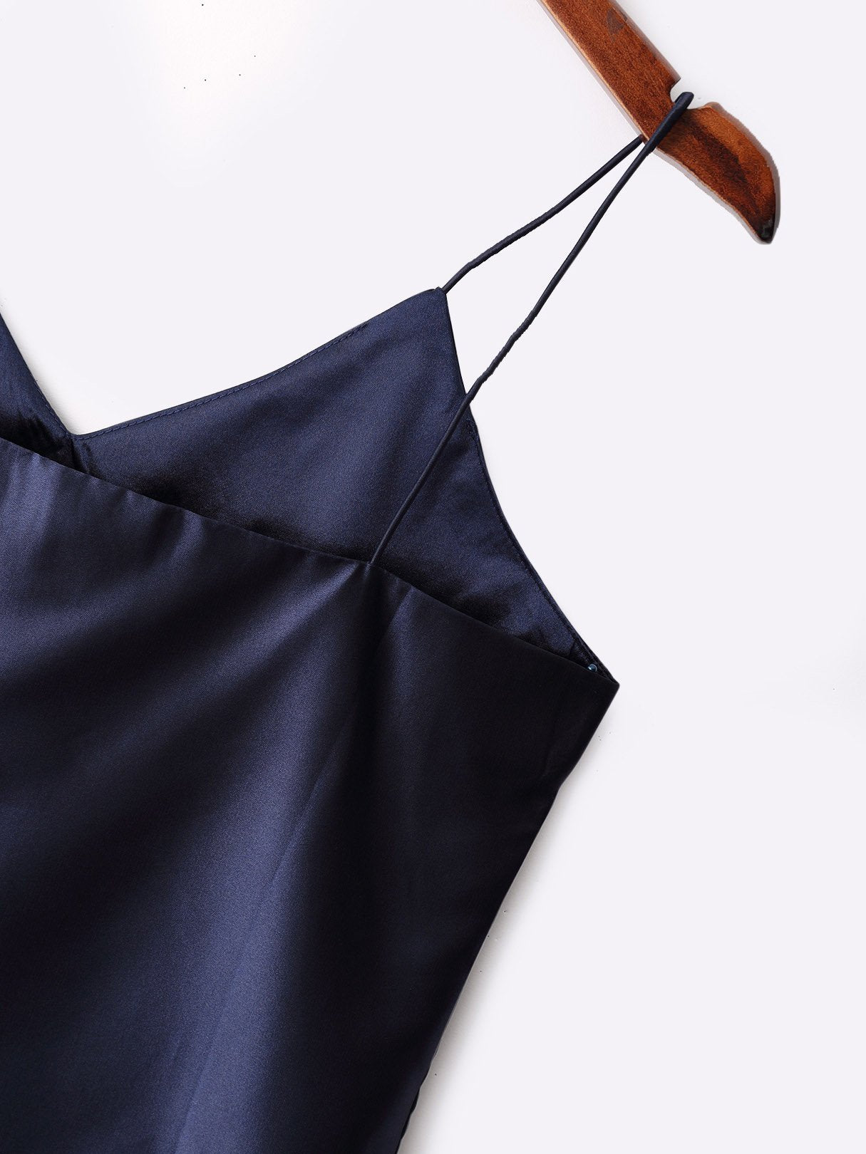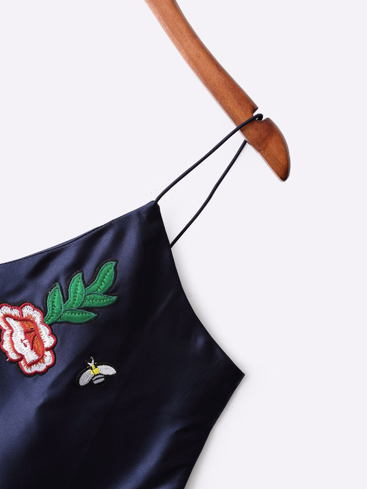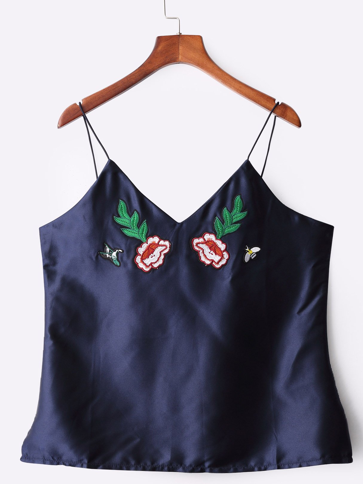 V-Neck Embroidered Backless Sleeveless Navy Camis