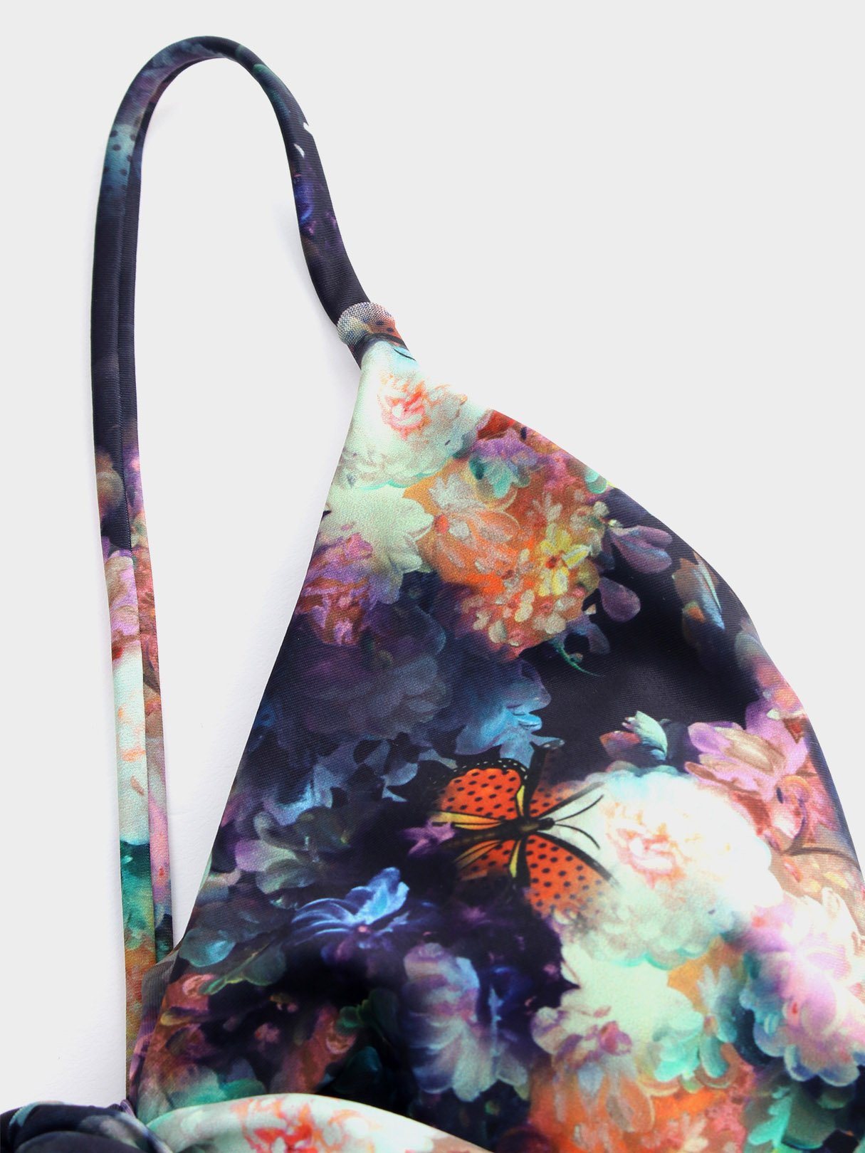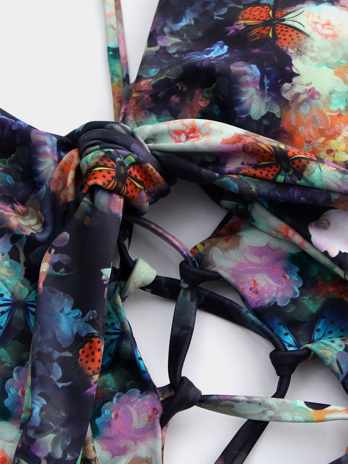 V-Neck Floral Print Cut Out Criss-Cross Tie-Up Bikini