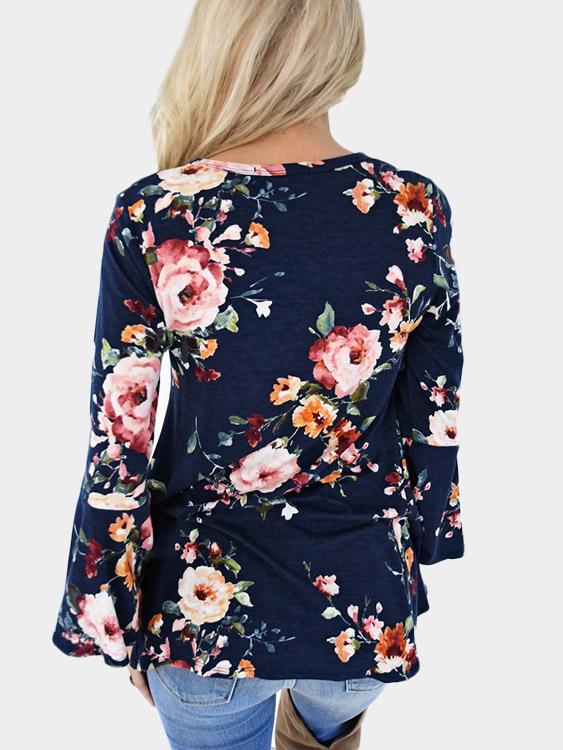 V-Neck Floral Print Long Sleeve Blouses - Navy / S is backordered and will ship as soon as it is back in stock.
