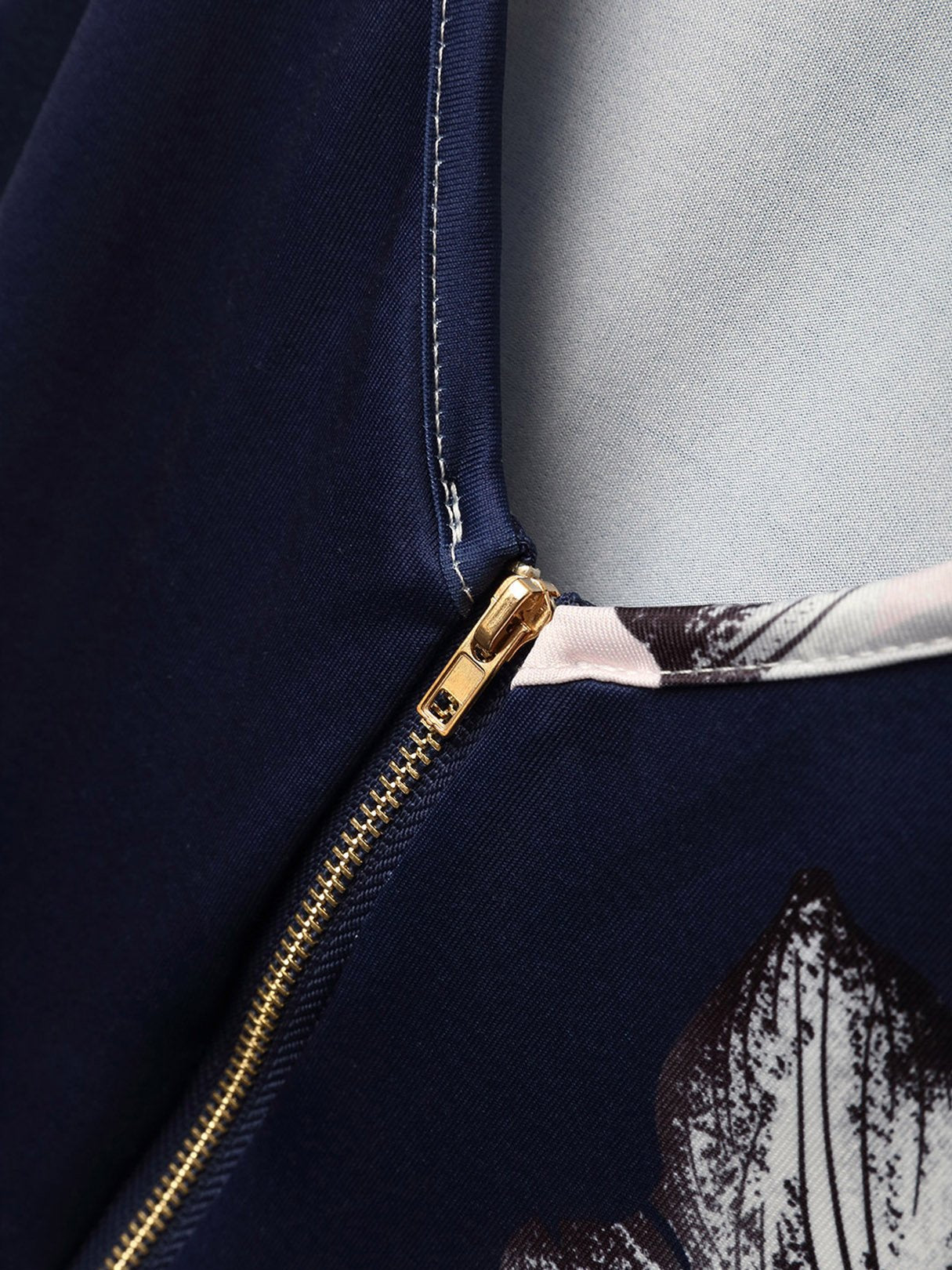 V-Neck Floral Print Zip Back Sleeveless Dark Blue Camis