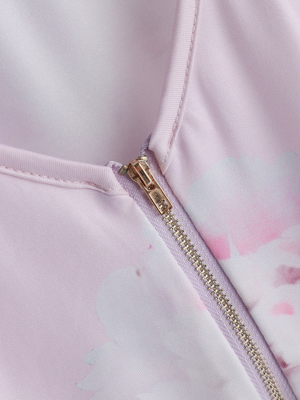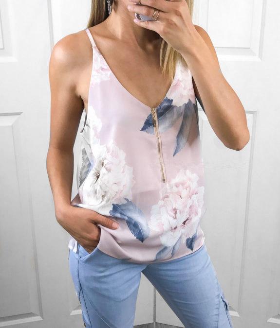V-Neck Floral Print Zip Back Sleeveless Pink Camis