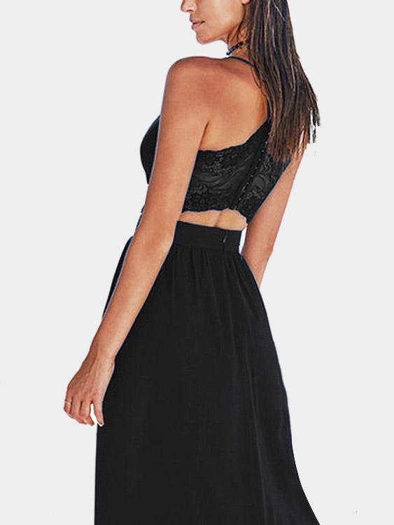 V-Neck Lace-Up Sleeveless Slit Hem Camis