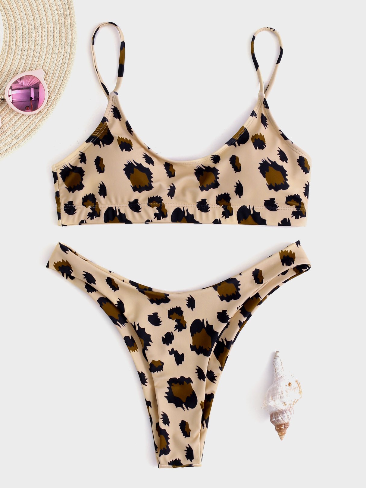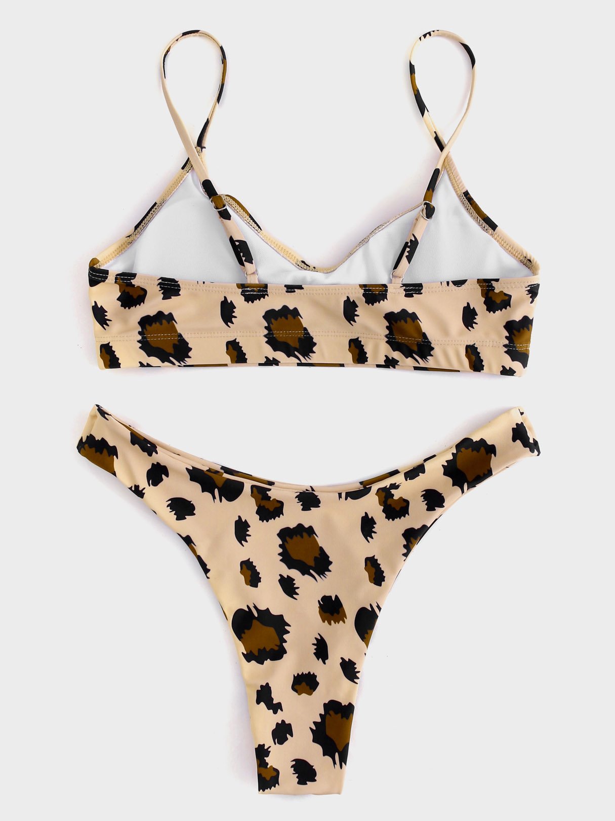 V-Neck Leopard Sleeveless High-Waisted Bikini Set