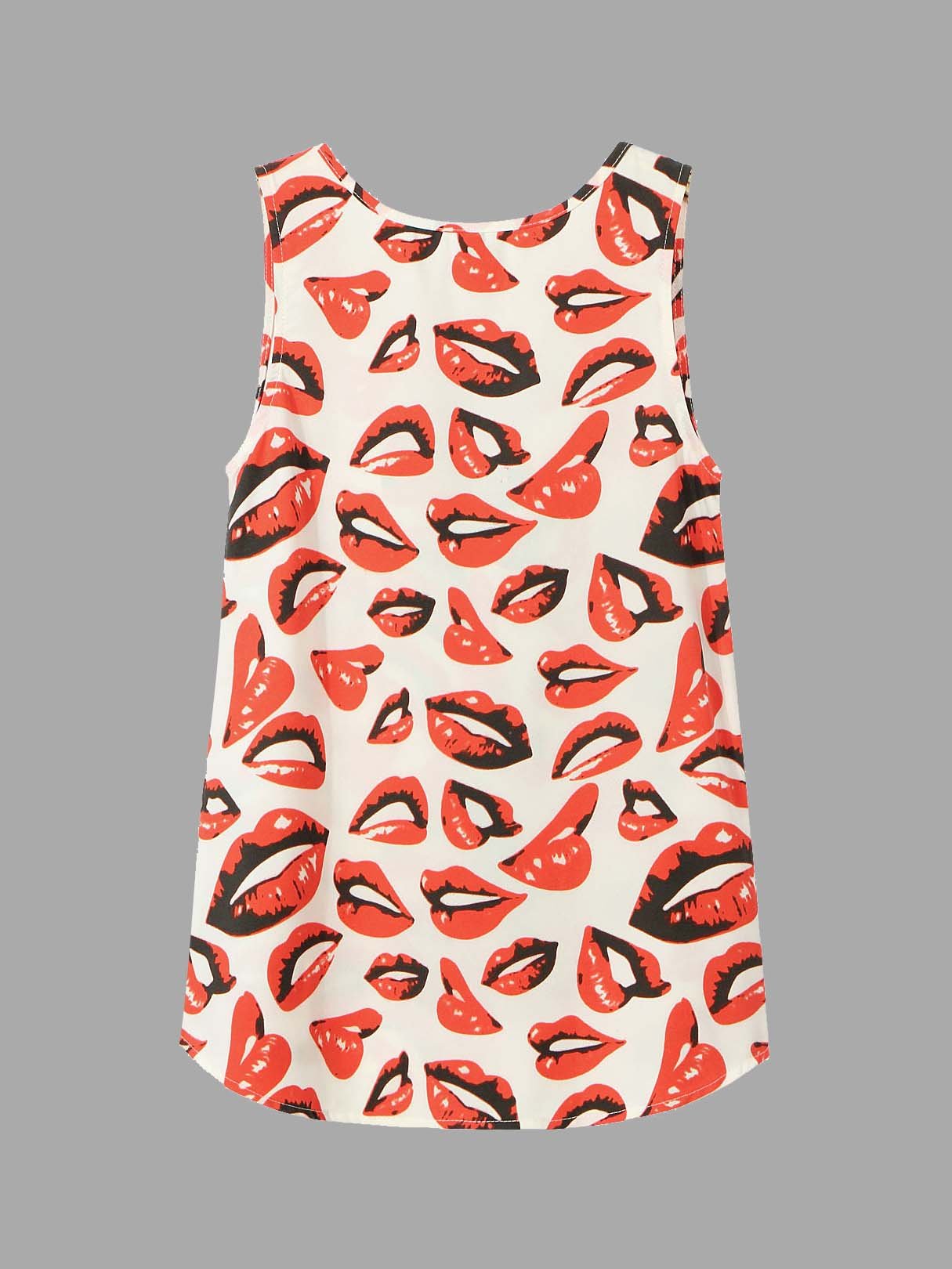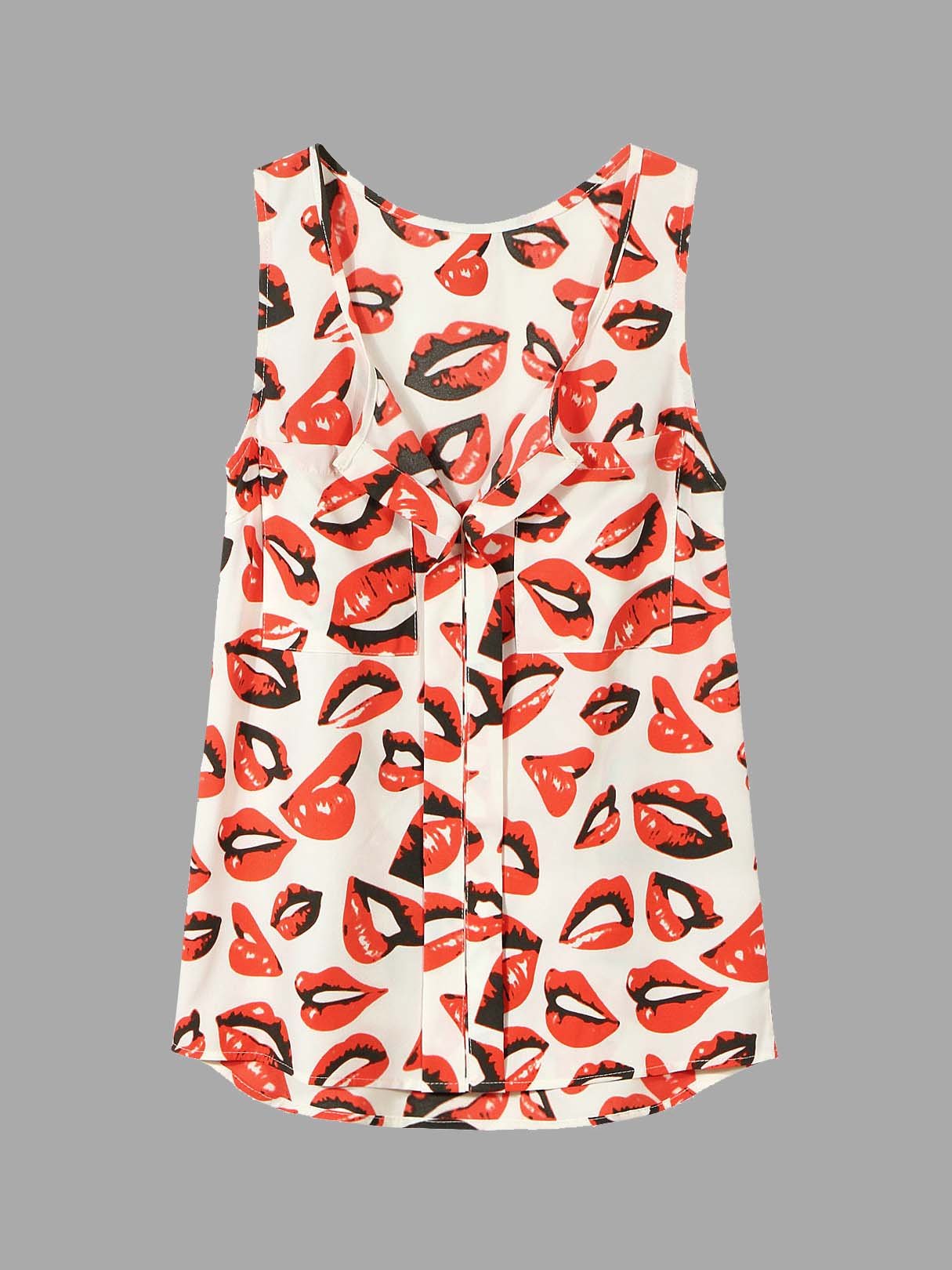 V-Neck Lip Print Cami Top With Utility Pocket