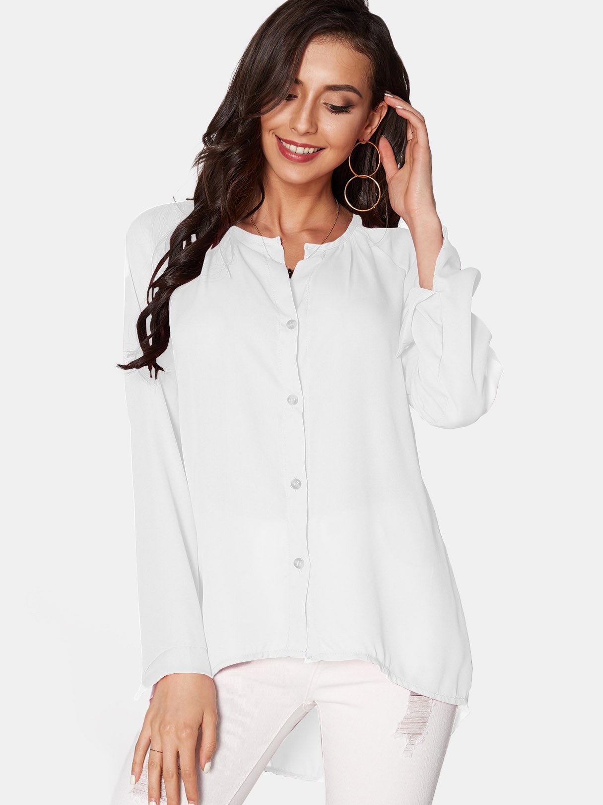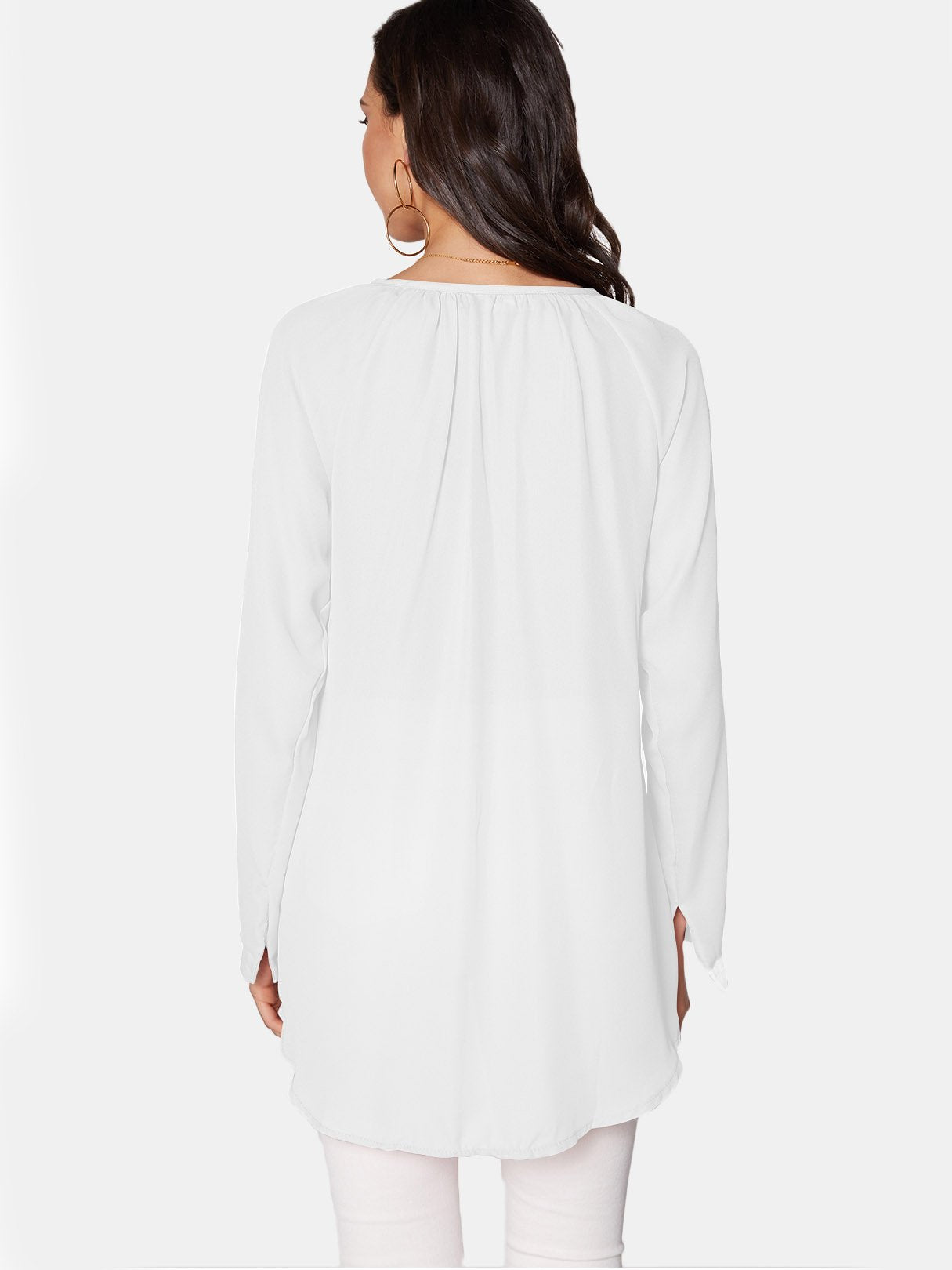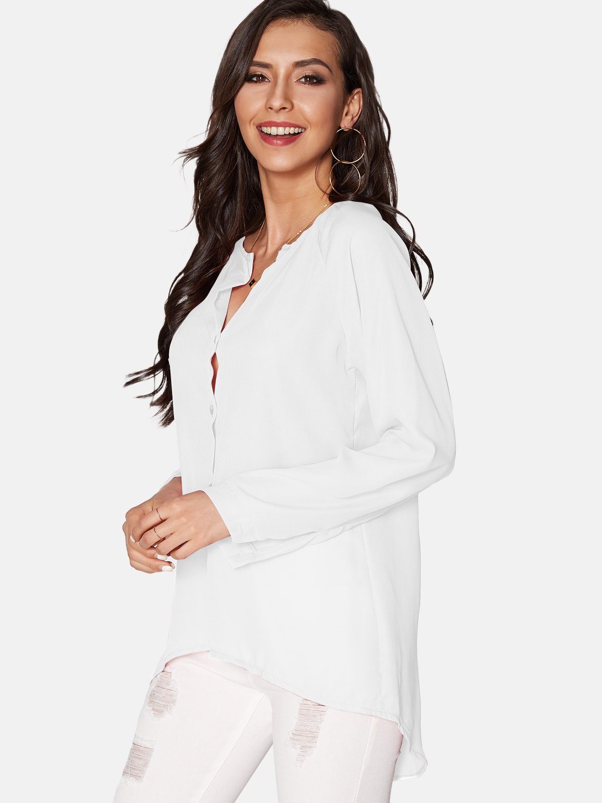 V-Neck Long Sleeve Button-down Chiffon White Blouses