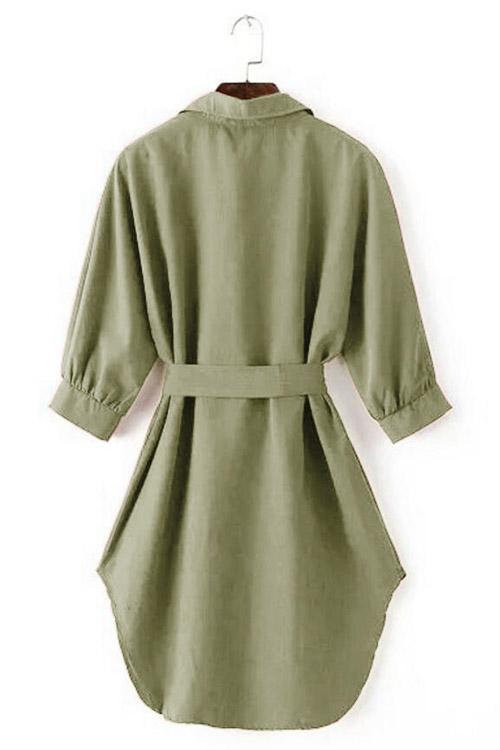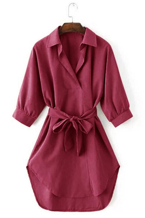 V-Neck Long Sleeve Curved Hem Dresses