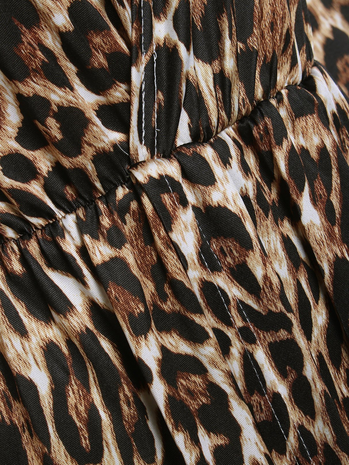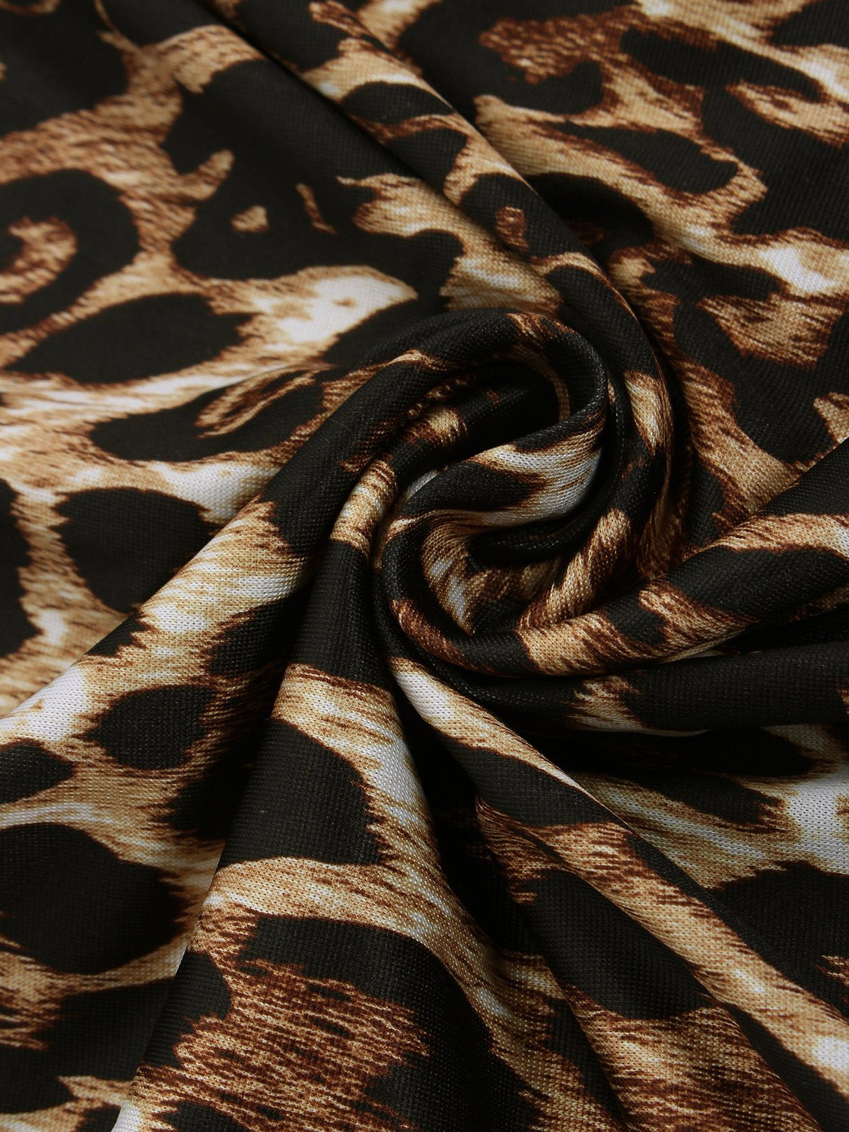 V-Neck Long Sleeve Leopard Crossed Front Slit Hem Dress