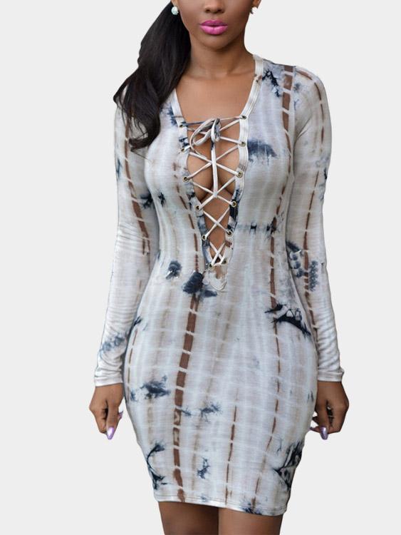 V-Neck Long Sleeve Vintage Crossed Front Dresses