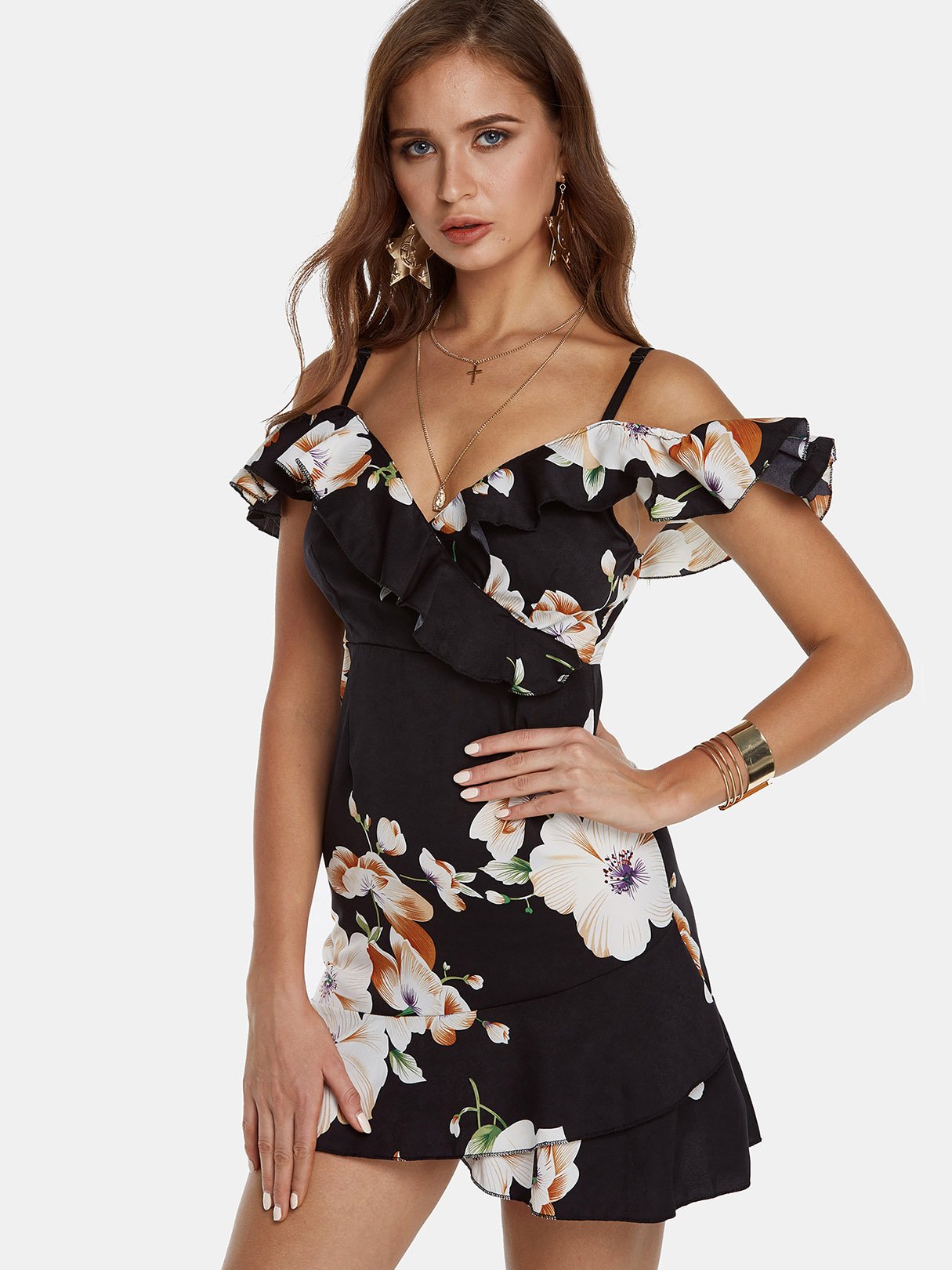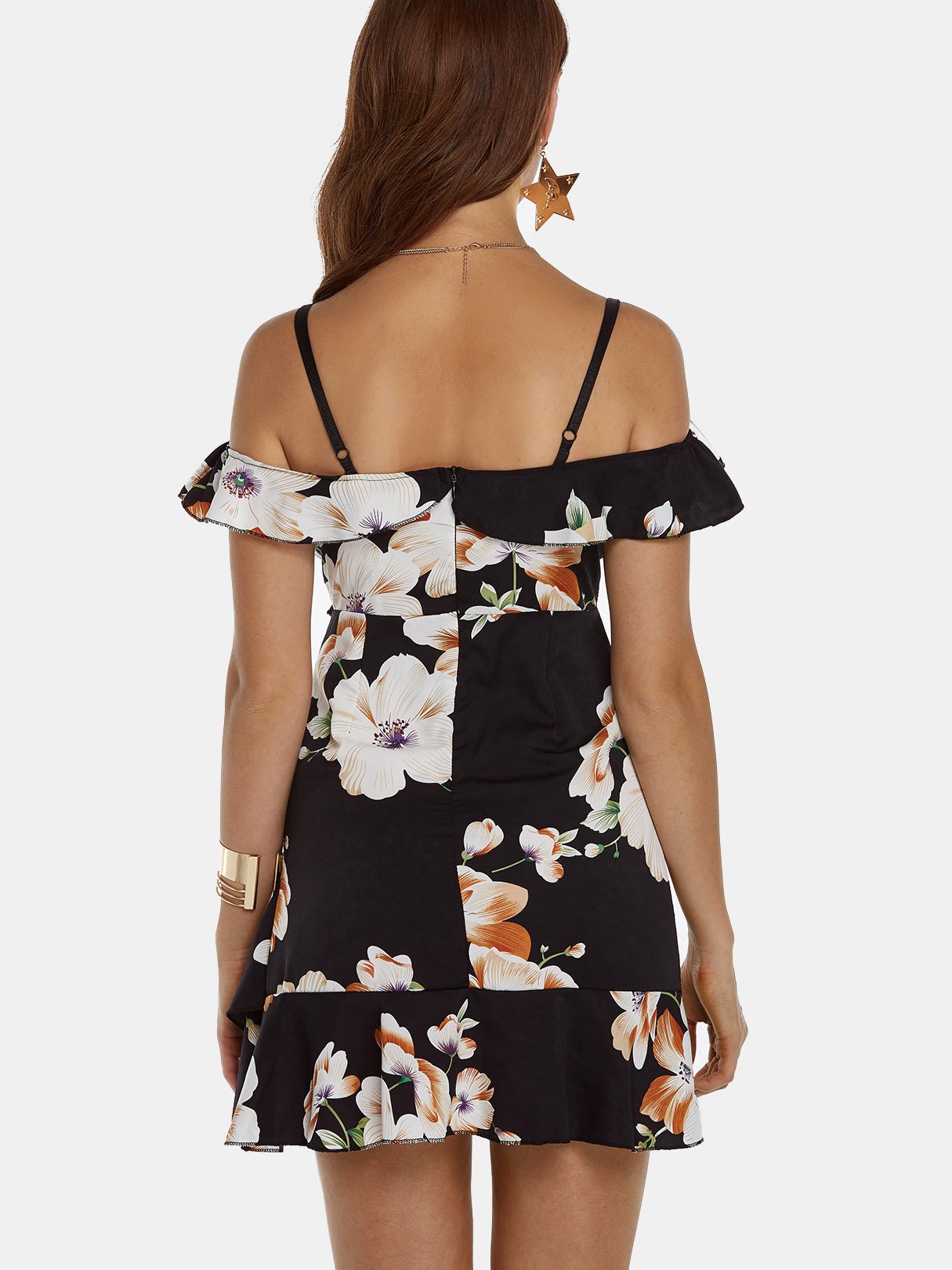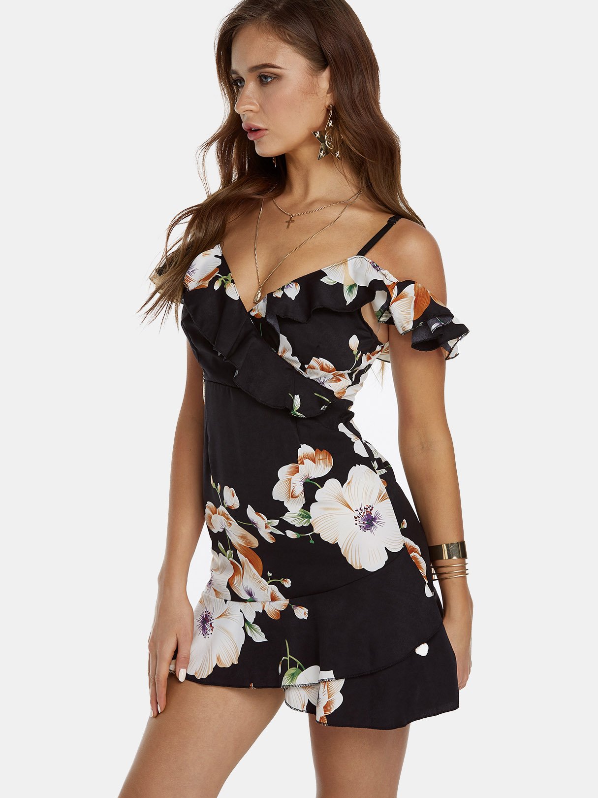 Material:Cotton,PolyesterNeckline:V-Neck,Off The ShoulderSeason:Spring,SummerSleeves:Short SleevesPattern:Floral PrintStyle:Vacation StyleDetail:Adjustable Shoulder Straps,Backless Design,Spaghetti Strap,Wrap DesignHem Design:Flounced HemLength:MiniFit:Regular Fit
