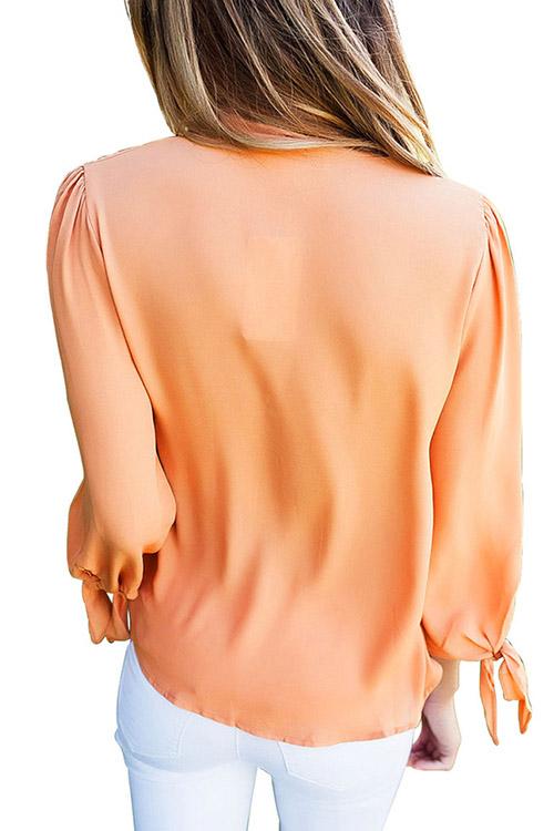 V-Neck Plain 3/4 Sleeve Irregular Hem Orange Blouses