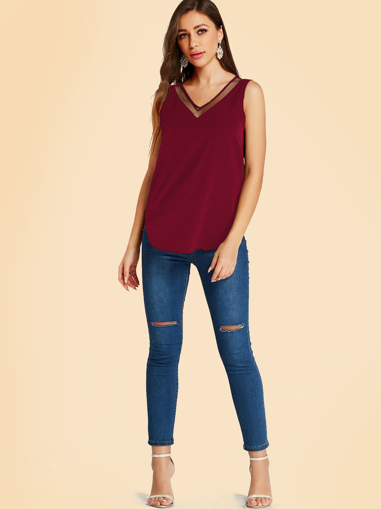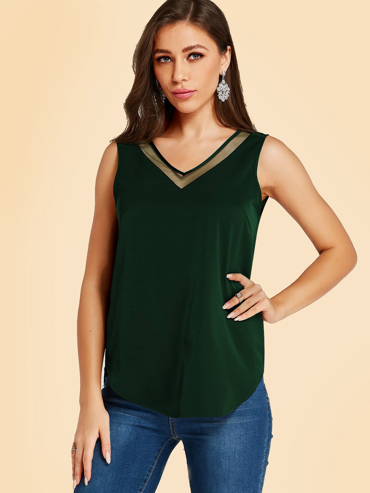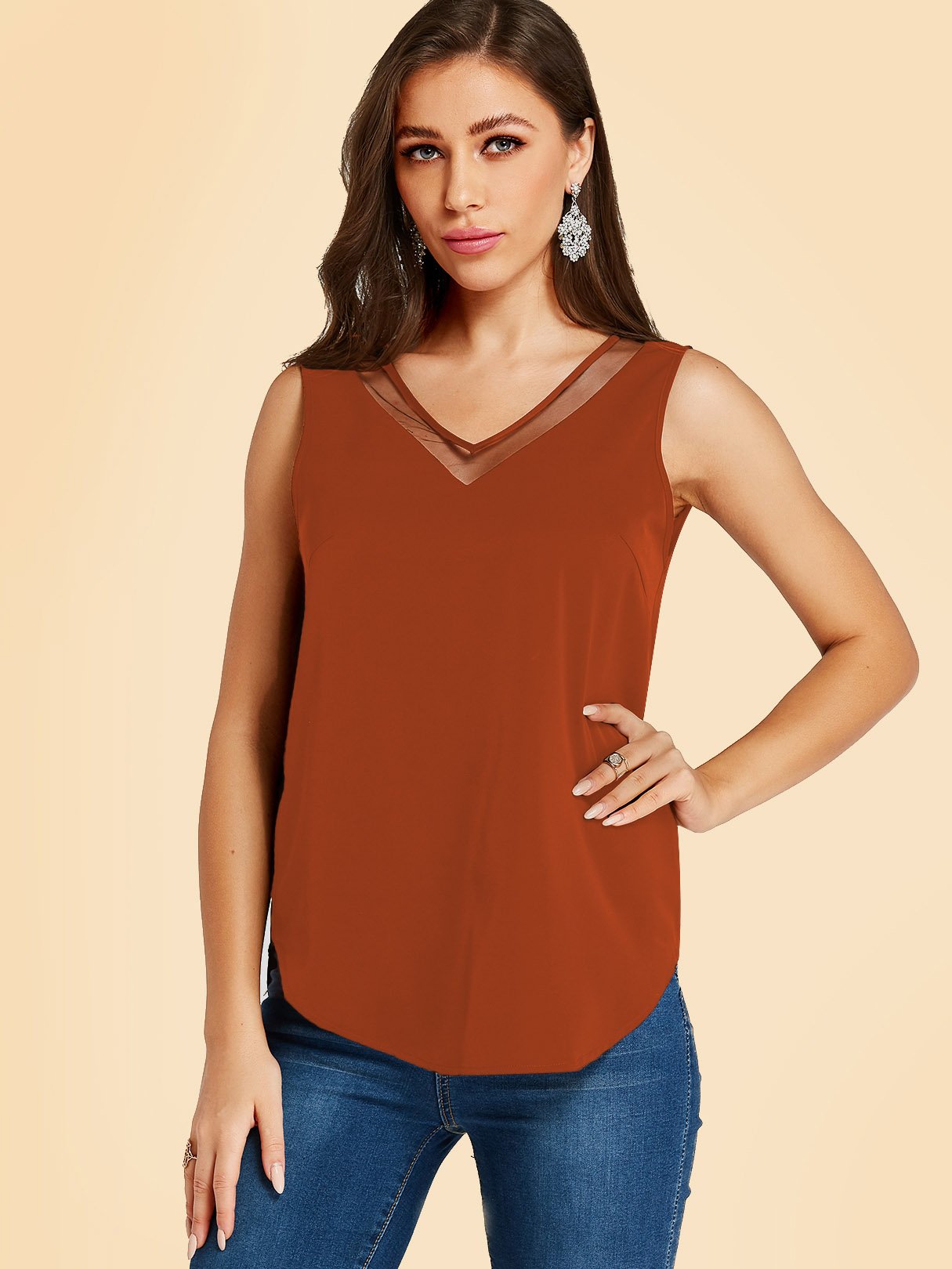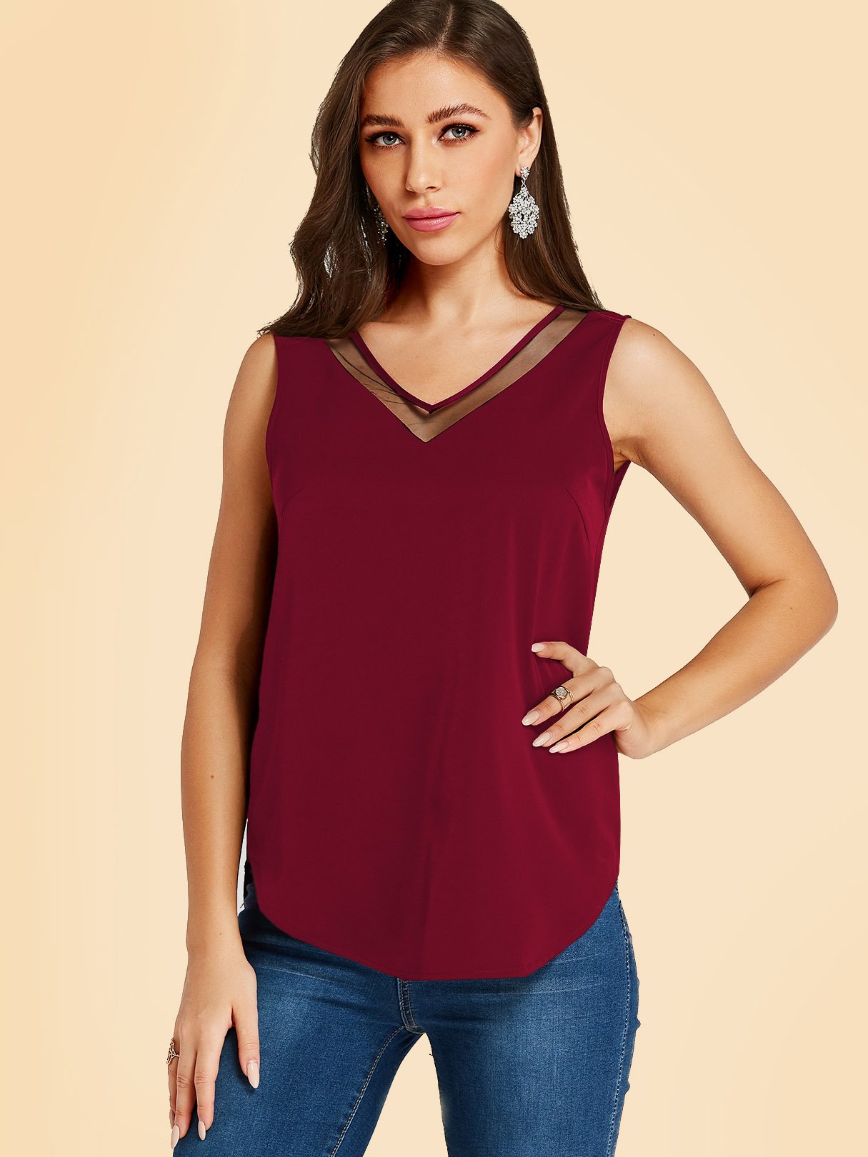 V-Neck Plain Backless Hollow Sleeveless Tank Top