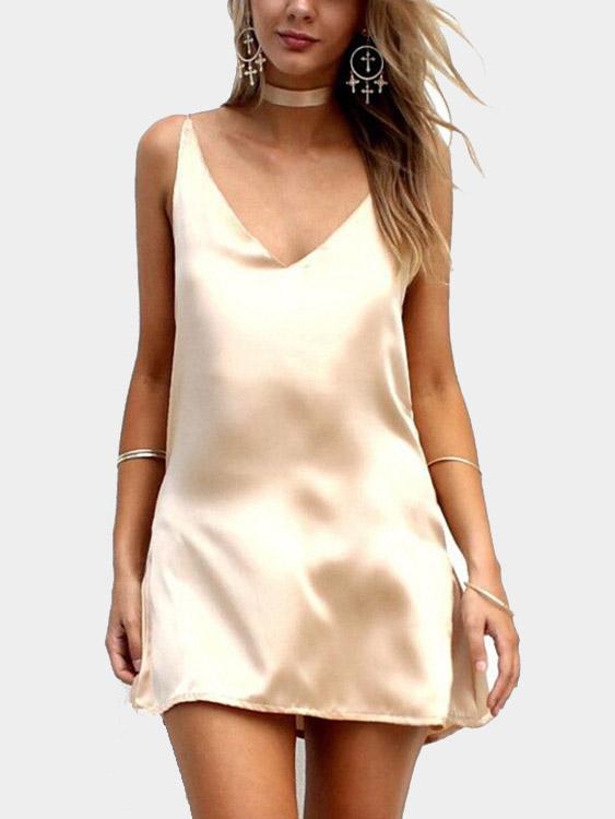 V-Neck Plain Backless Spaghetti Strap Sleeveless Mini Dress