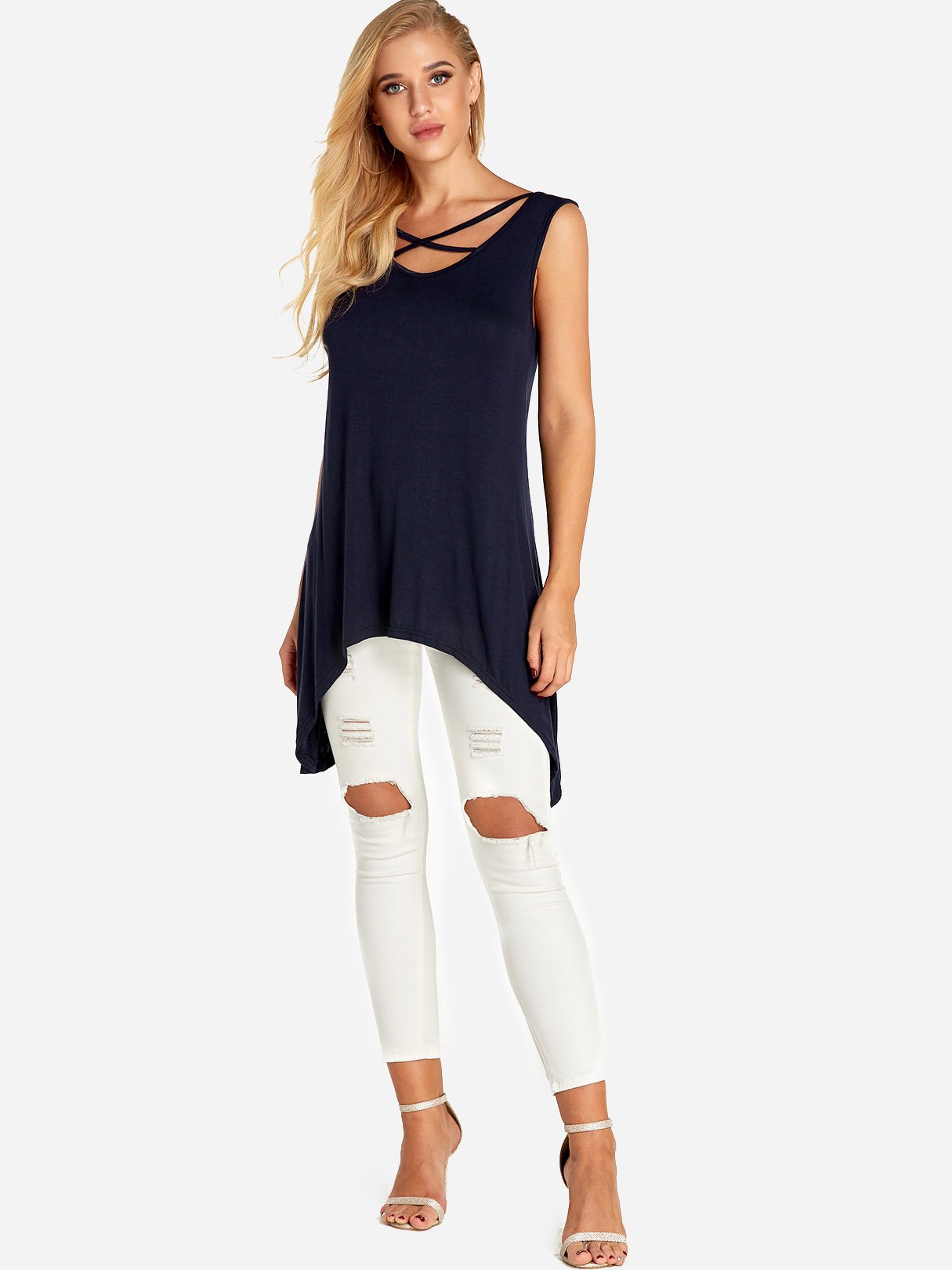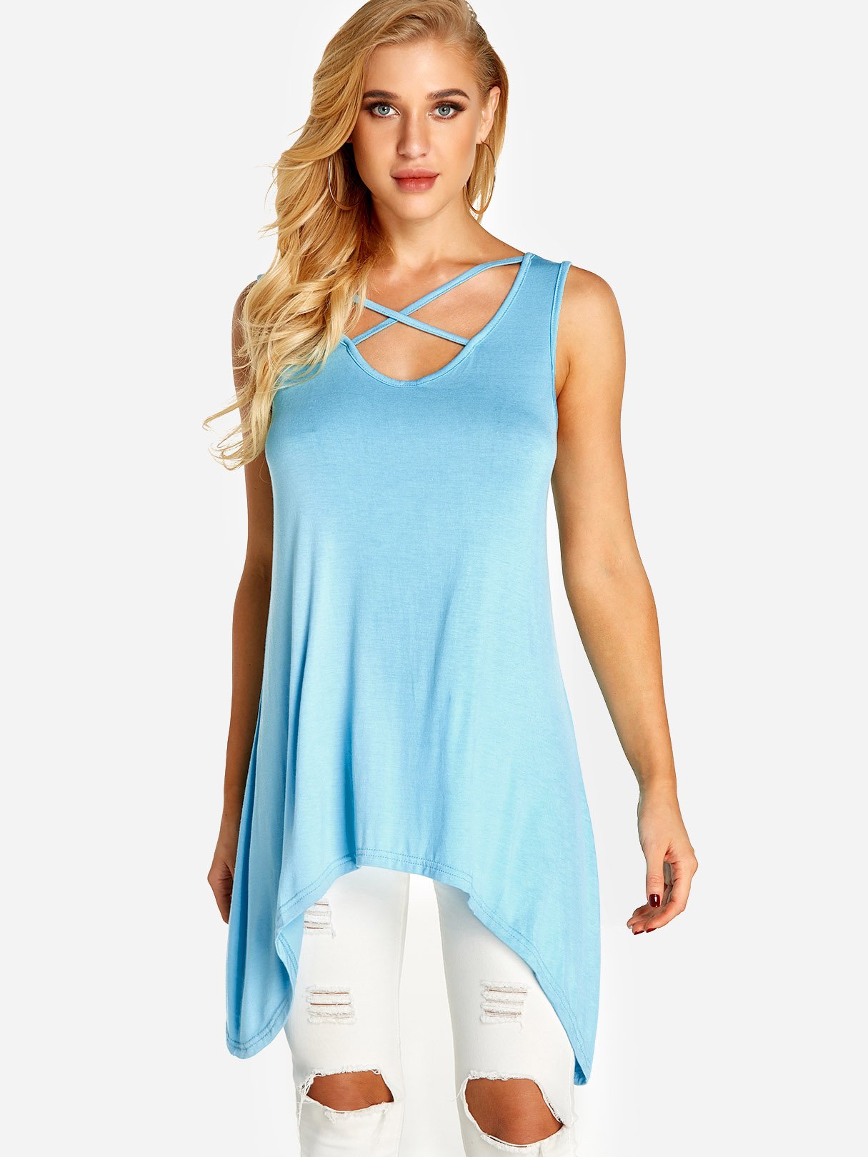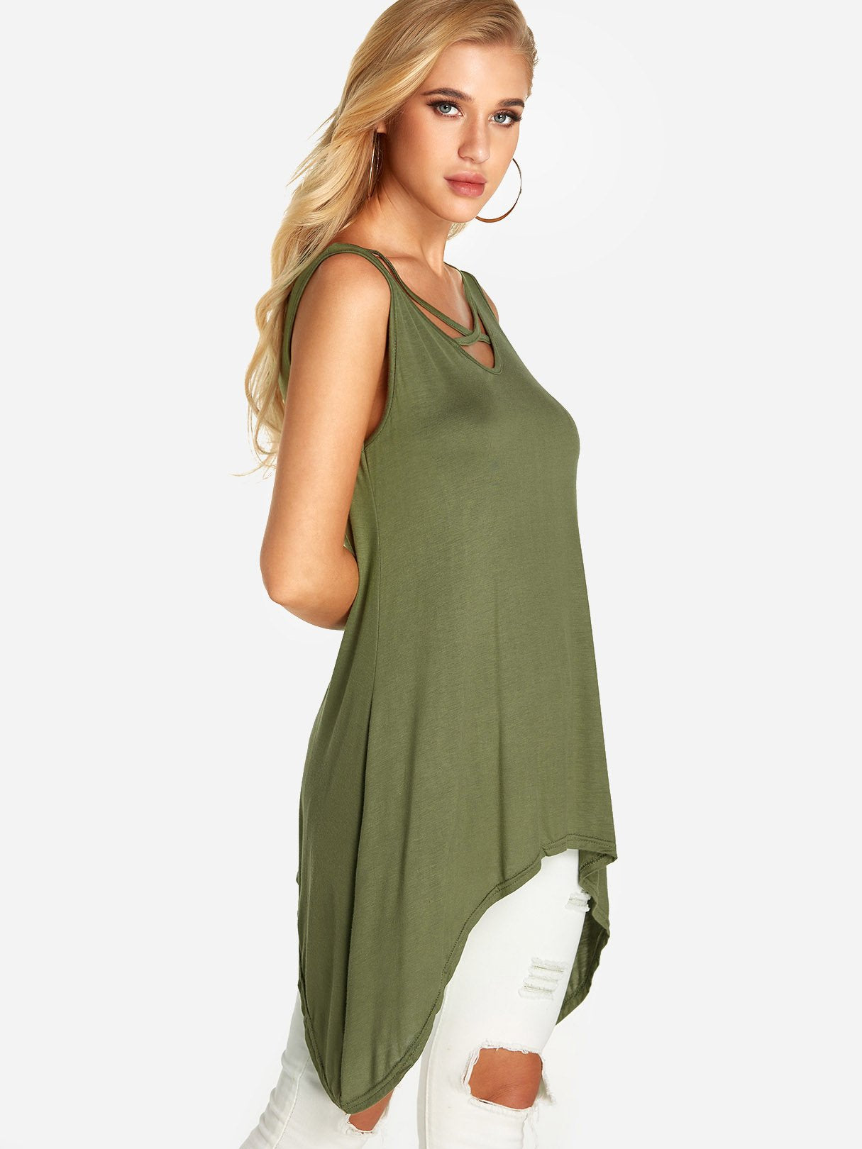 V-Neck Plain Lace-Up Sleeveless Irregular Hem Camis