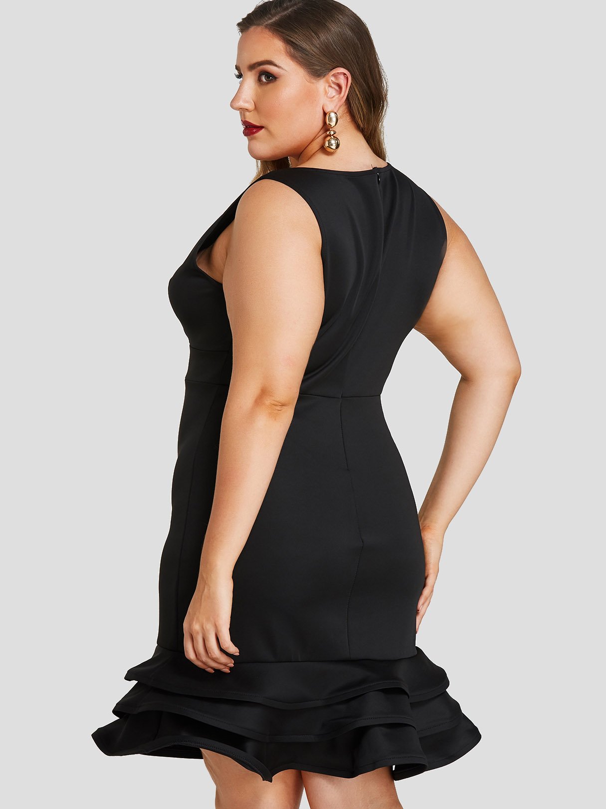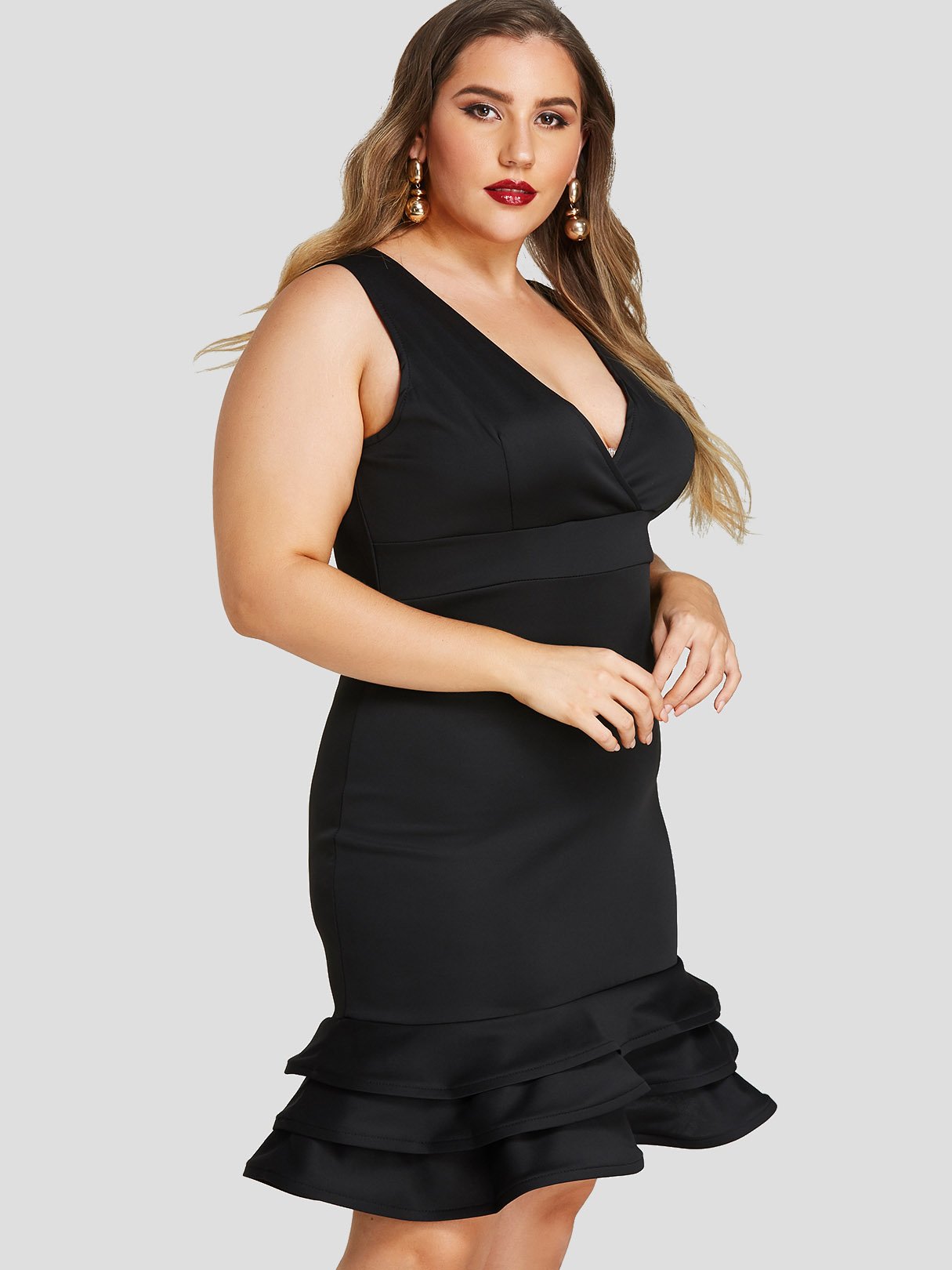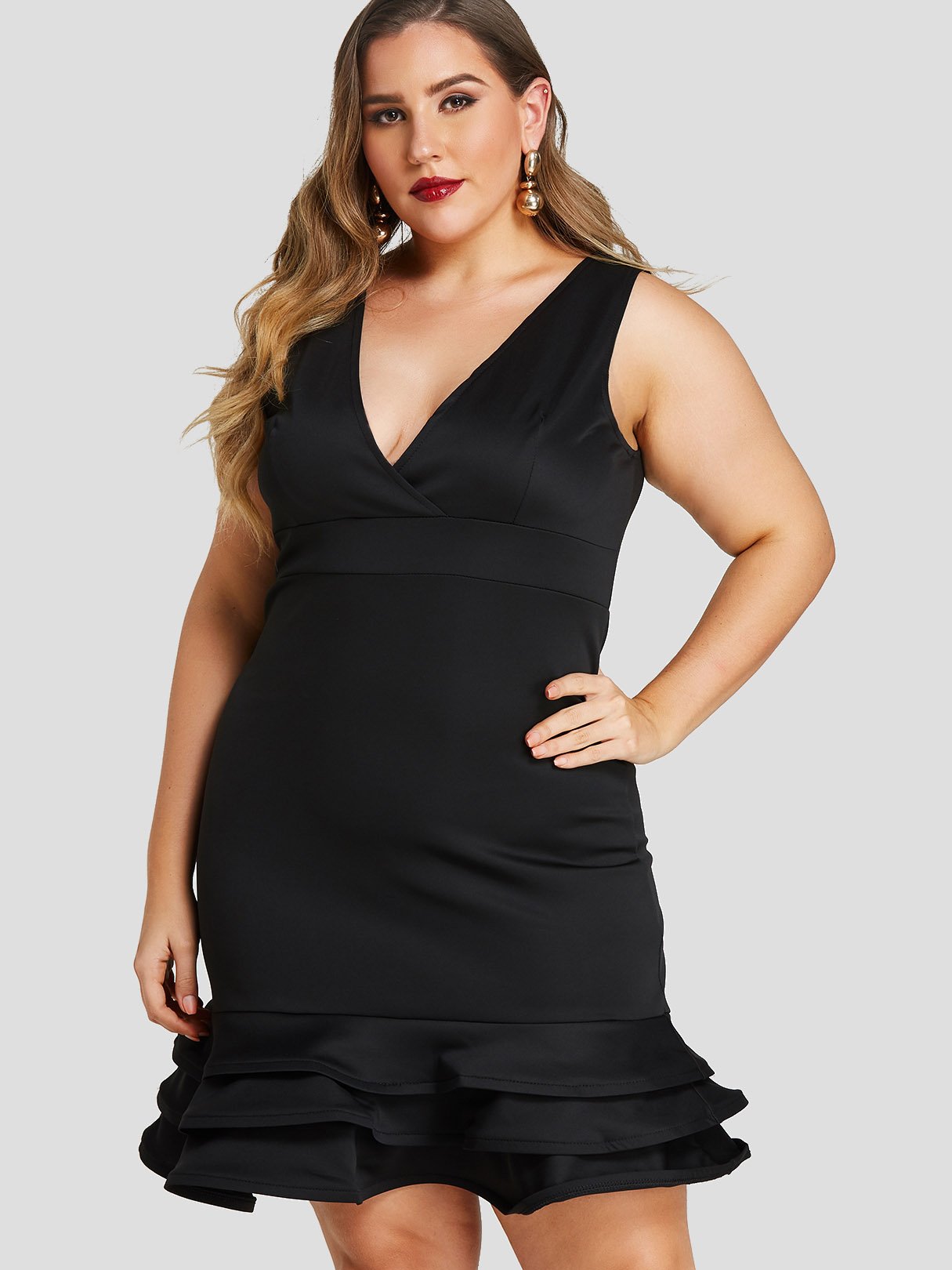 V-Neck Ruffle Trim Sleeveless Black Plus Size Dress - Black / XL is backordered and will ship as soon as it is back in stock.
