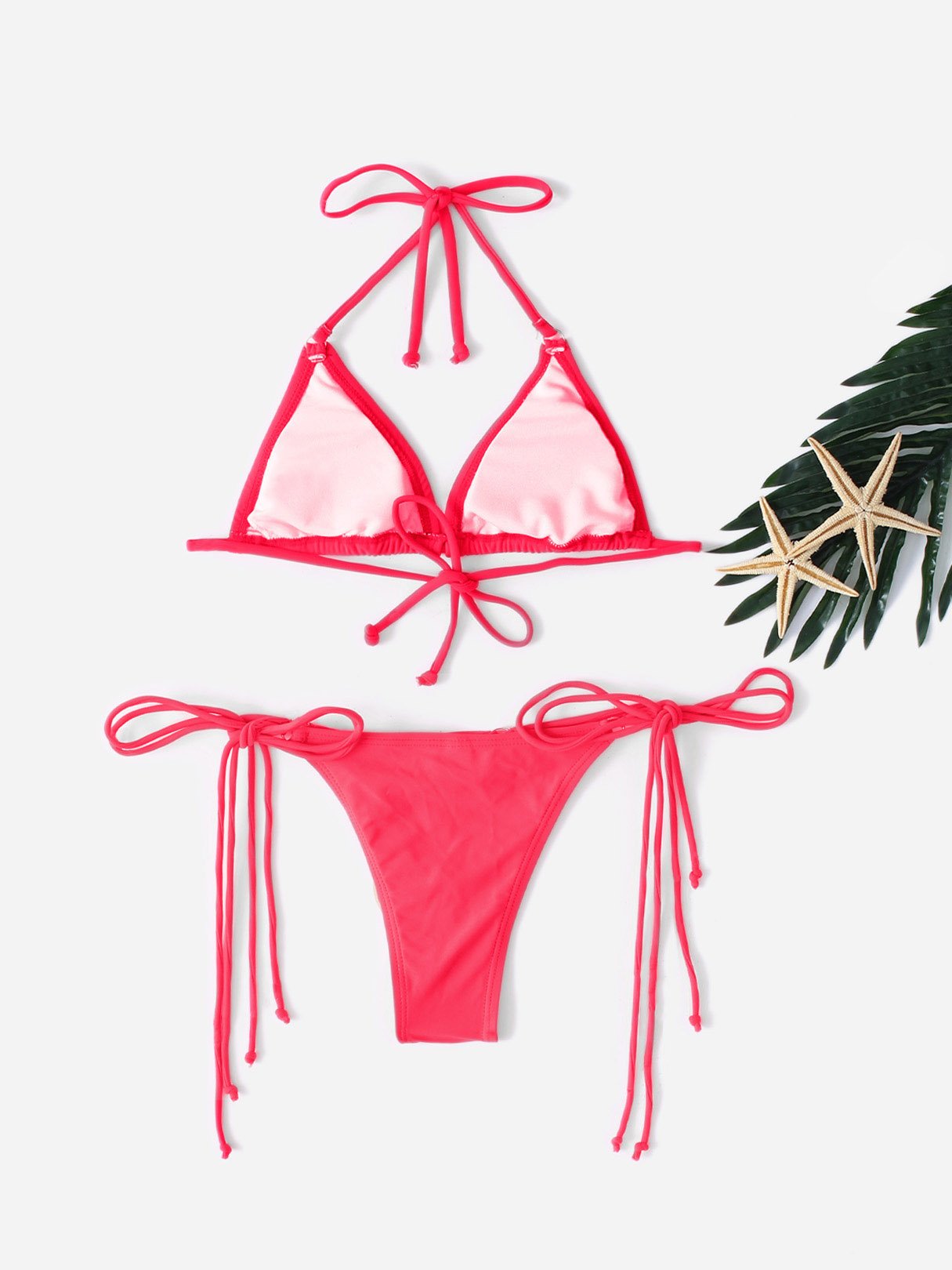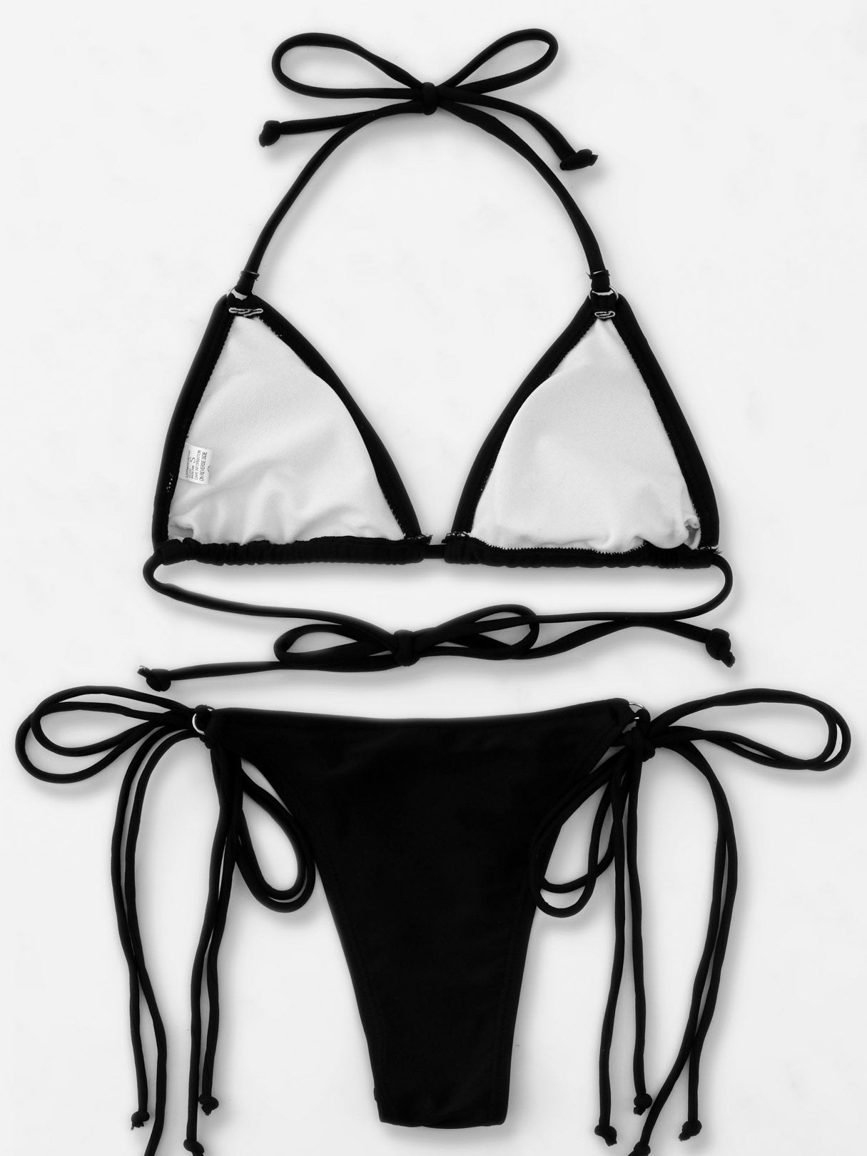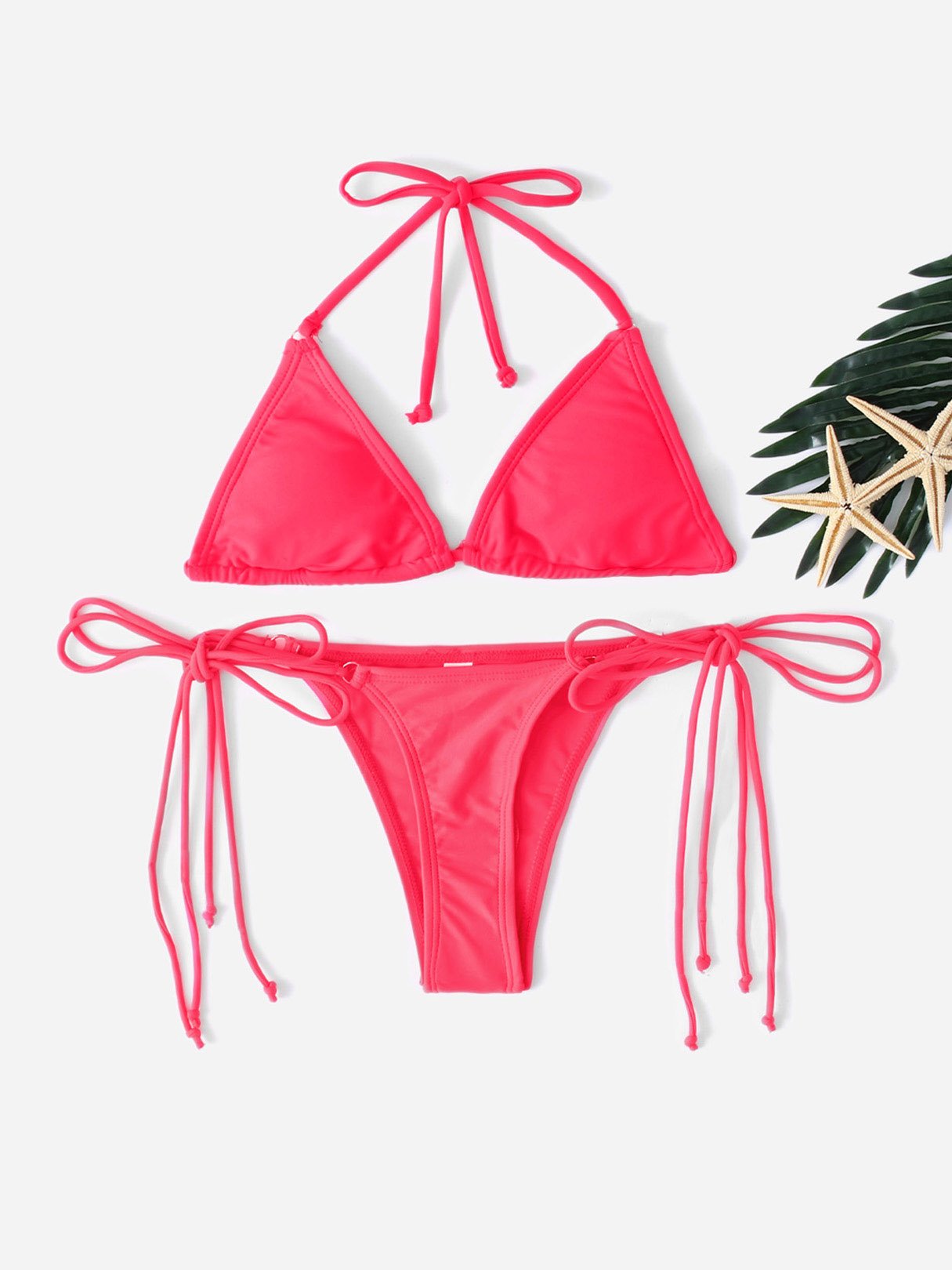 V-Neck Self-Tie Tie-Up Bikini Set Swimwear