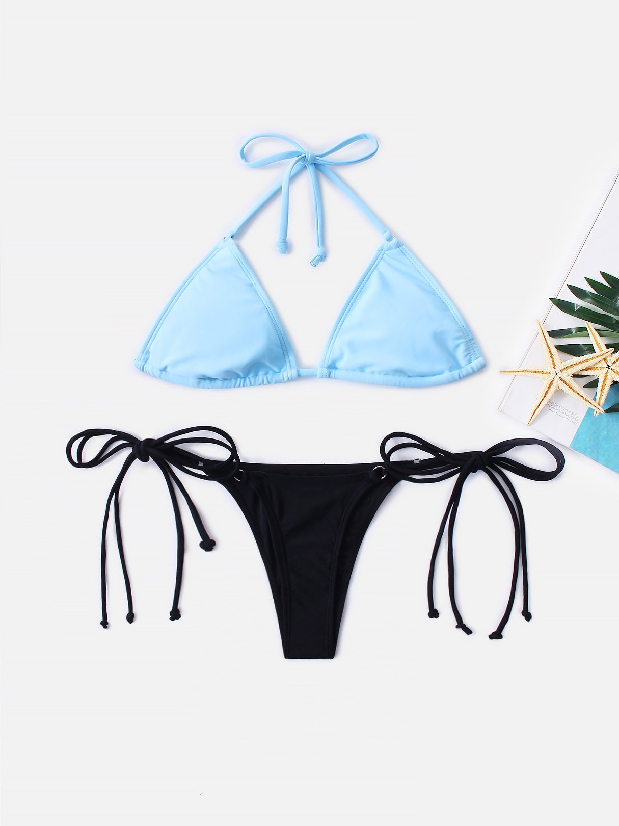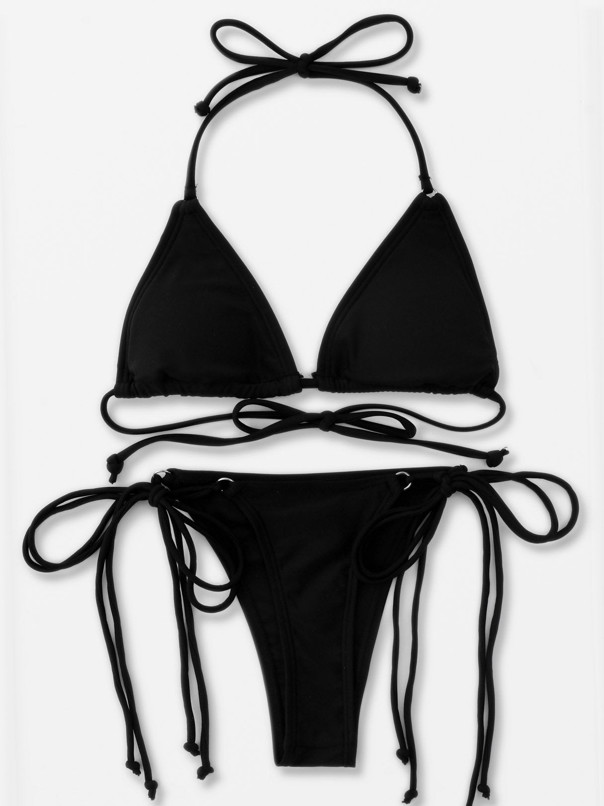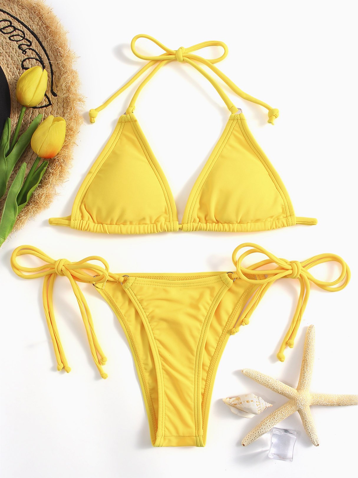 V-Neck Self-Tie Tie-Up Bikini Set Swimwear