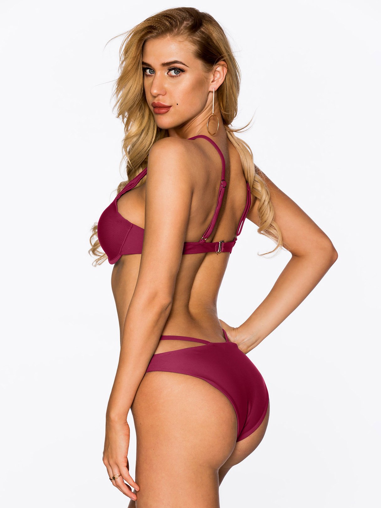 V-Neck Sleeveless Crossed Front Bodycon Two Piece Bikinis