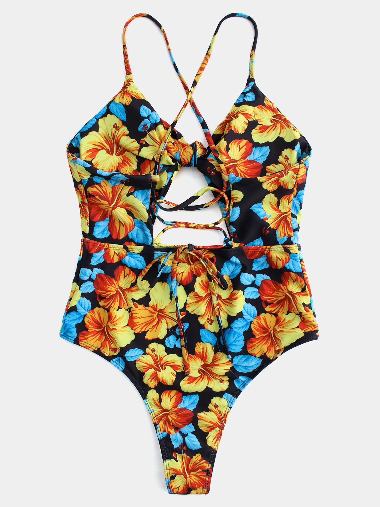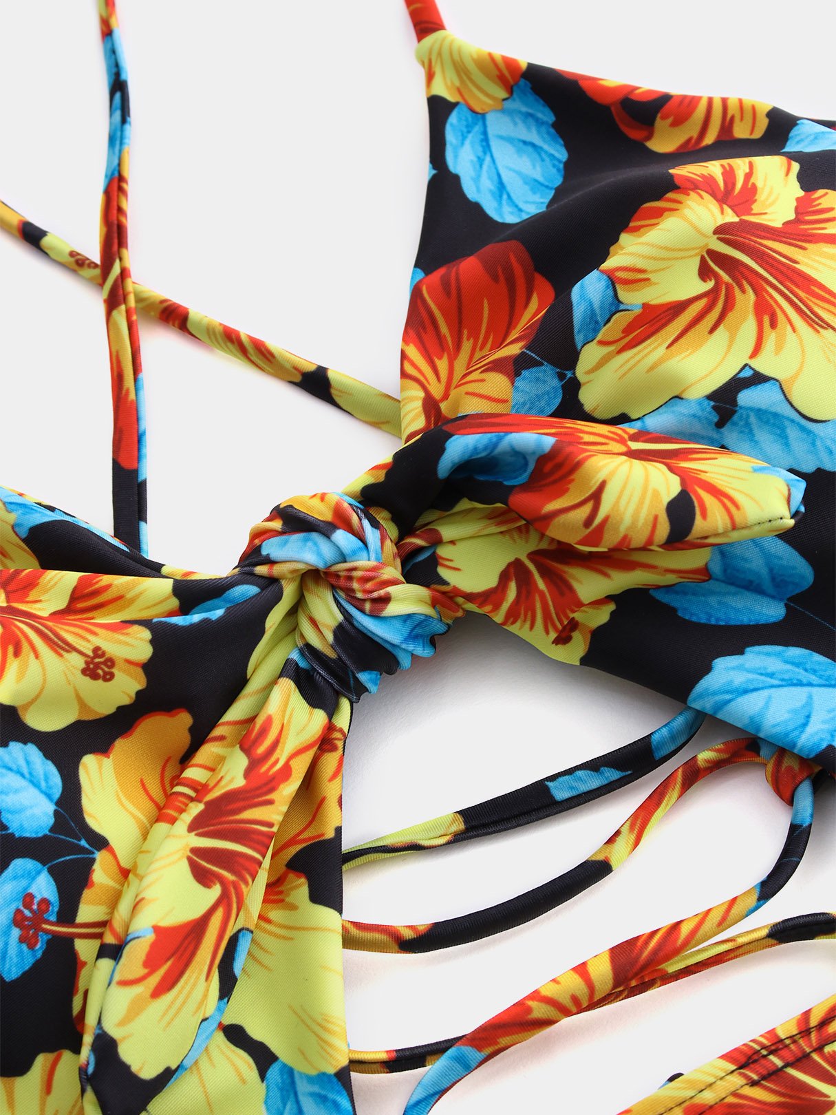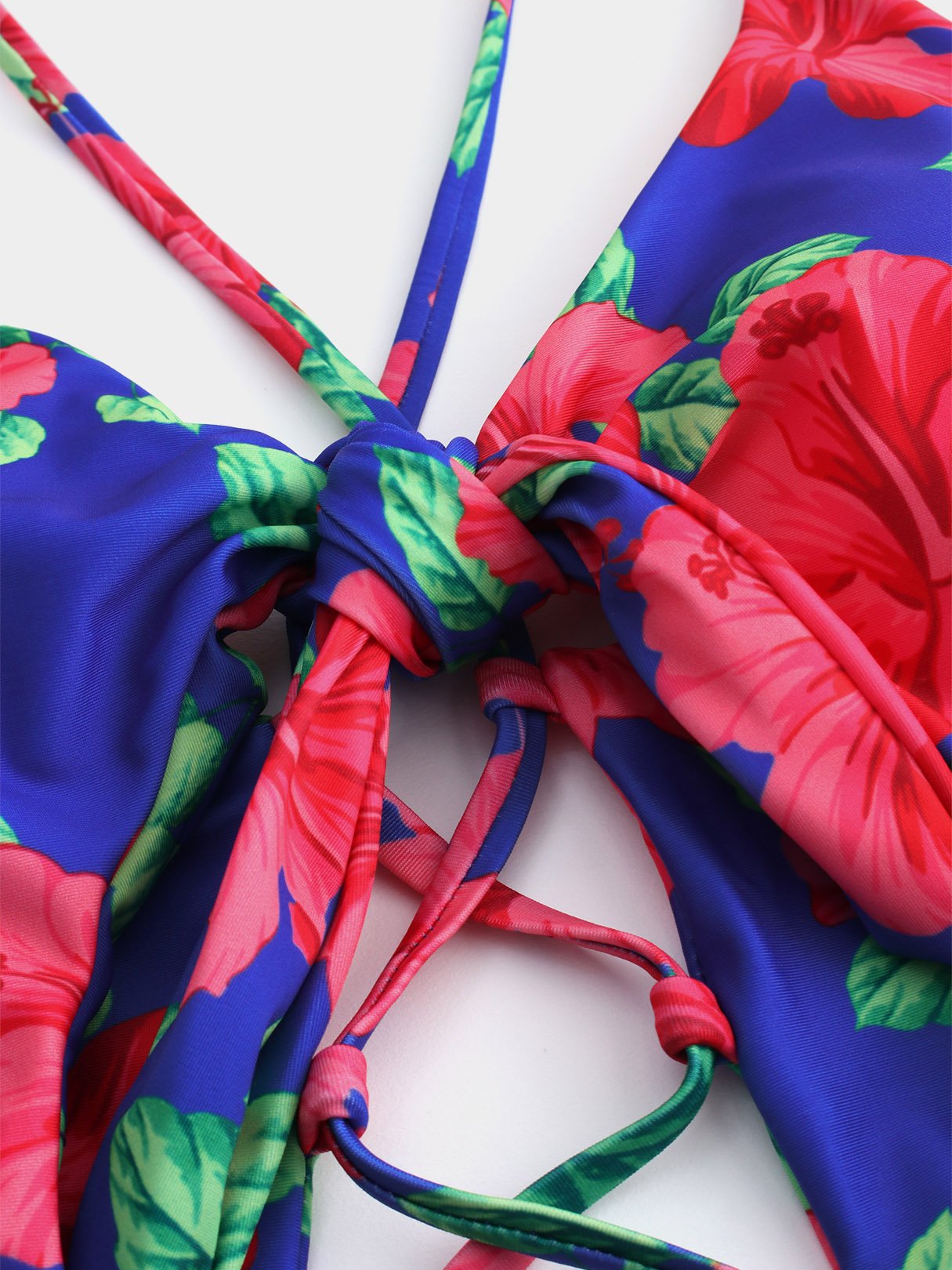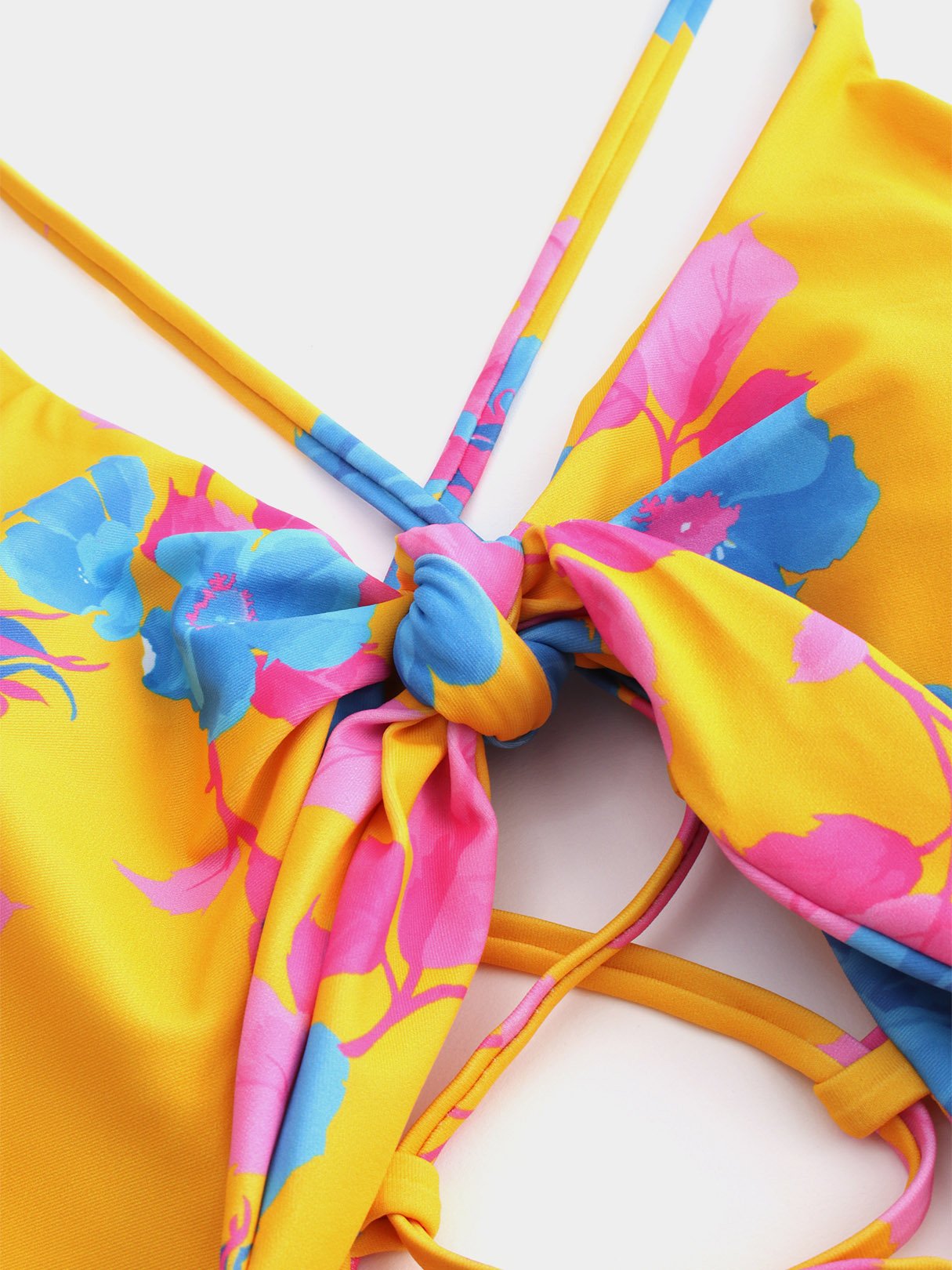 V-Neck Sleeveless Cut Out Criss-Cross Tie-Up Bikinis