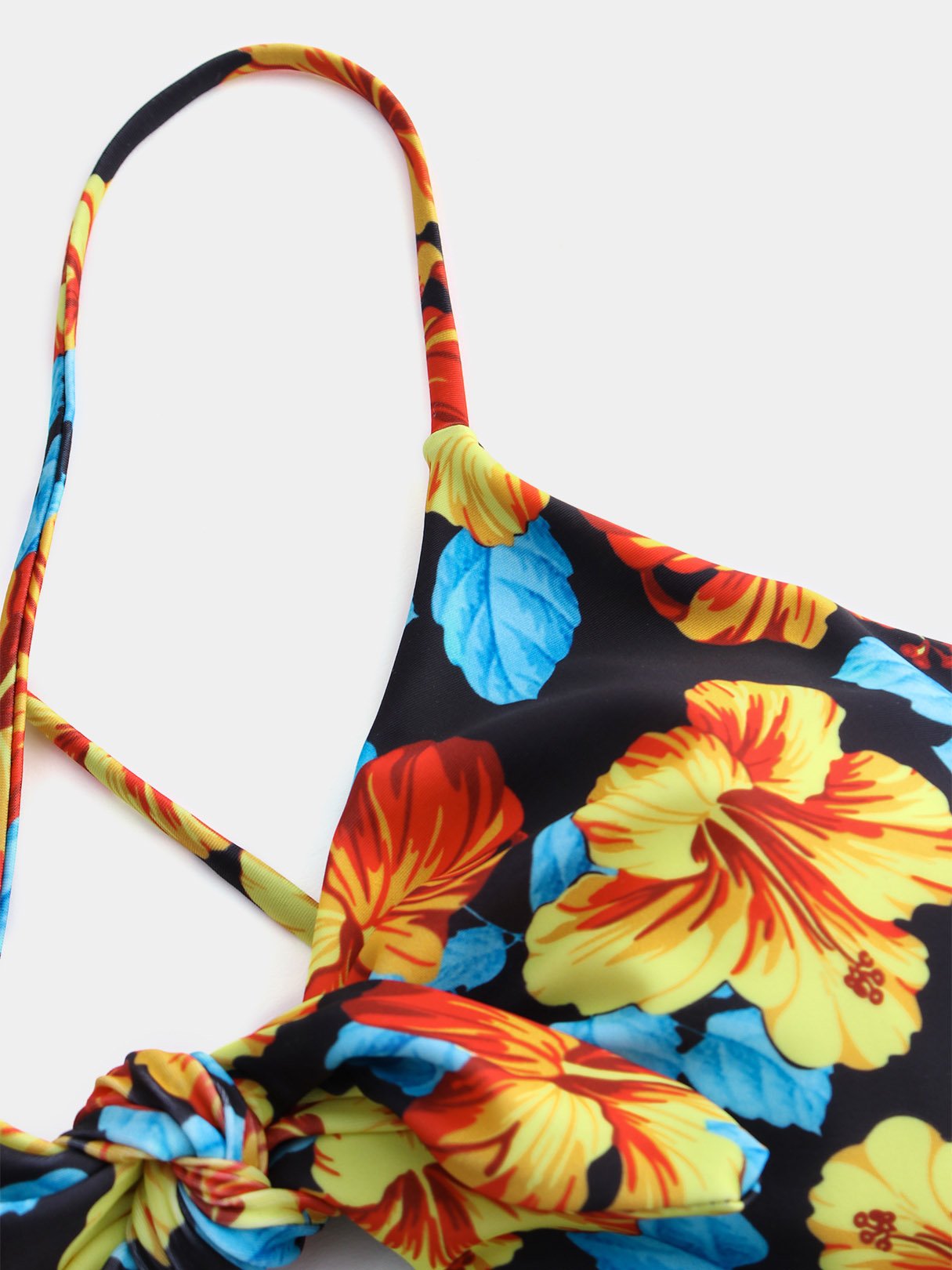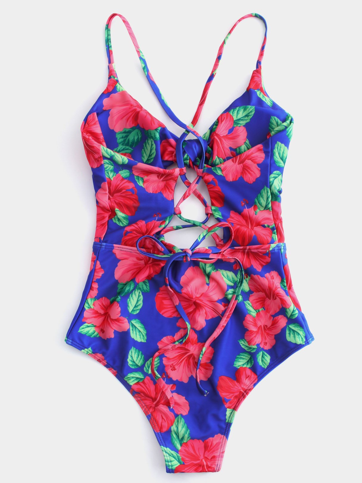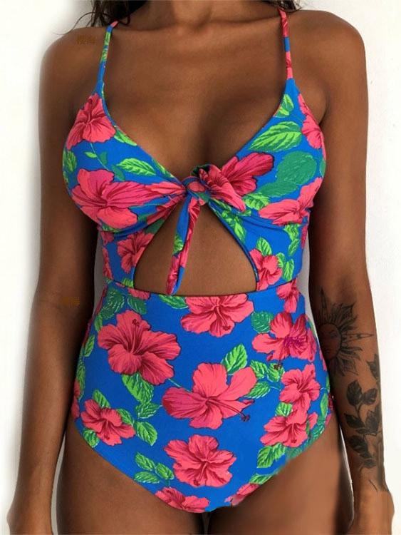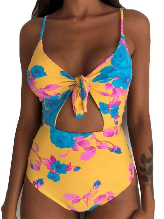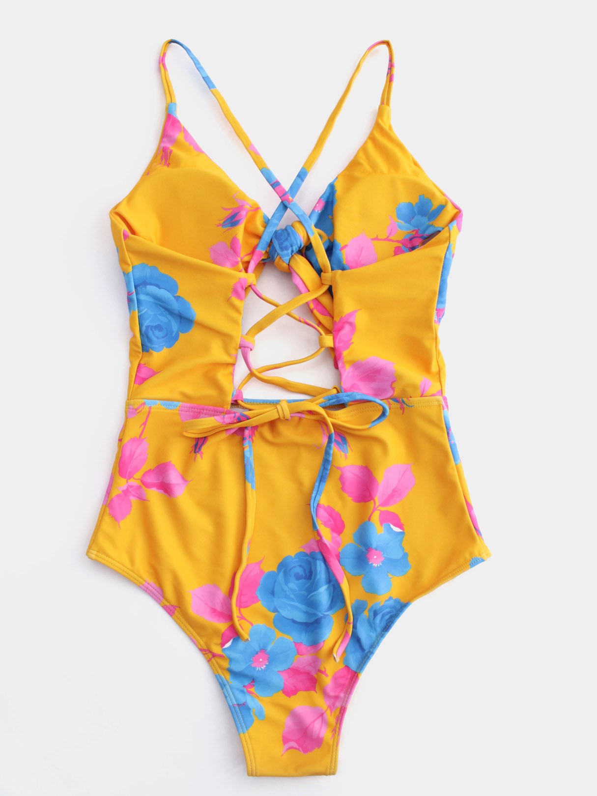 V-Neck Sleeveless Cut Out Criss-Cross Tie-Up Bikinis