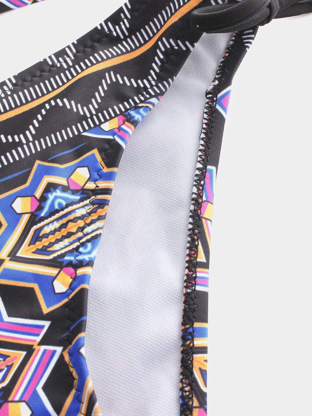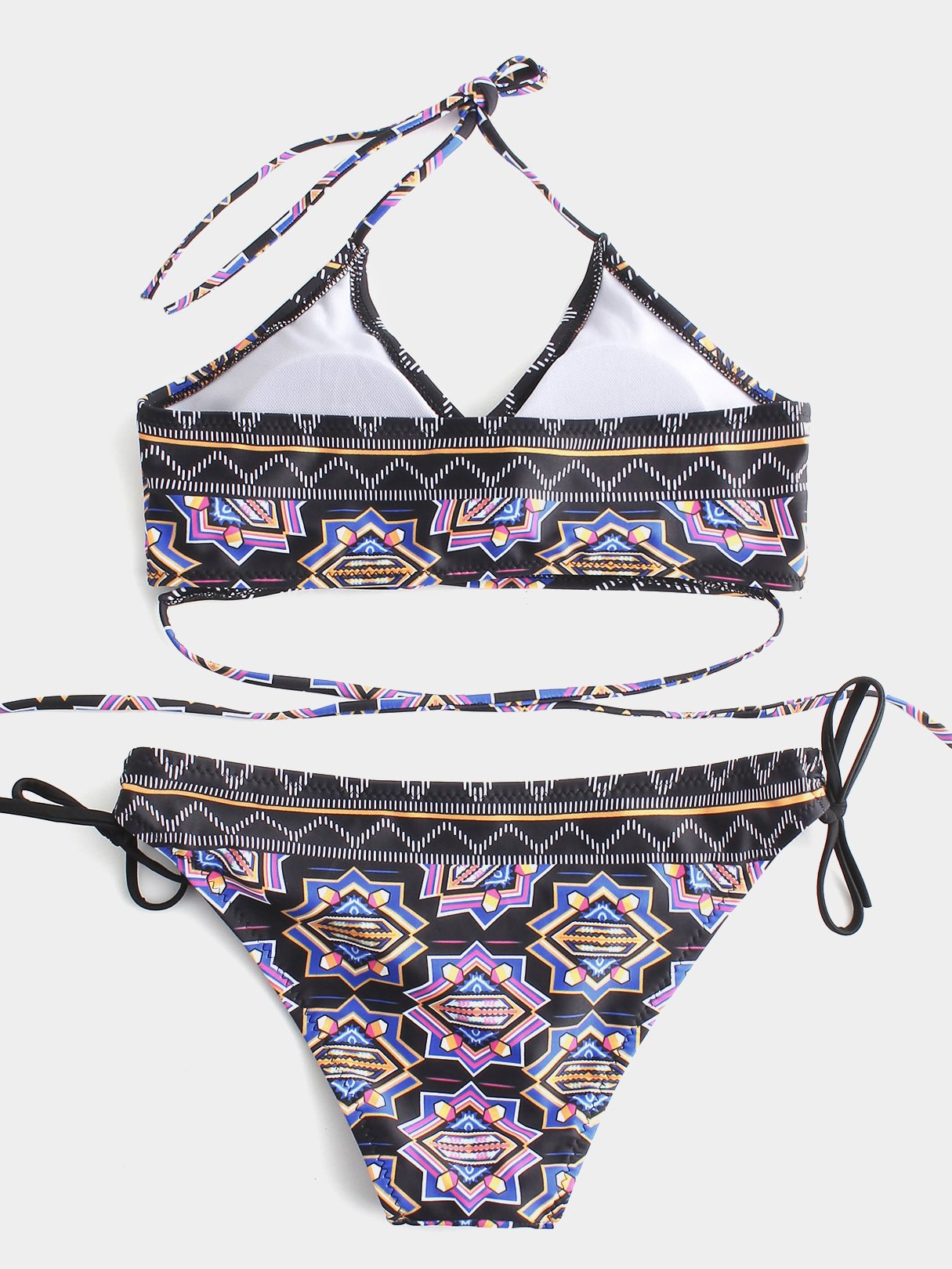 V-Neck Sleeveless Floral Print Backless Cross Over Bikini Suit