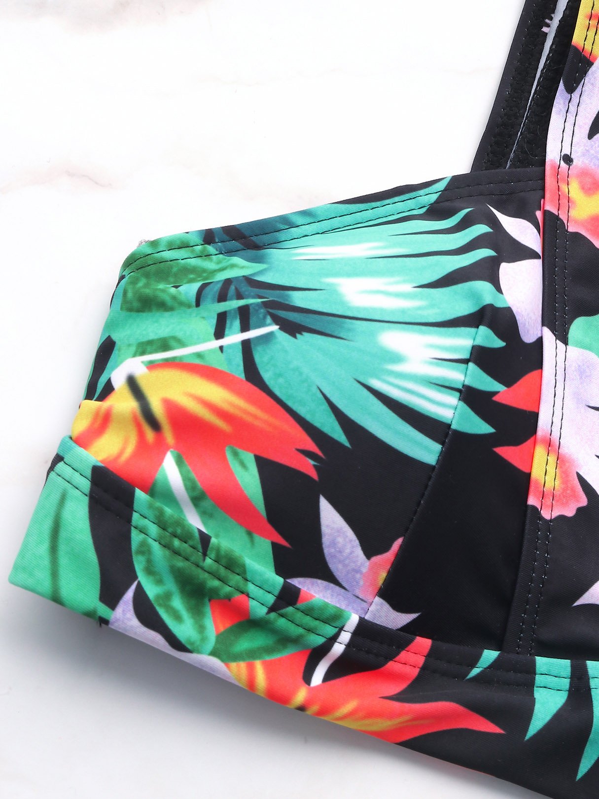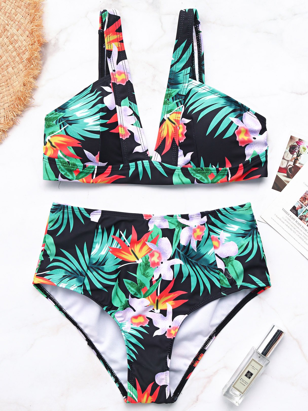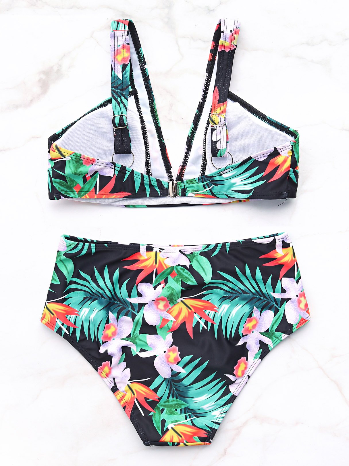V-Neck Sleeveless Floral Print Bikini Swimsuit