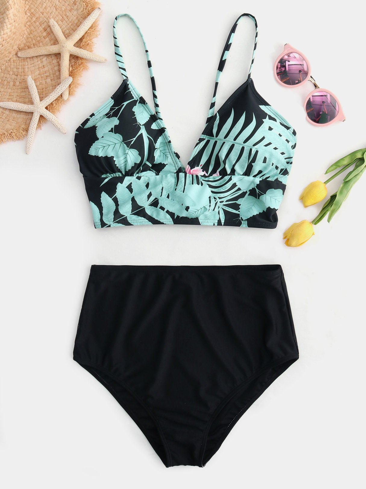 V-Neck Sleeveless Floral Print Criss-Cross Tie-Up Bikini Sets