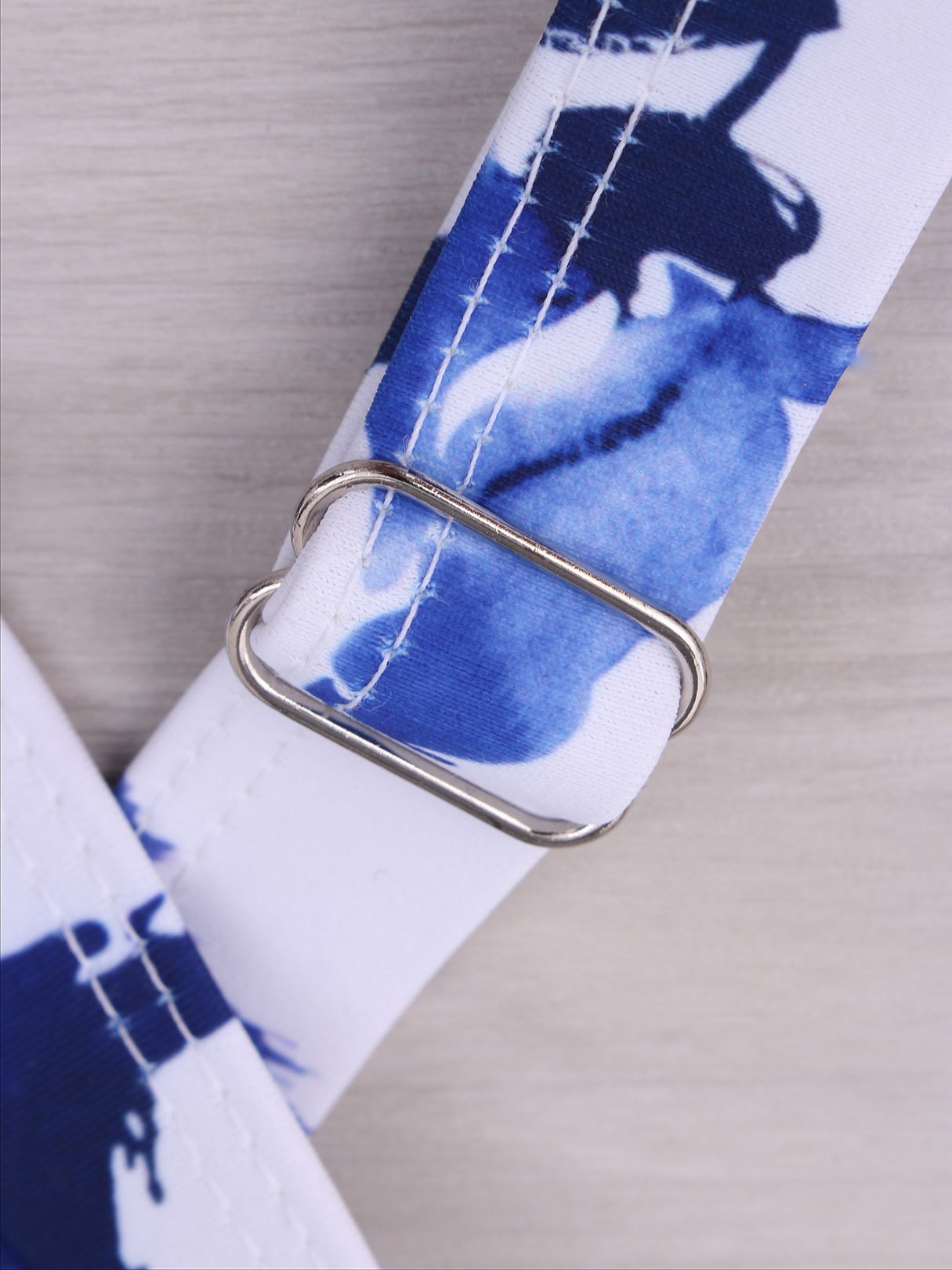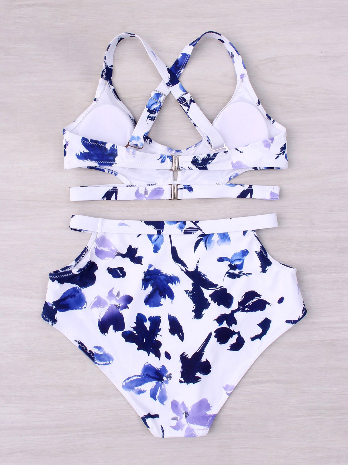V-Neck Sleeveless Floral Print Cut Out High Waist Two Piece Bikinis