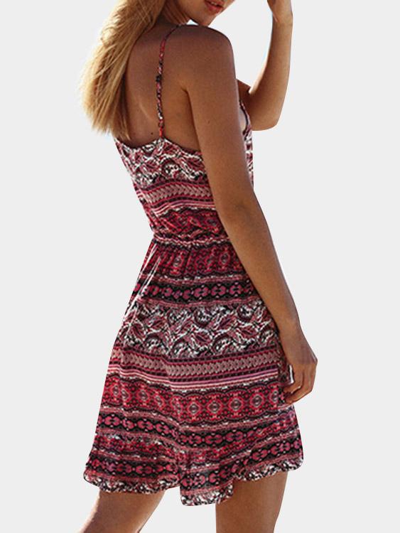 V-Neck Sleeveless Floral Print Lace-Up Dresses