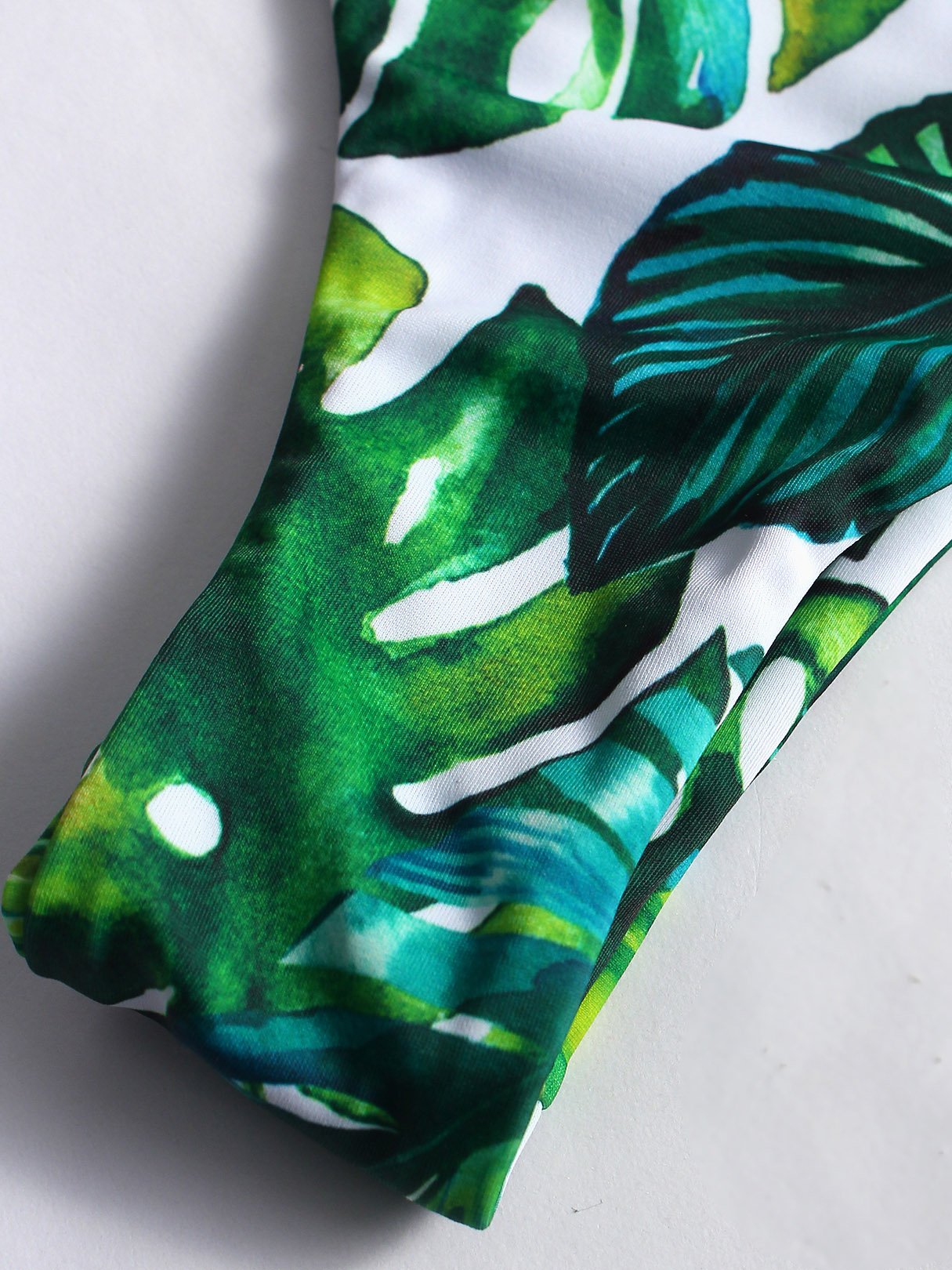 V-Neck Sleeveless Floral Print Tie-Up Two Piece Bikinis