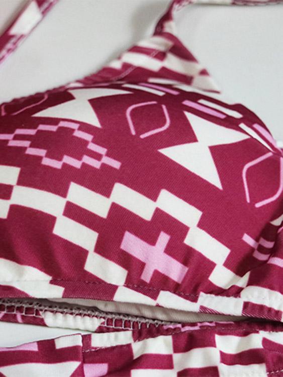 V-Neck Sleeveless Geometrical Backless Lace-Up Two Piece Bikinis