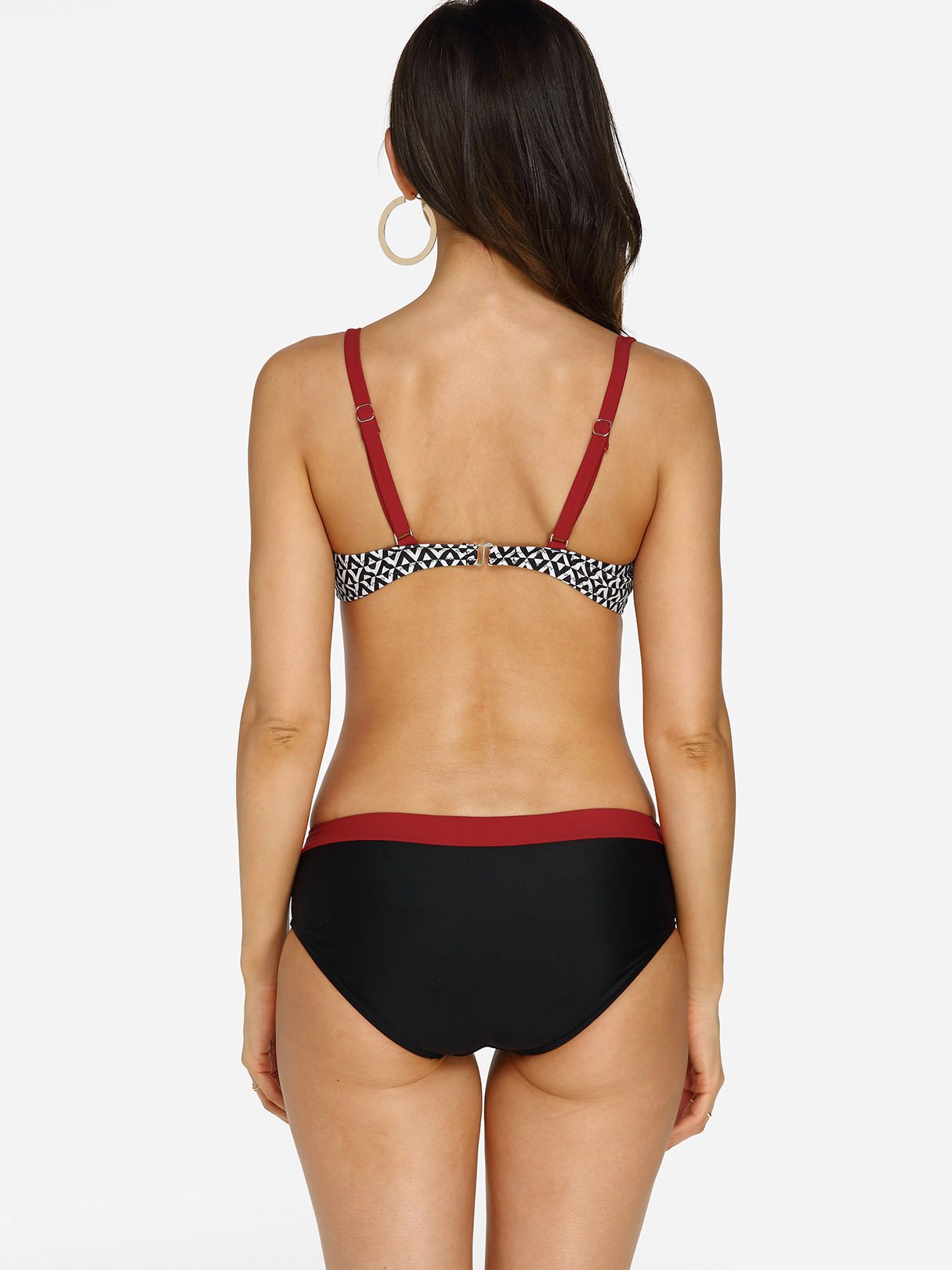 V-Neck Sleeveless Geometrical Printed Two Piece Bikinis