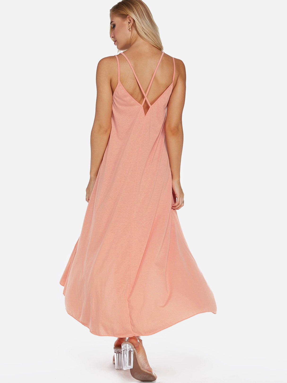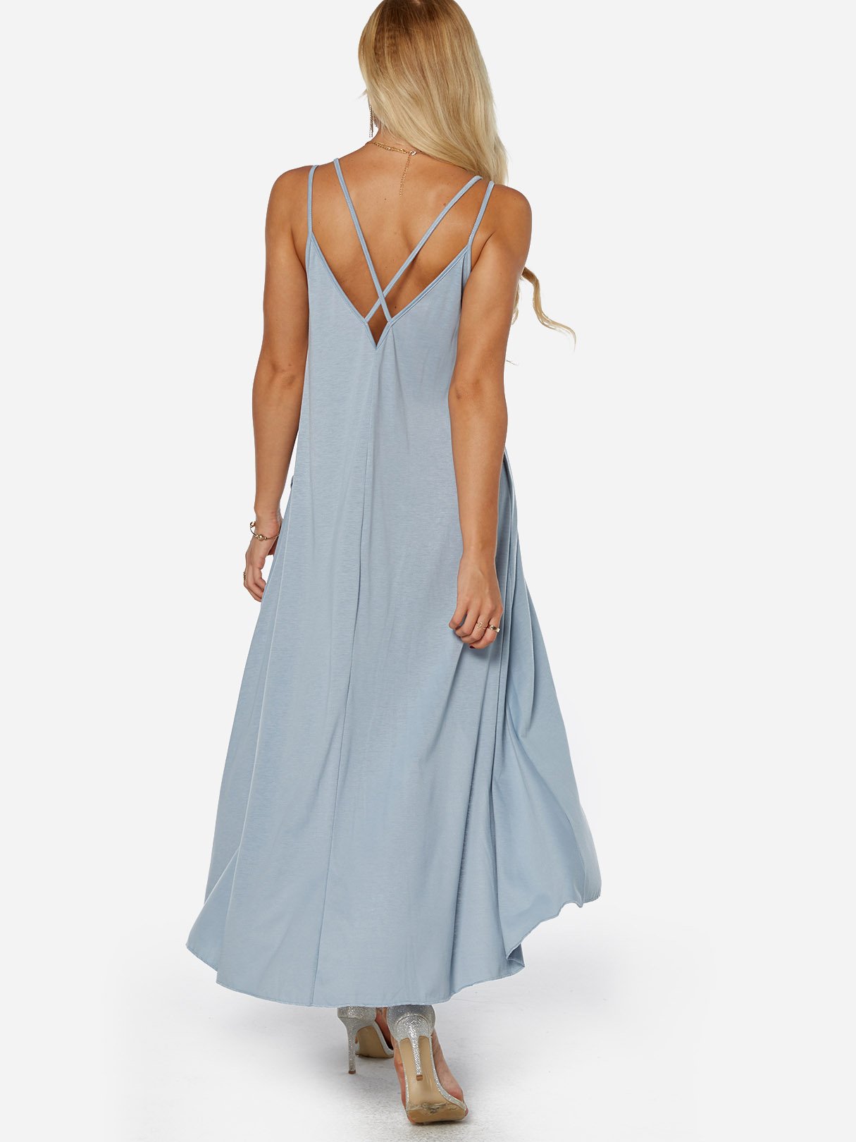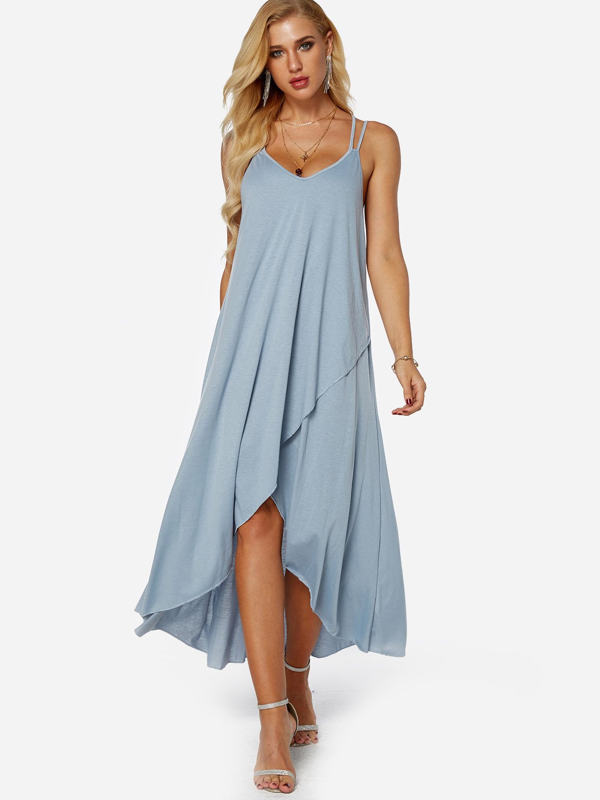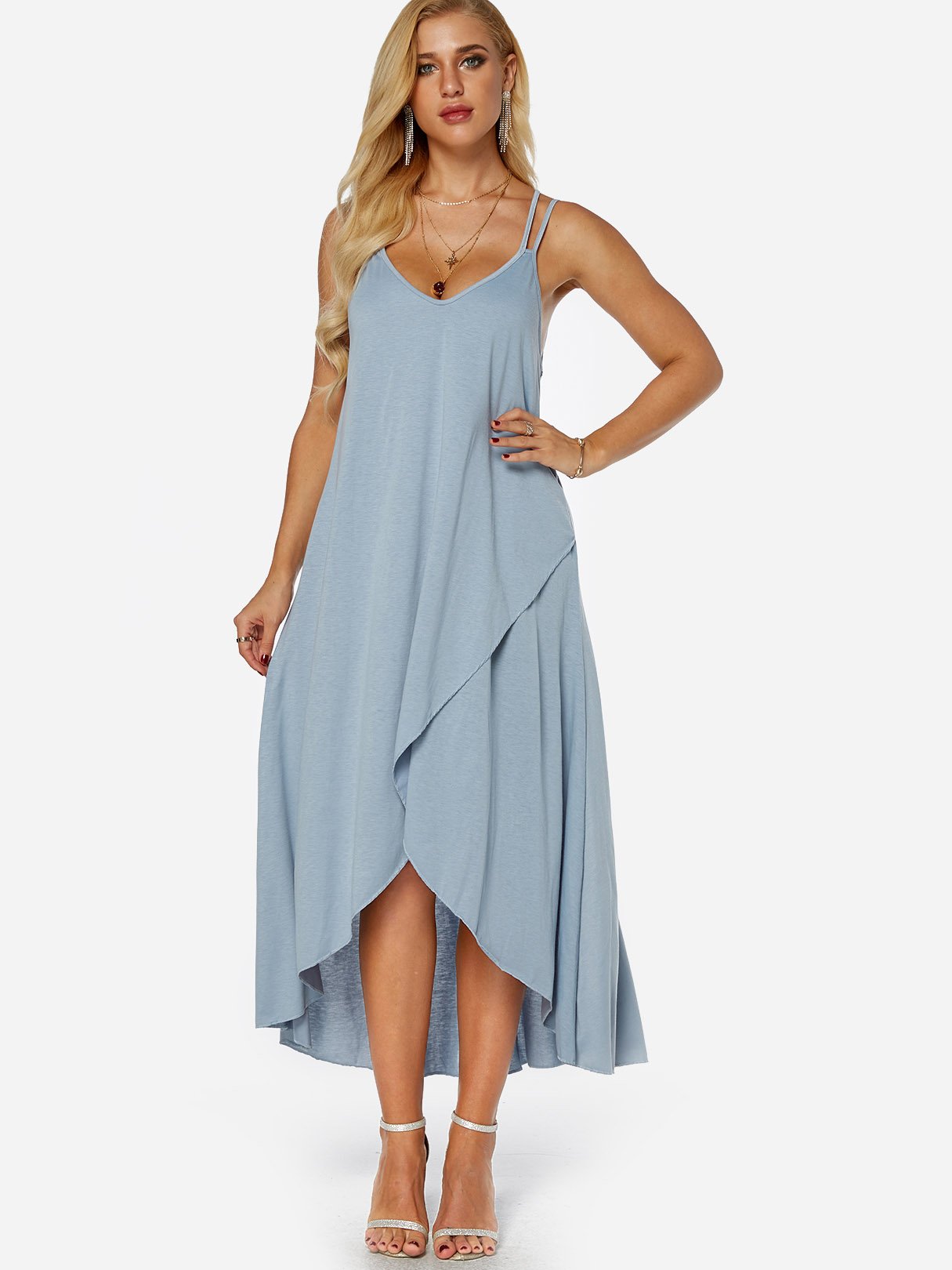 V-Neck Sleeveless Plain Backless Irregular Hem Beachwear Dresses