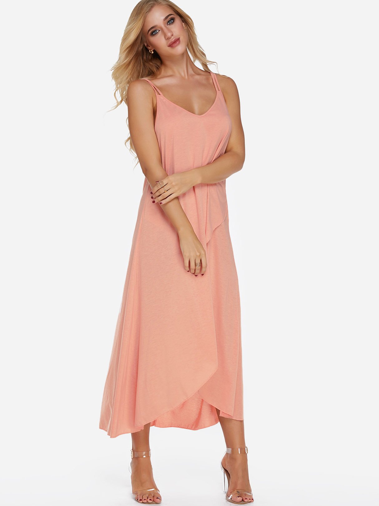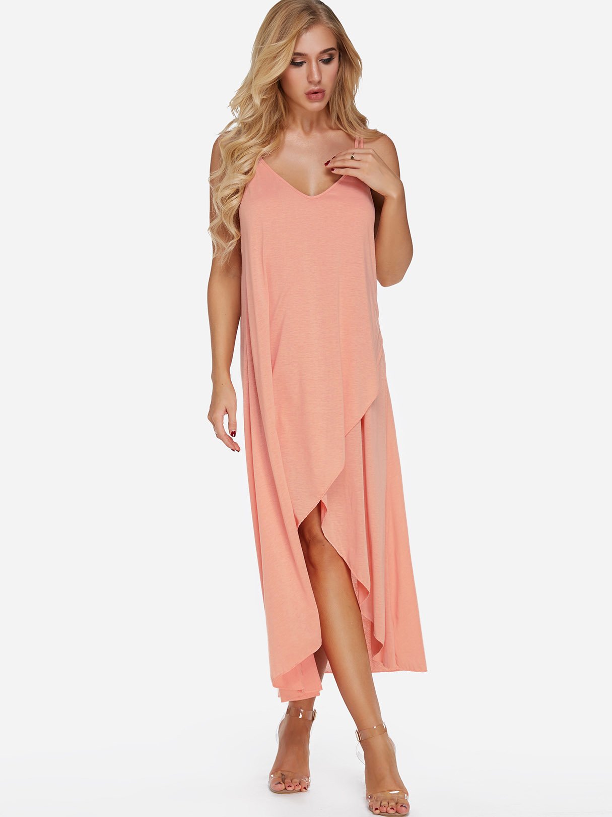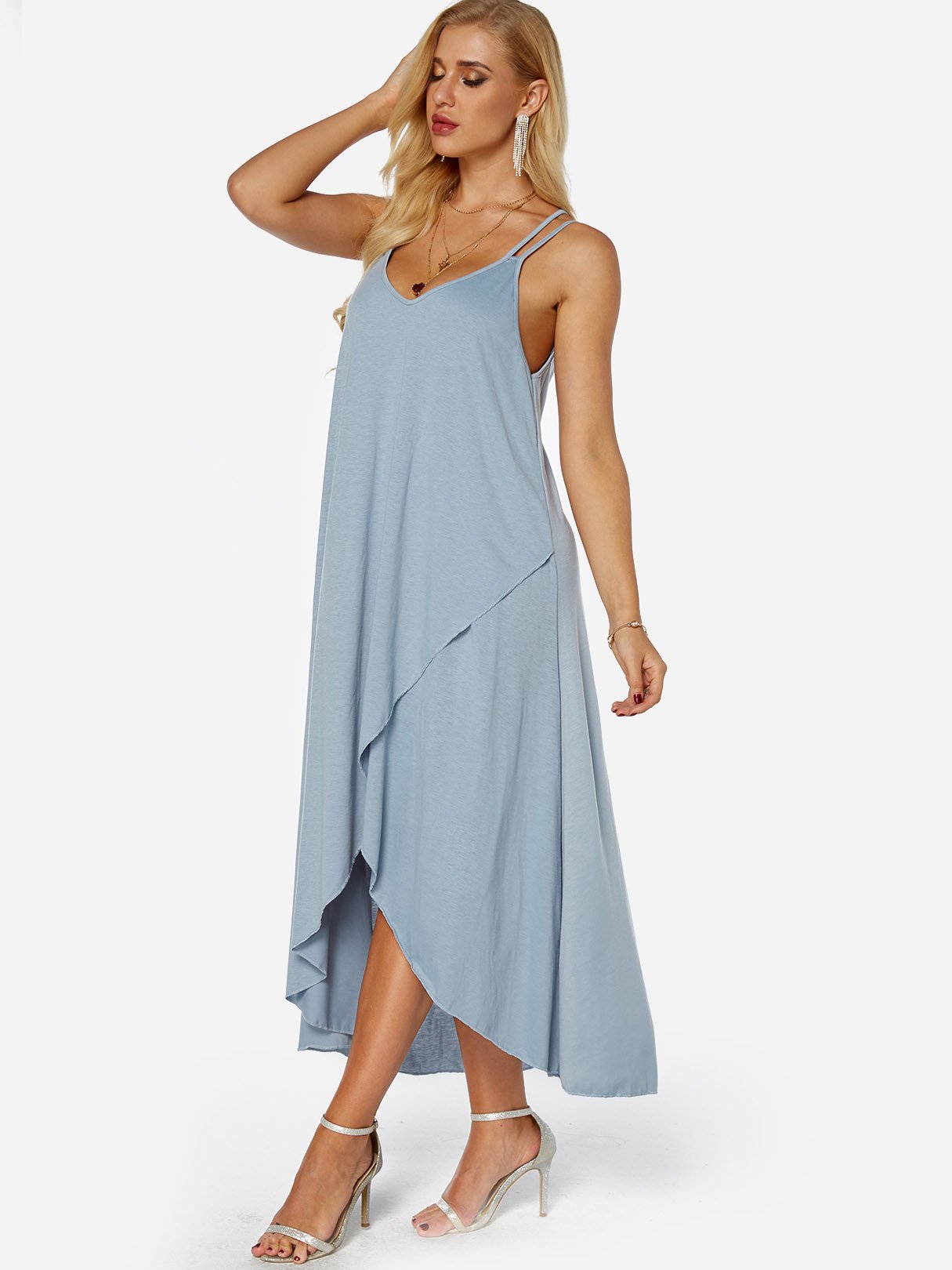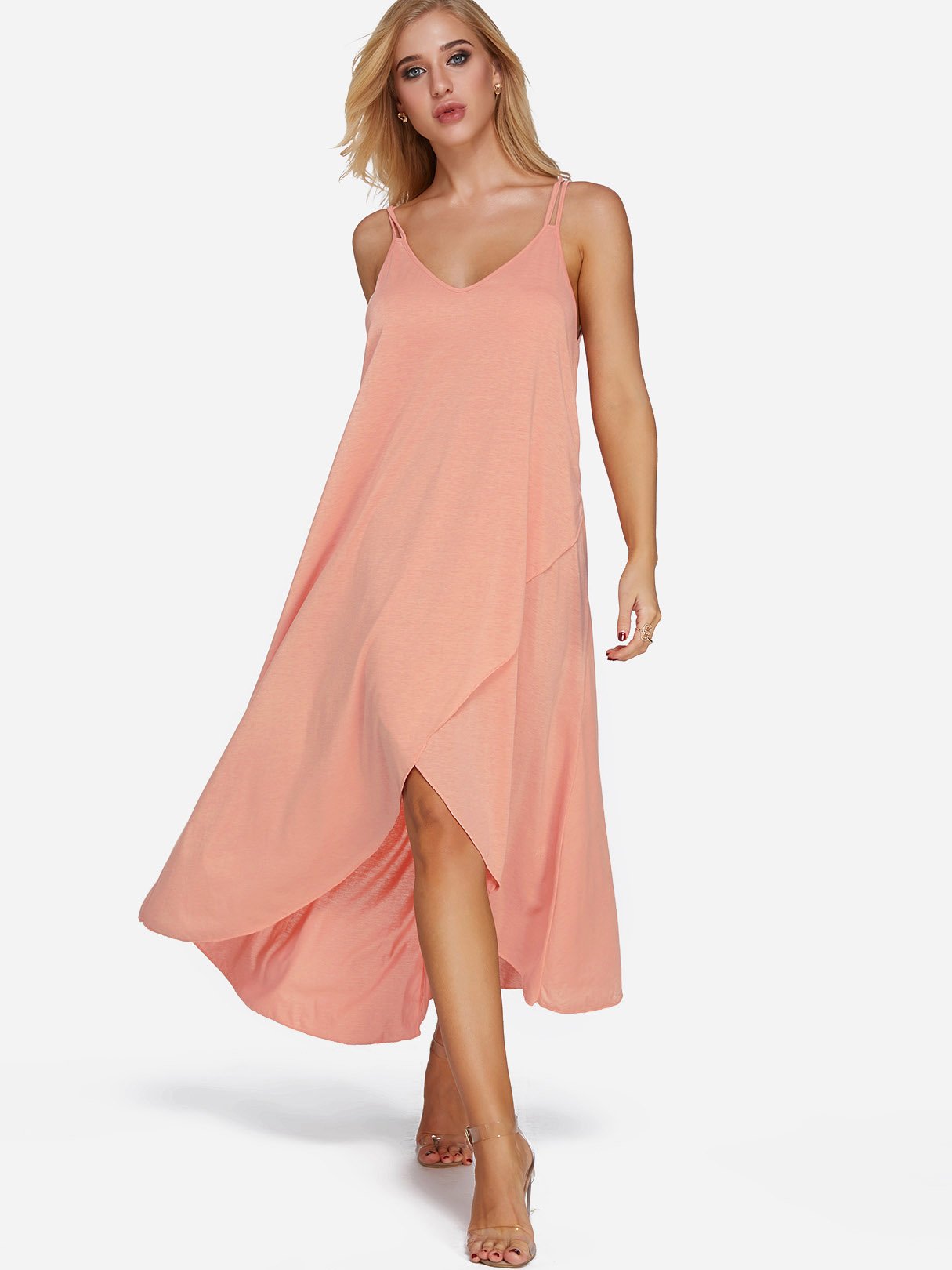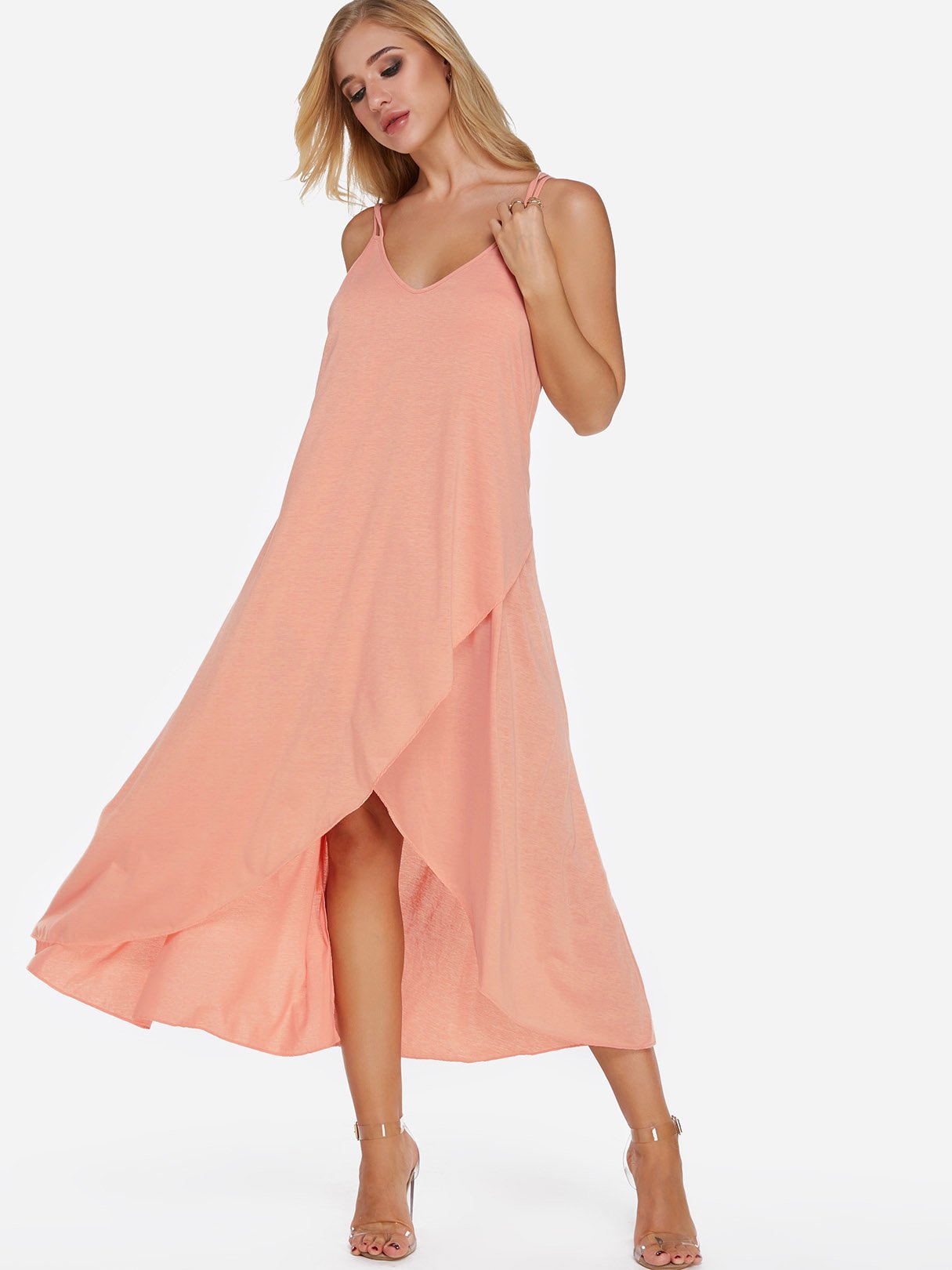 V-Neck Sleeveless Plain Backless Irregular Hem Beachwear Dresses
