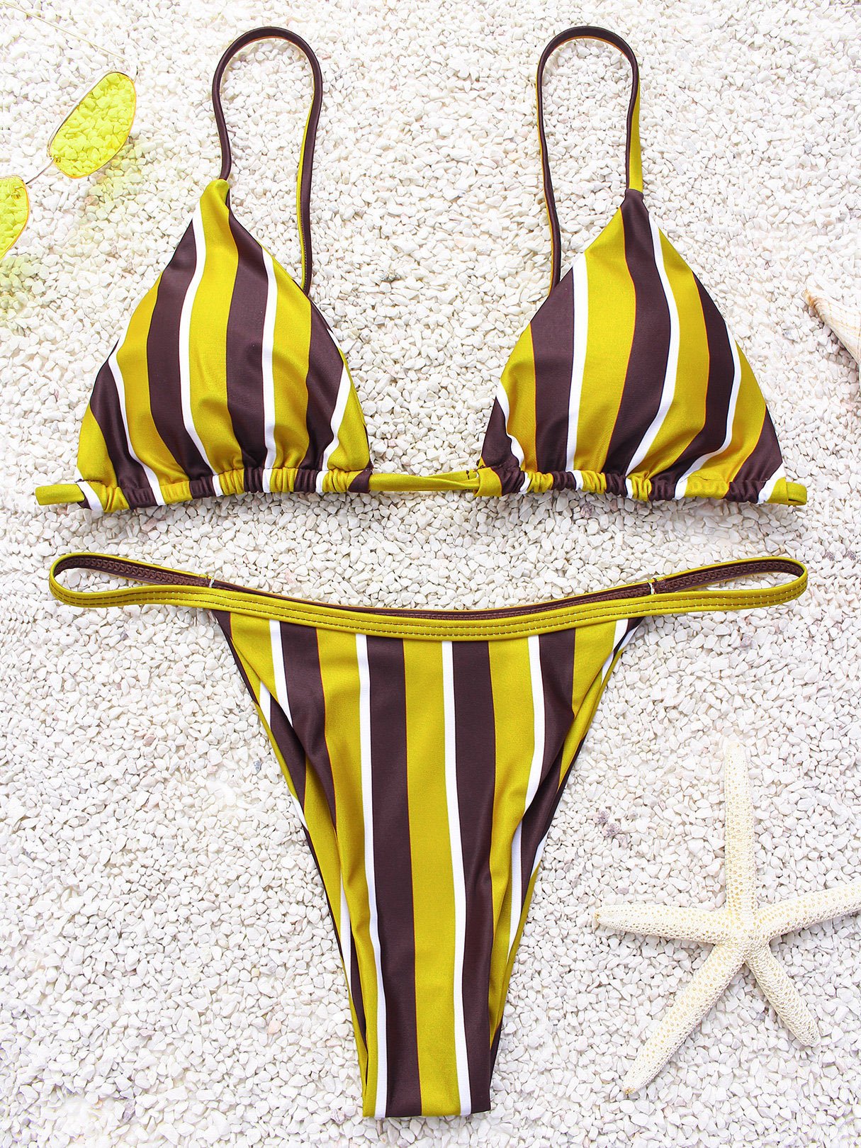 V-Neck Sleeveless Stripe Spaghetti Strap Bikinis