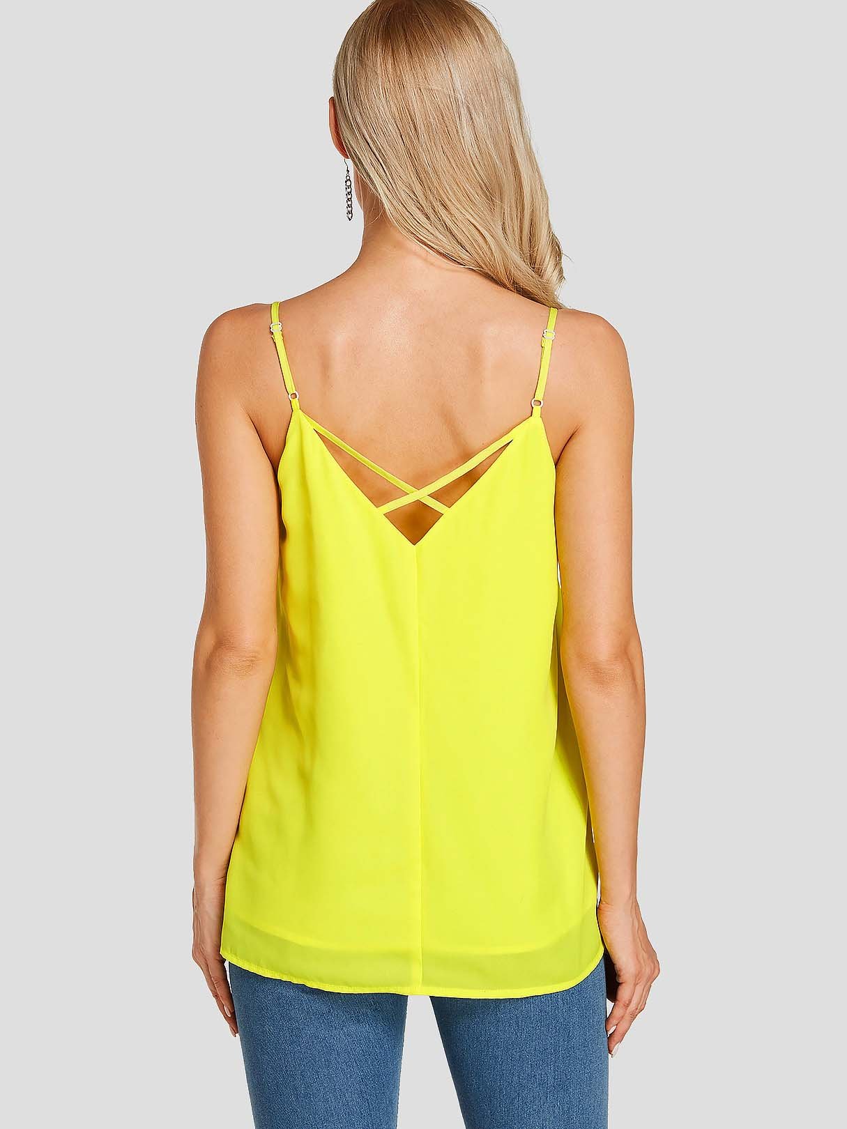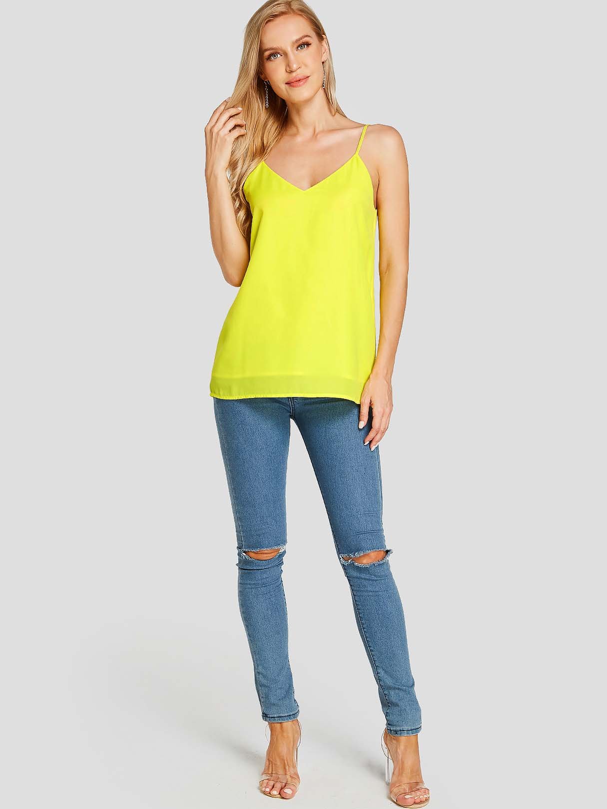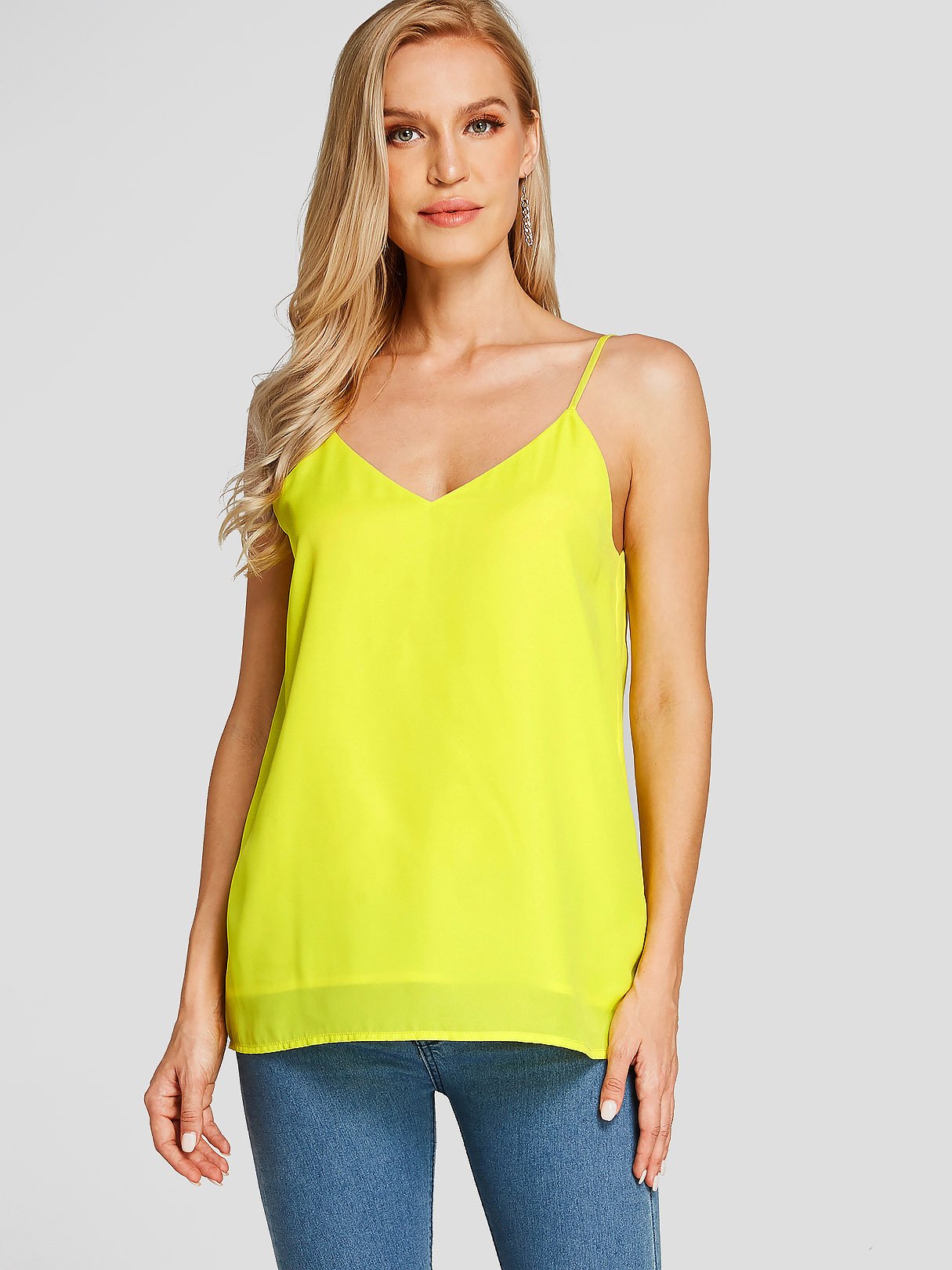 V-Neck Spaghetti Strap Sleeveless Yellow Blouses