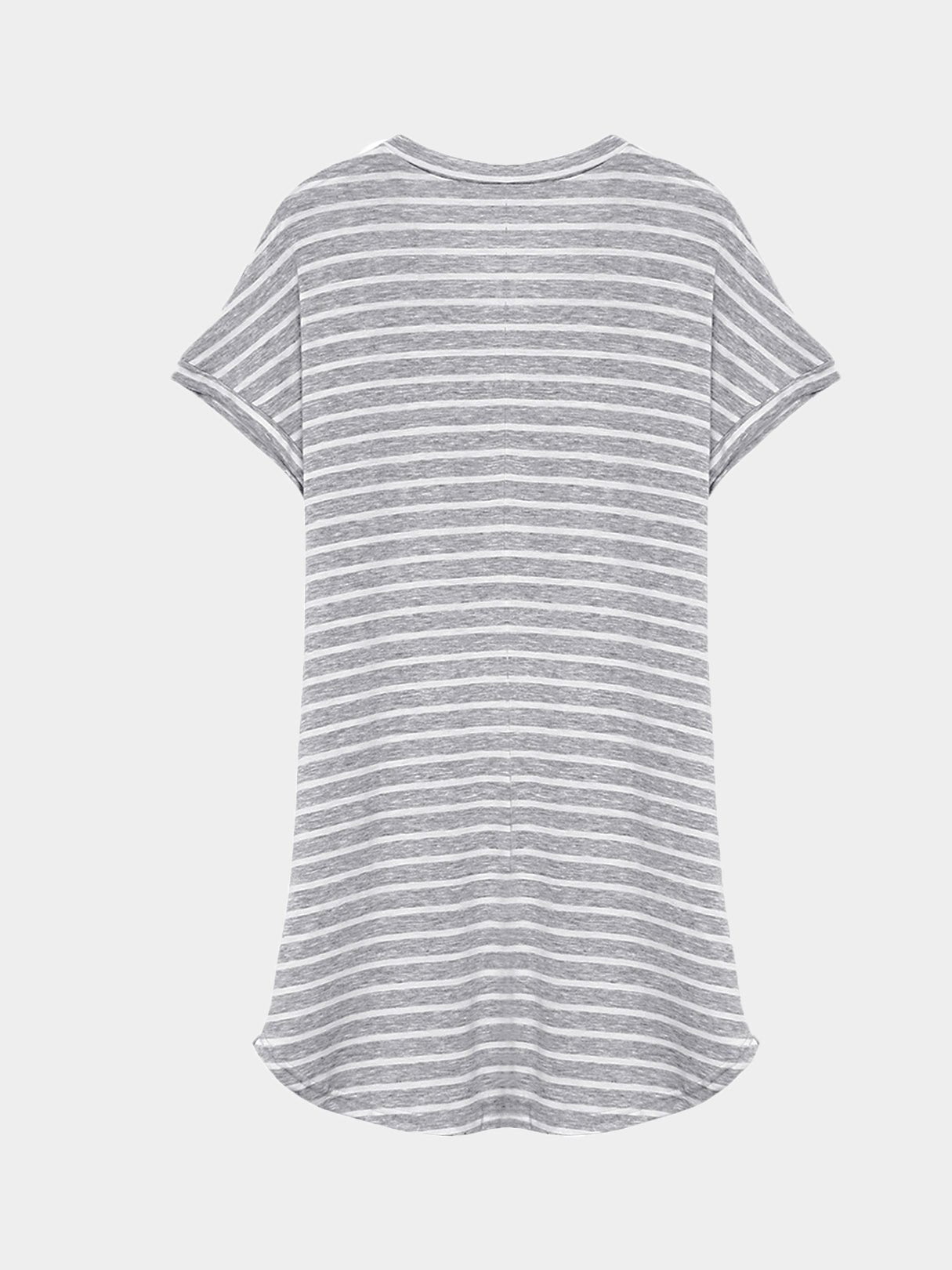 V-Neck Stripe Curved Hem Mini Dress - Multi / S is backordered and will ship as soon as it is back in stock.
