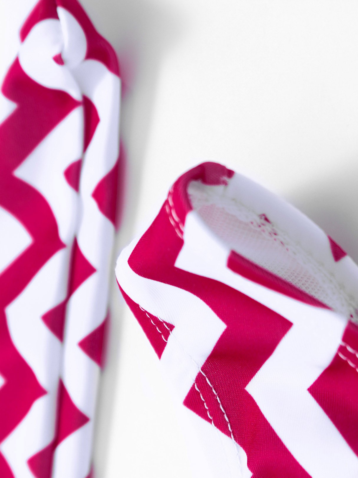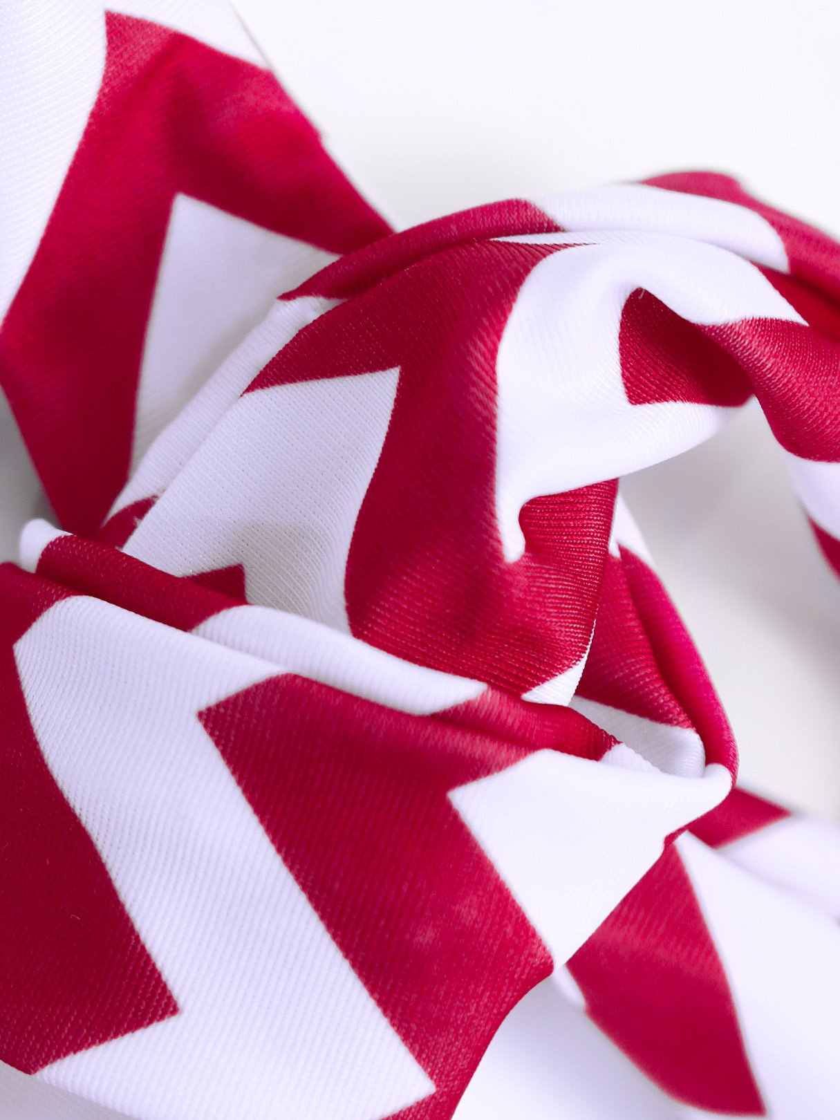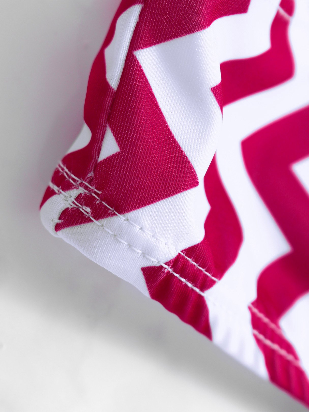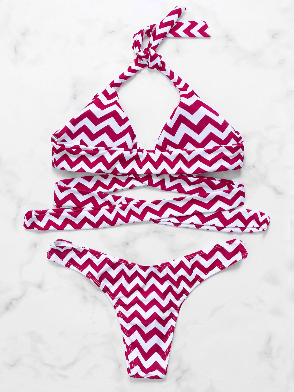 V-Neck Stripe Printed Crossed Front Backless Tie-Up Sleeveless Red Bikinis