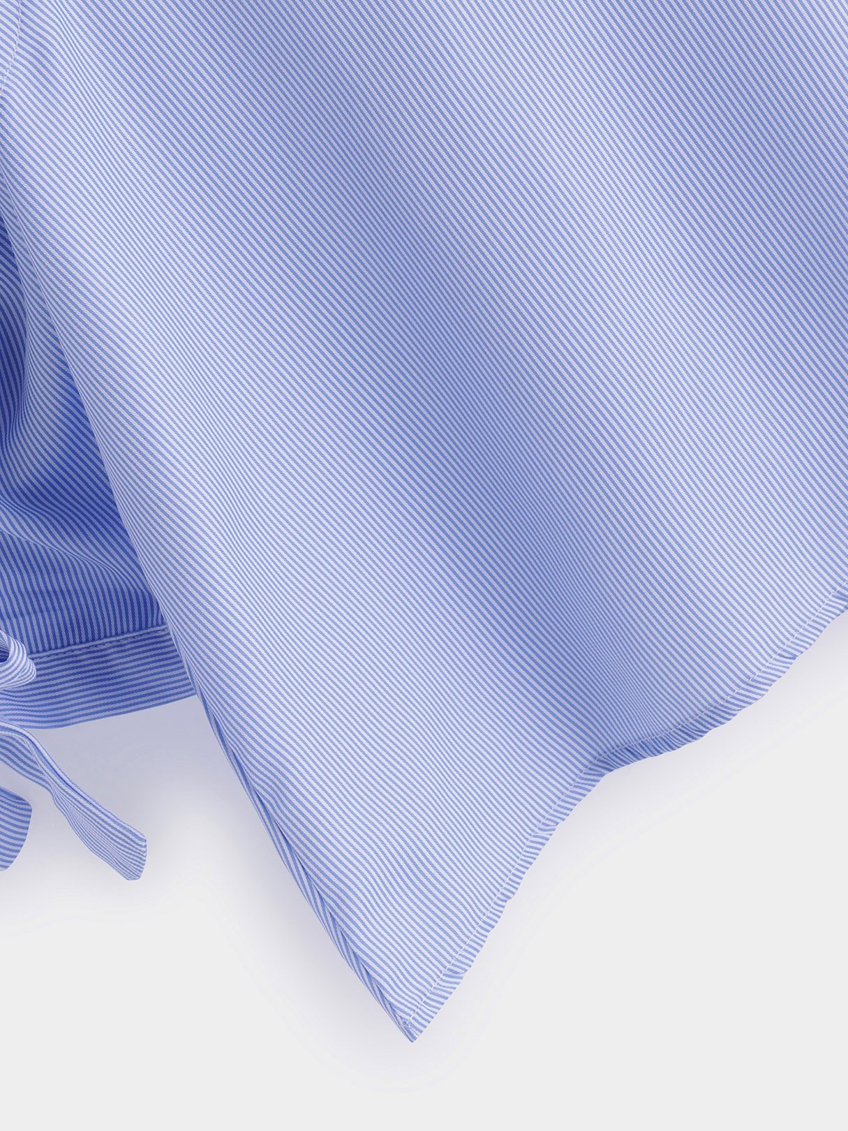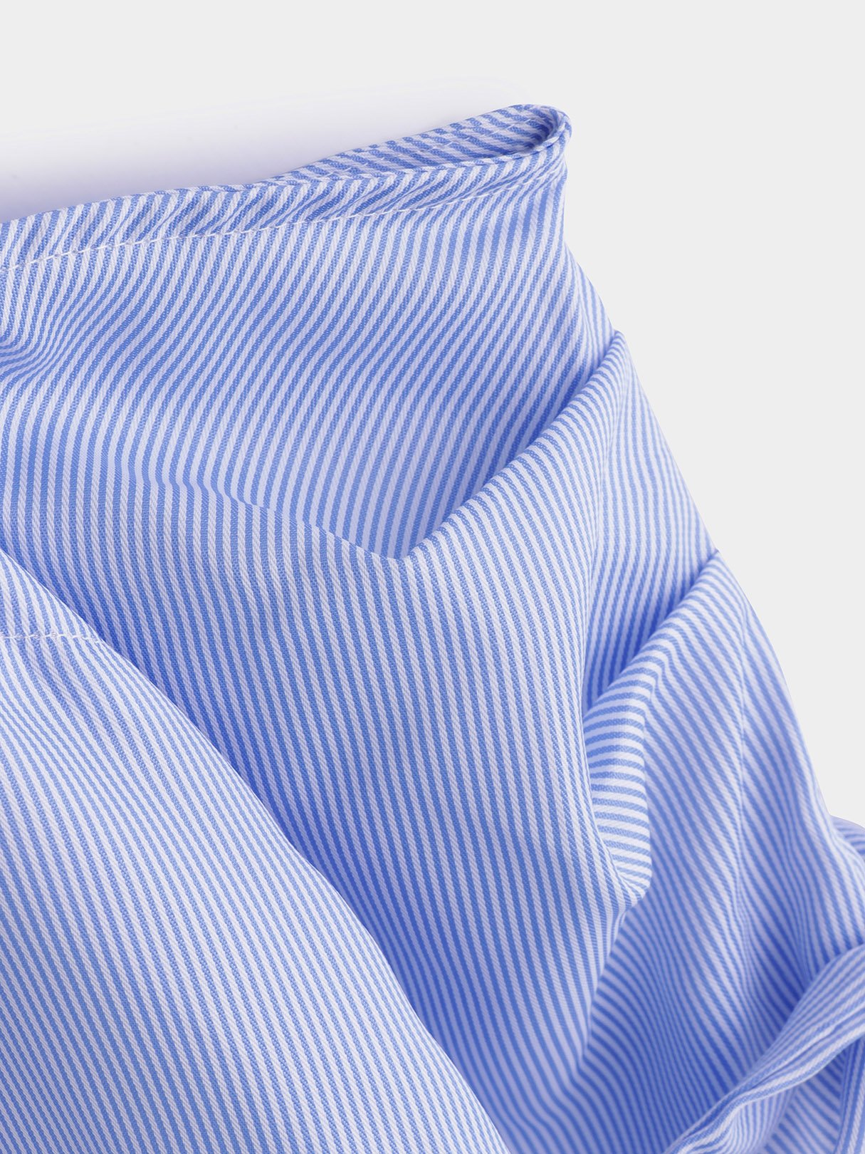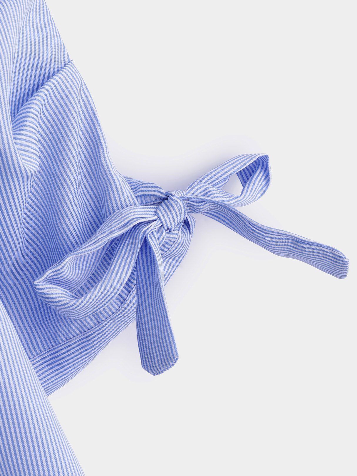 V-Neck Stripe Spaghetti Strap Half Sleeve Blue Blouses