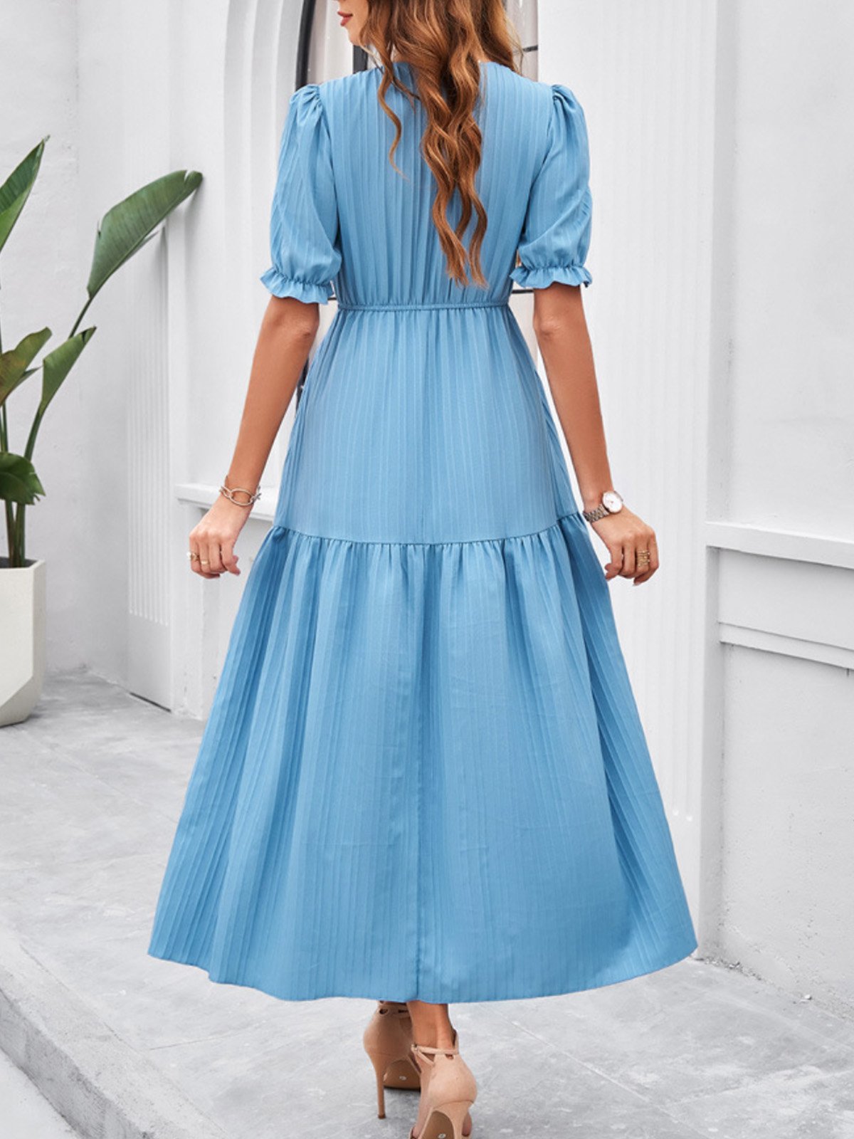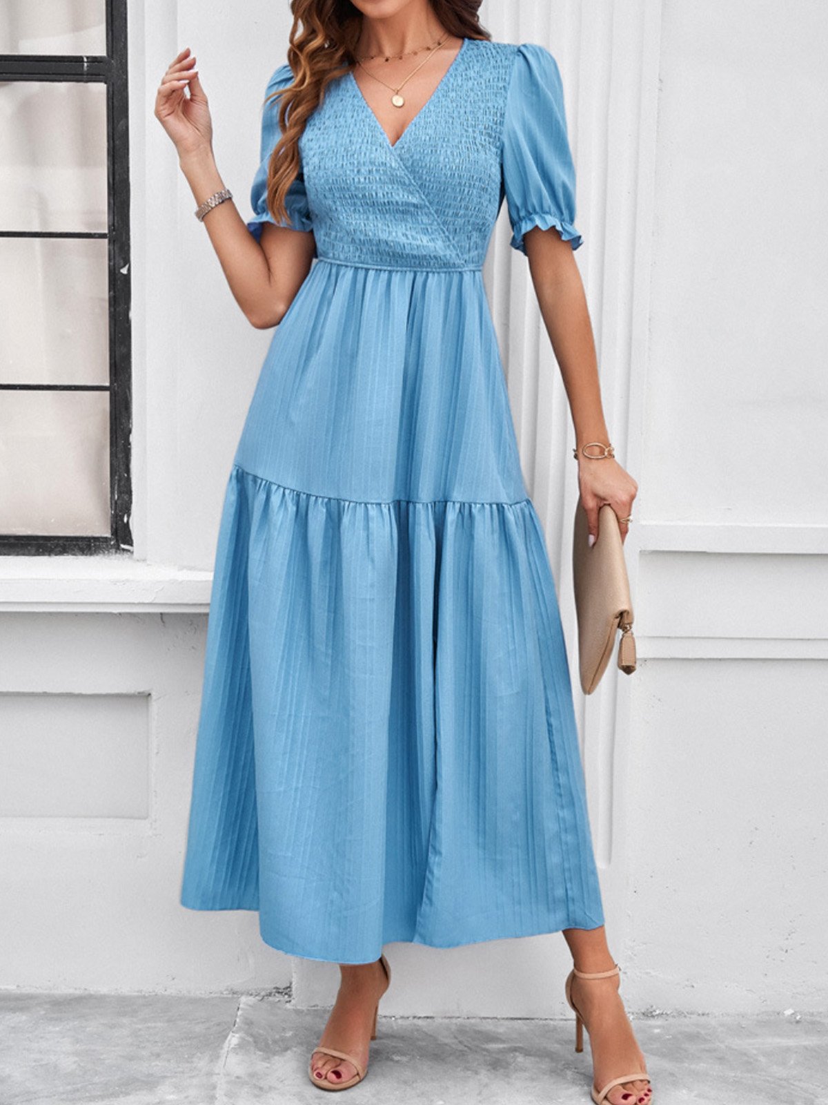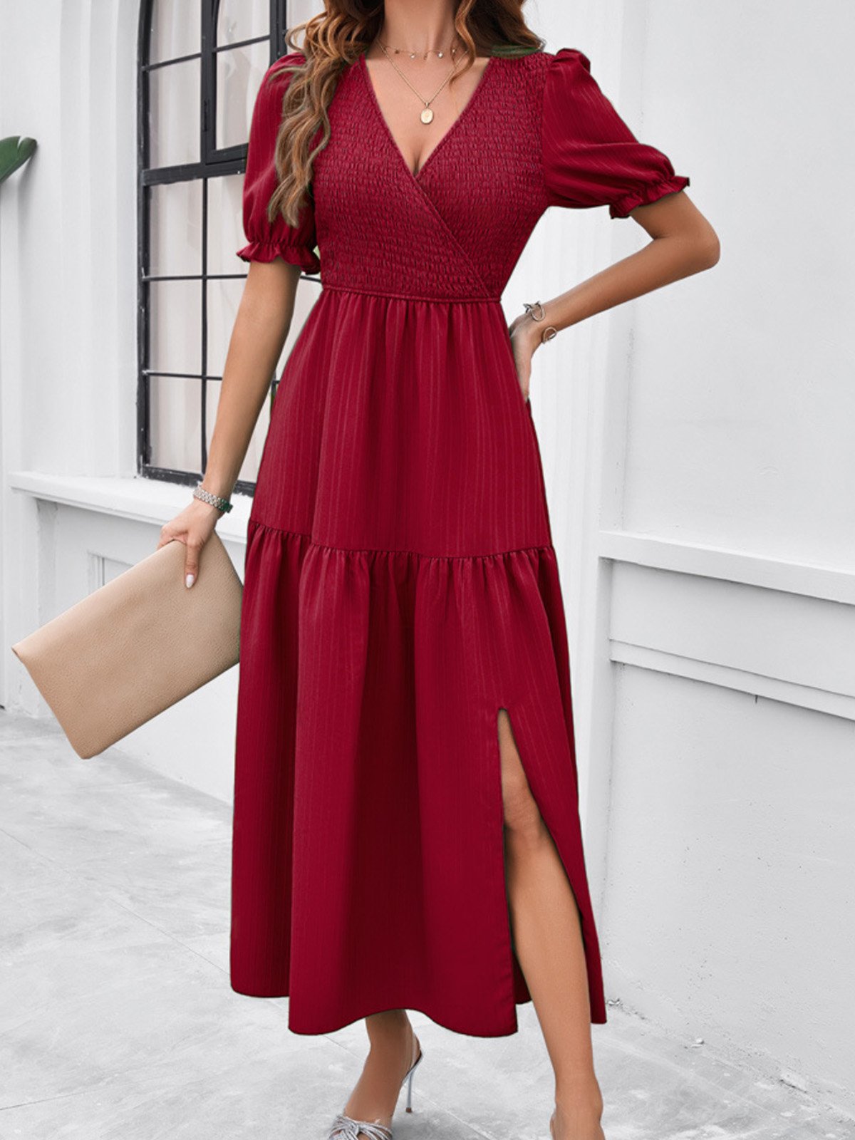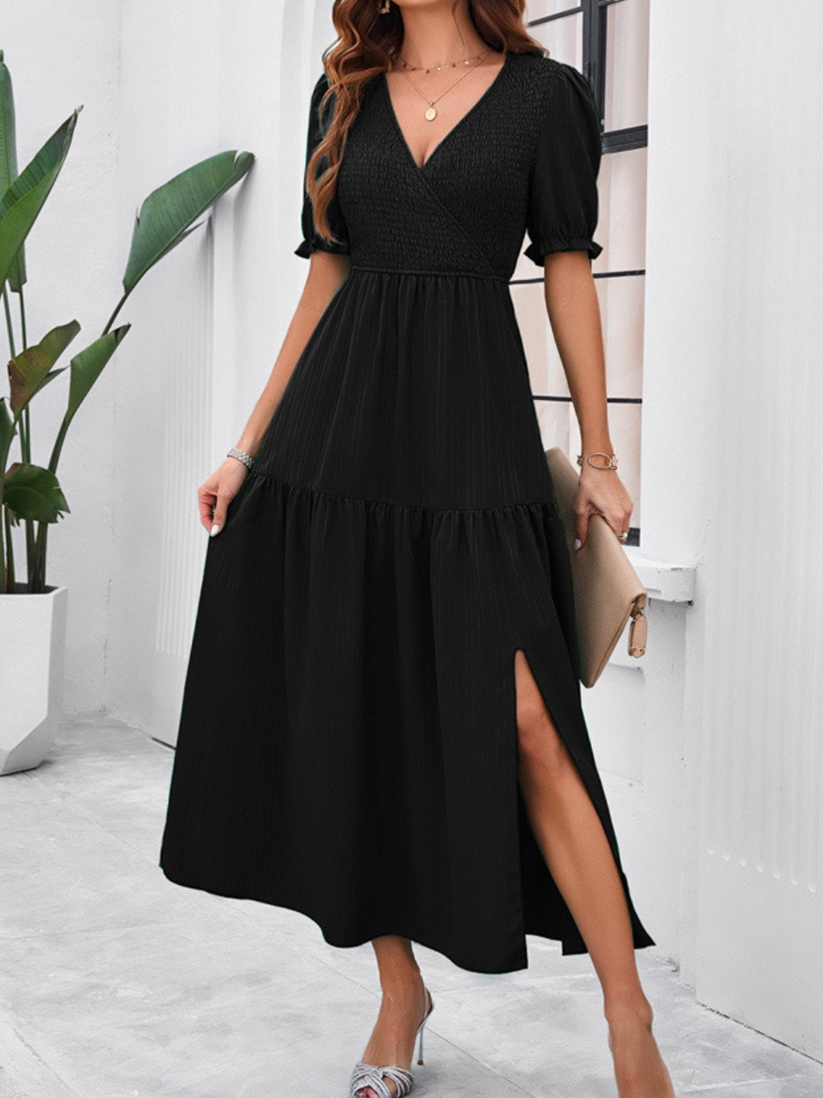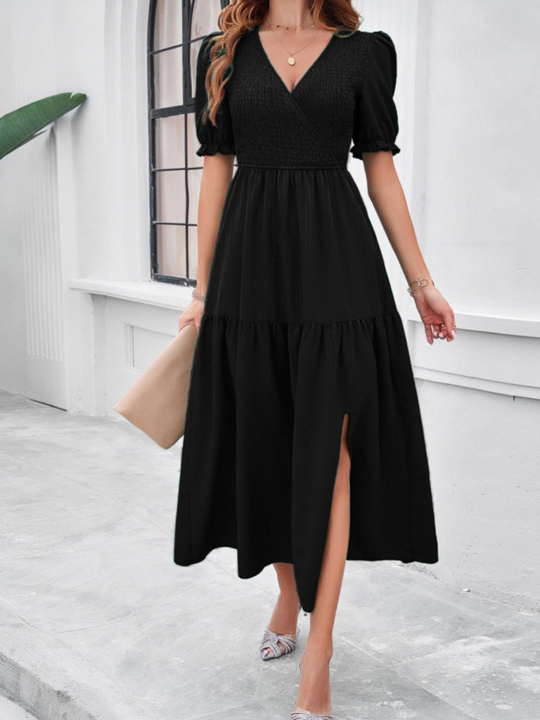 Vacation V Neck Short Sleeve Plain Midi Dress - Green / S is backordered and will ship as soon as it is back in stock.