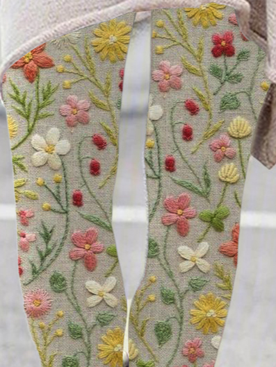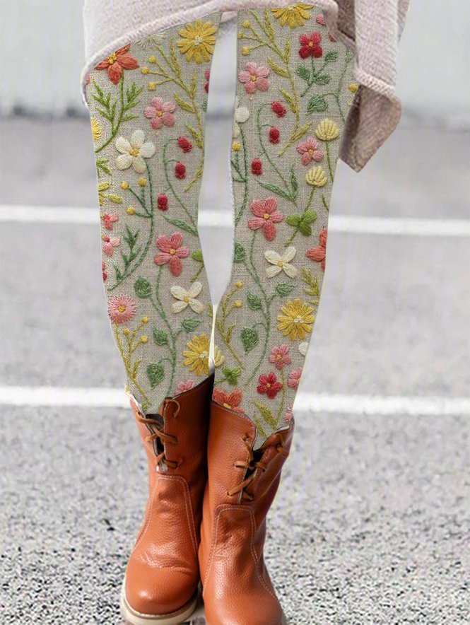 Vintage Floral Printing Tight Long Leggings - Beige / S is backordered and will ship as soon as it is back in stock.