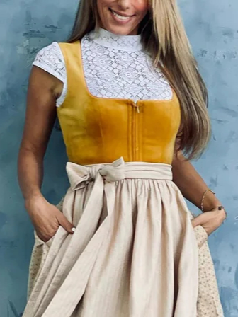 Vintage Short Sleeve Square Neck Polka Dots Midi Dress - Yellow / S is backordered and will ship as soon as it is back in stock.