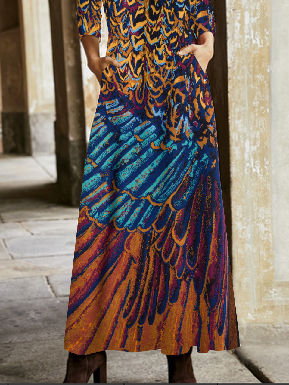 Vintage V Neck Long Sleeve Ethnic Maxi Dress - Multicolor / S is backordered and will ship as soon as it is back in stock.