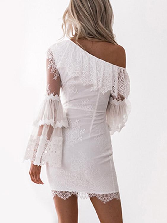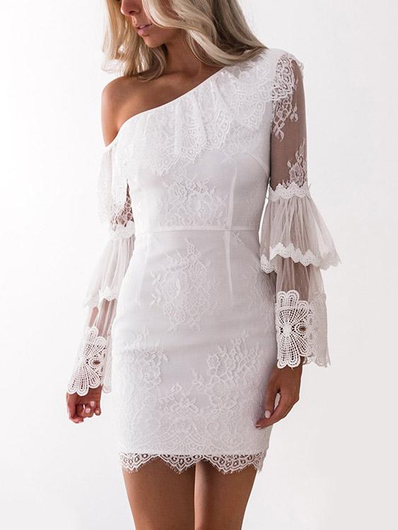 White Asymmetrical One Shoulder Lace Zip Back Bodycon Sexy Dress