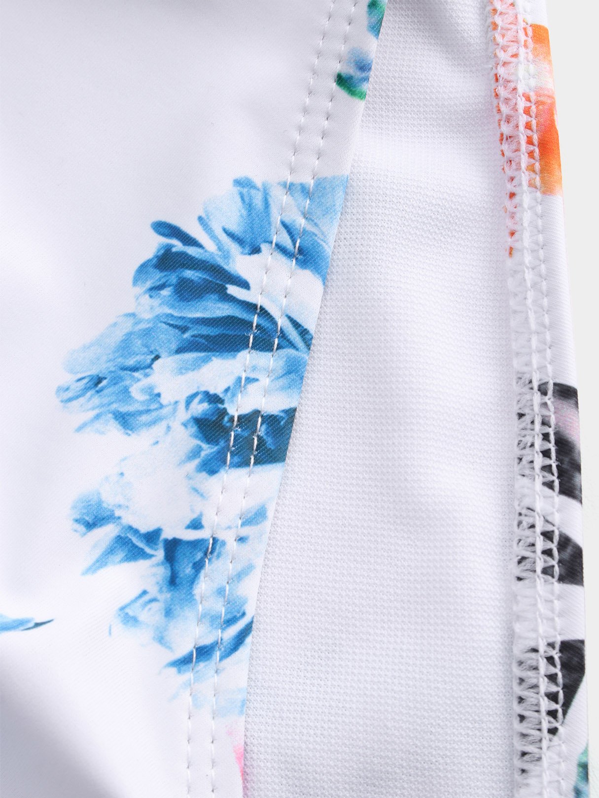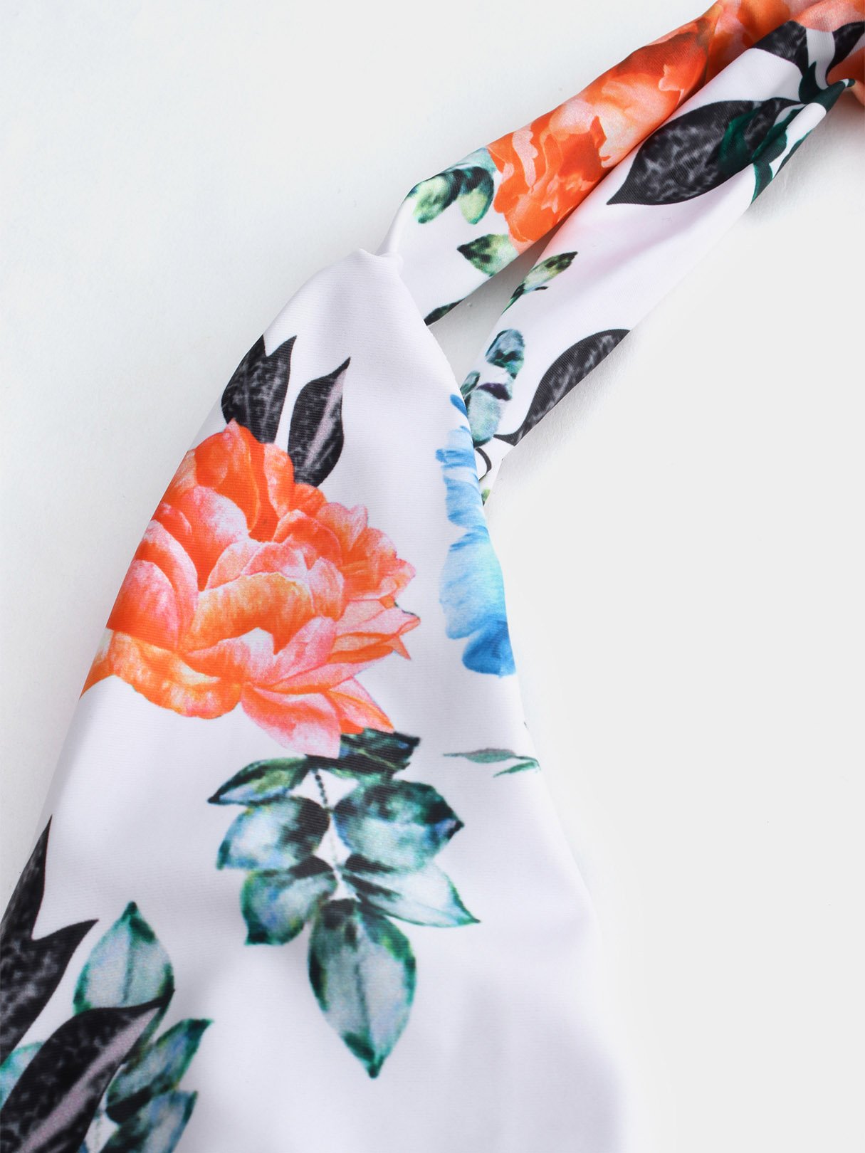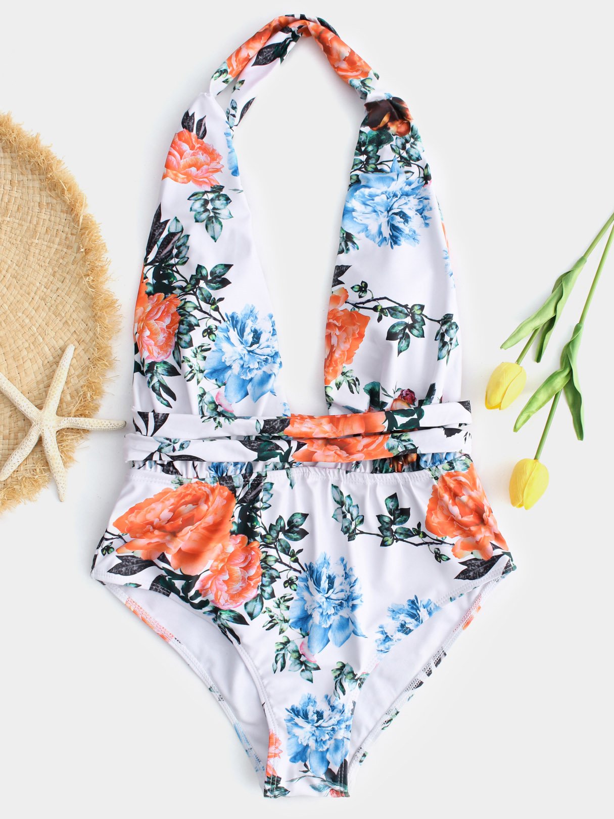 White Deep V Neck Floral Print Backless Criss-Cross Bikini