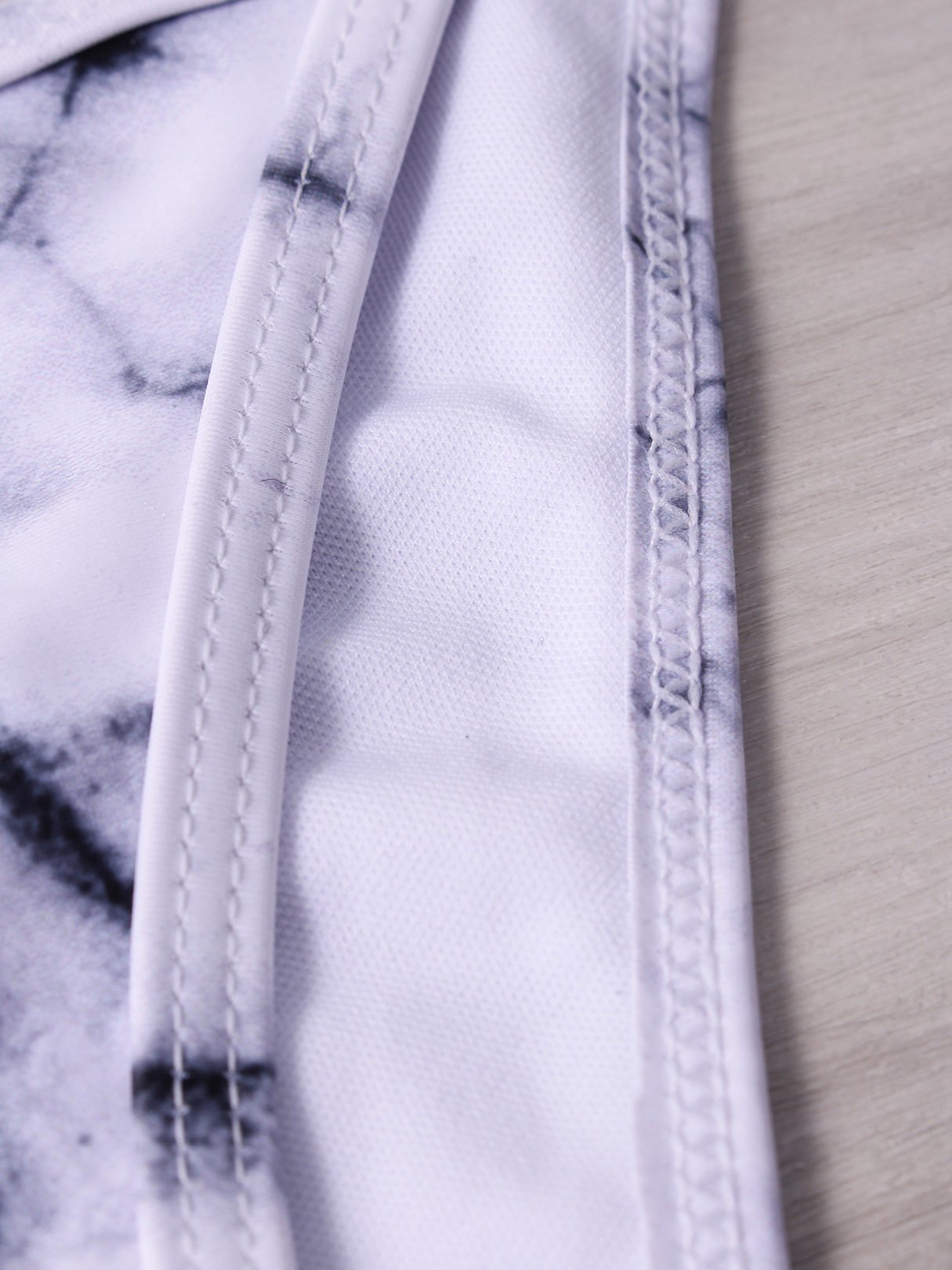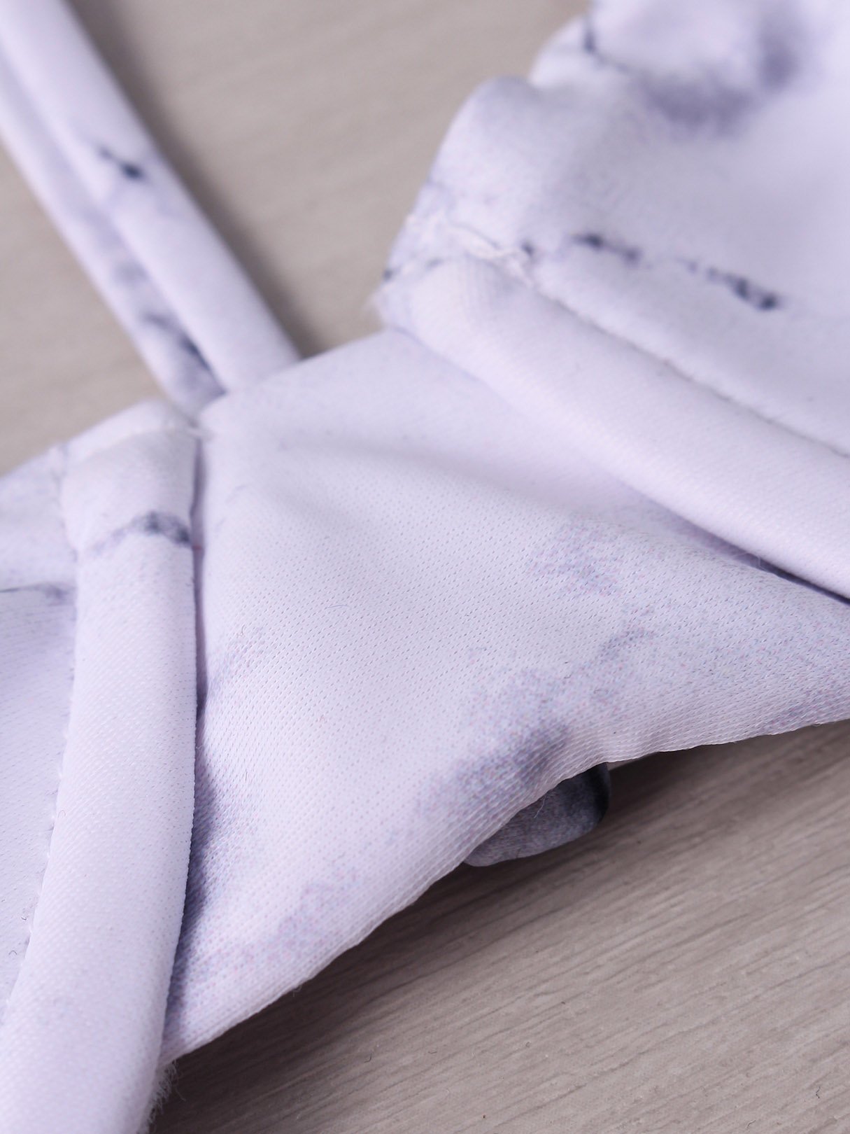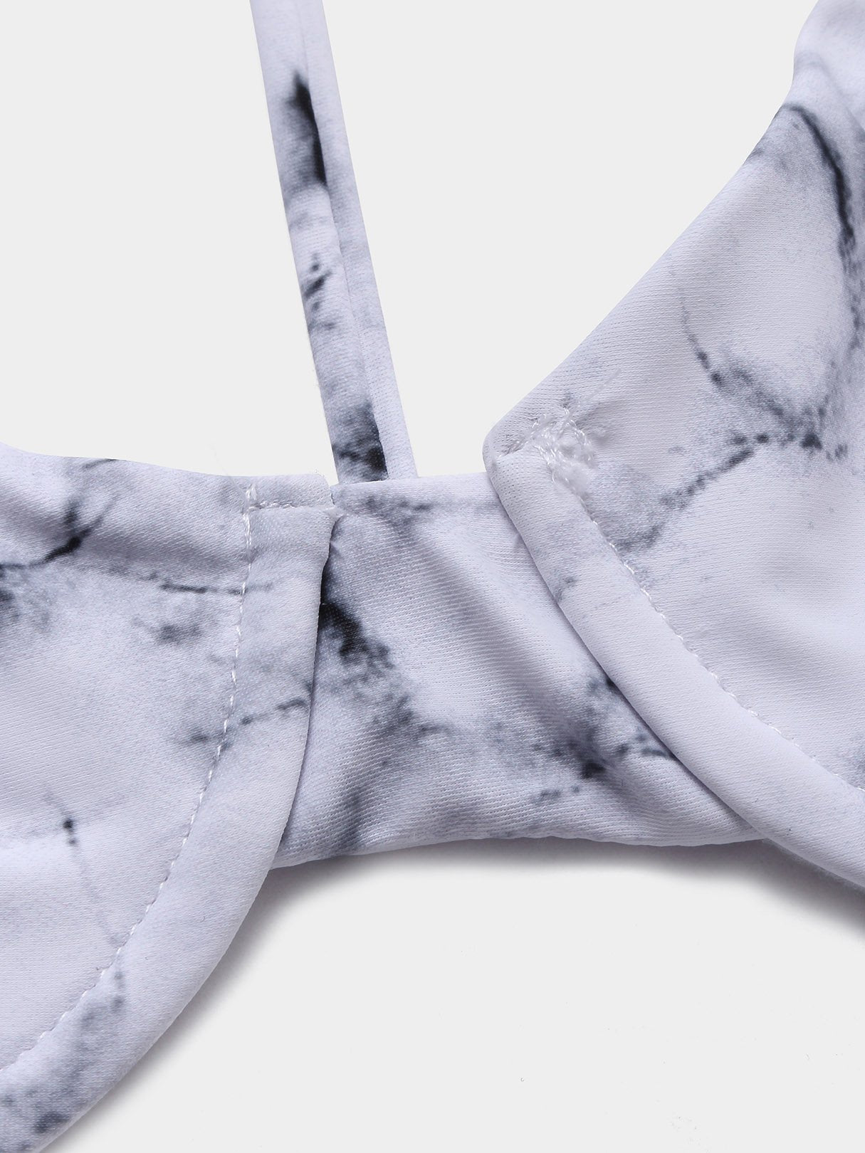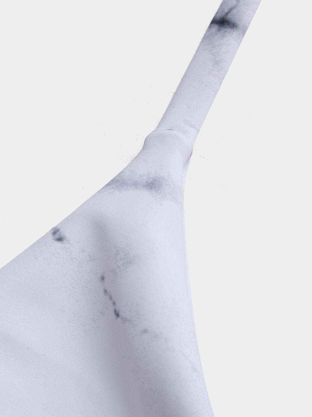 White Deep V Neck Sleeveless Printed Spaghetti Strap Two Piece Bikinis