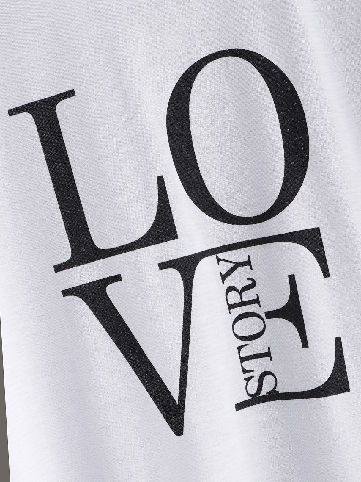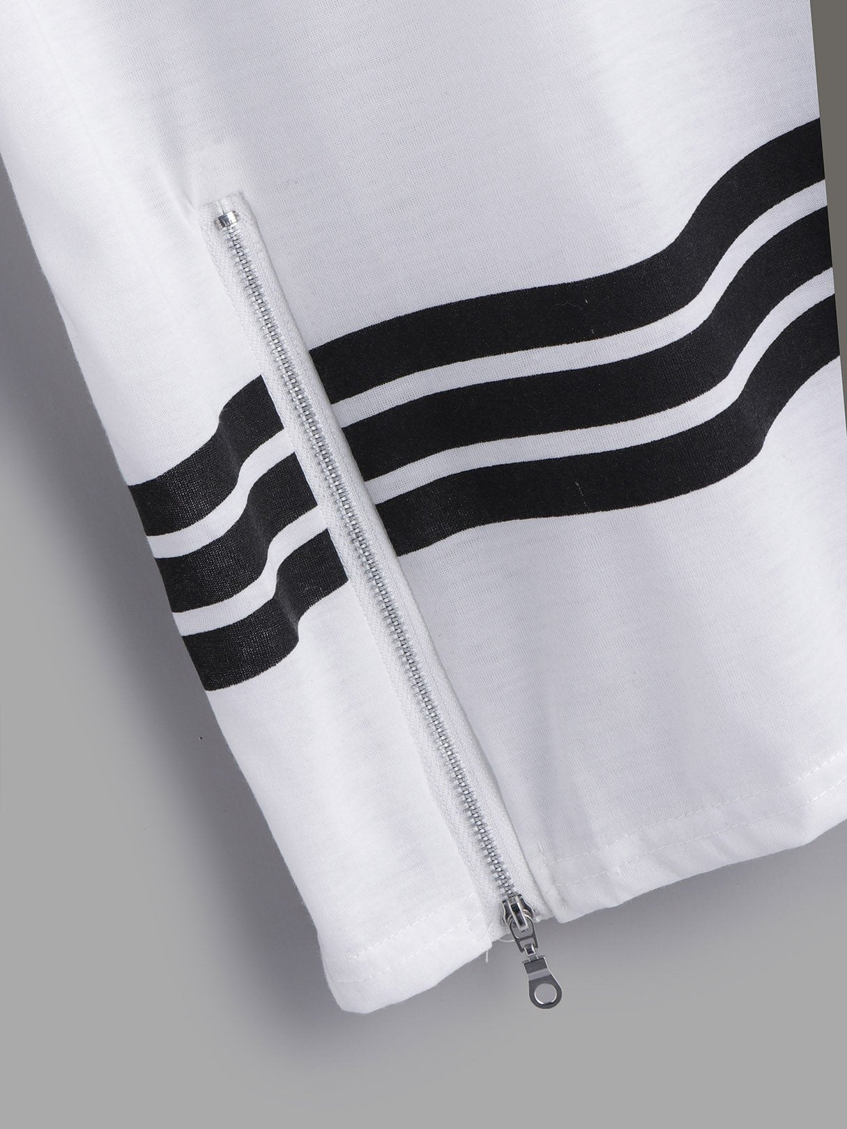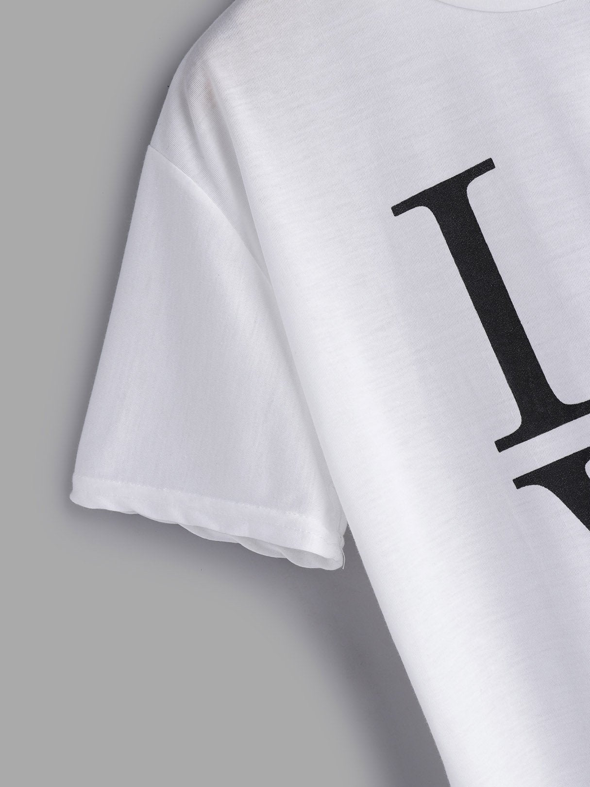 White Round Neck Short Sleeve Letter Zip Back Mini Dresses