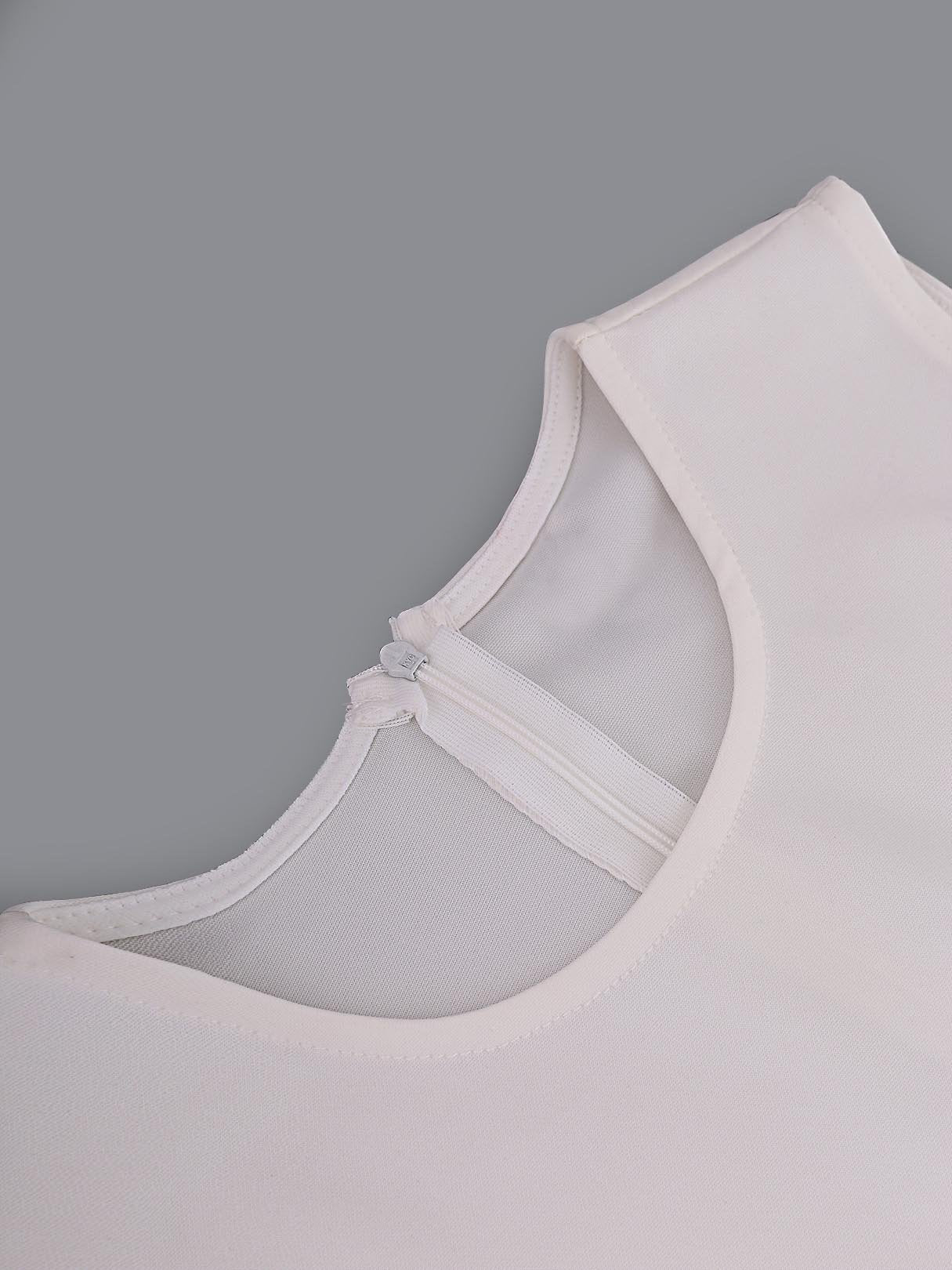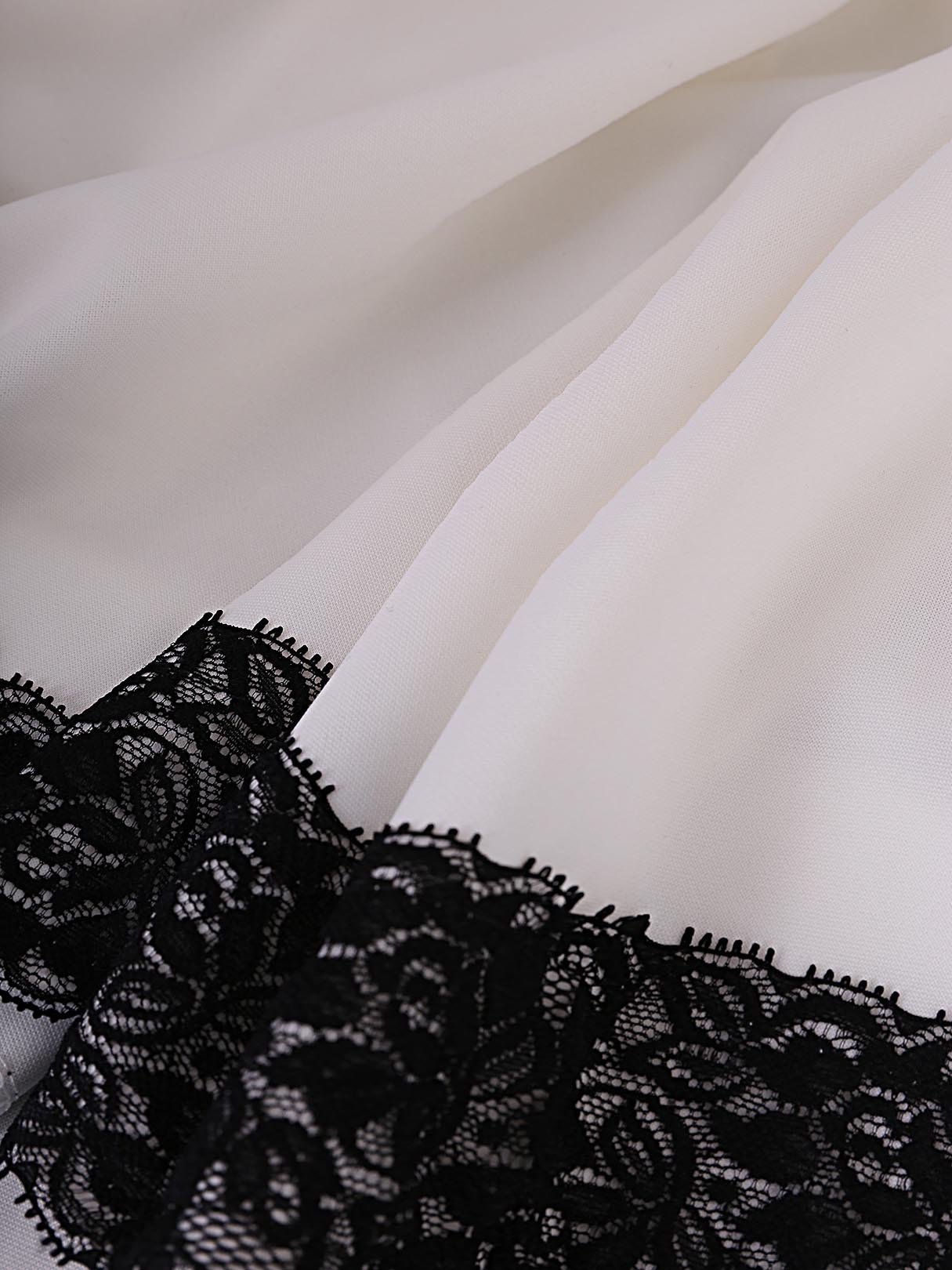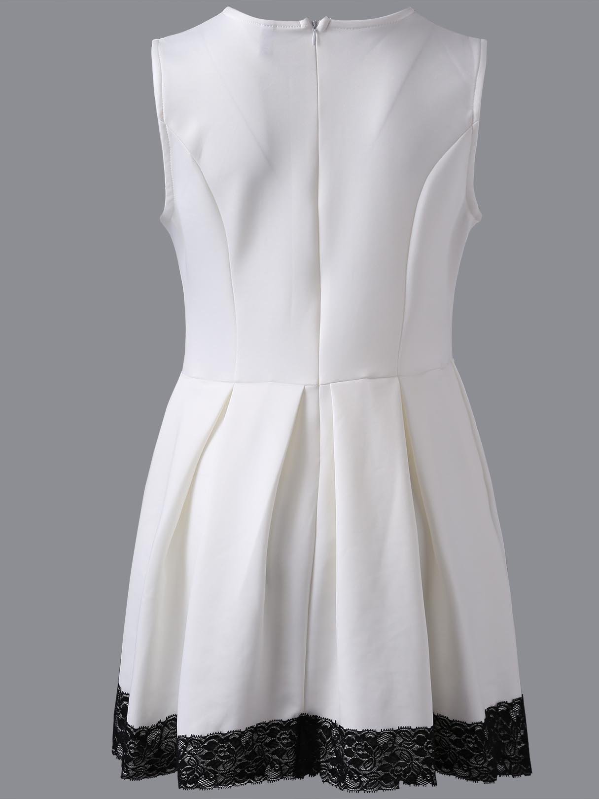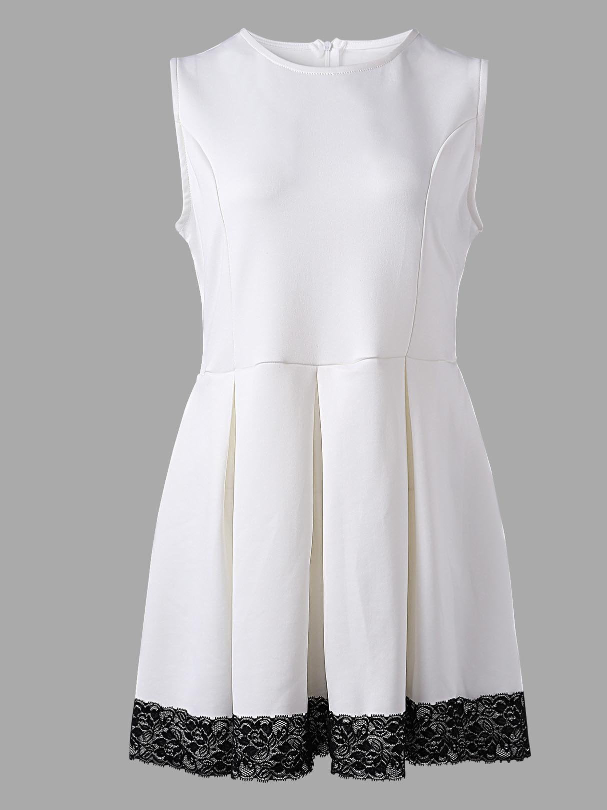 White Round Neck Sleeveless Lace Pleated Sexy Dress