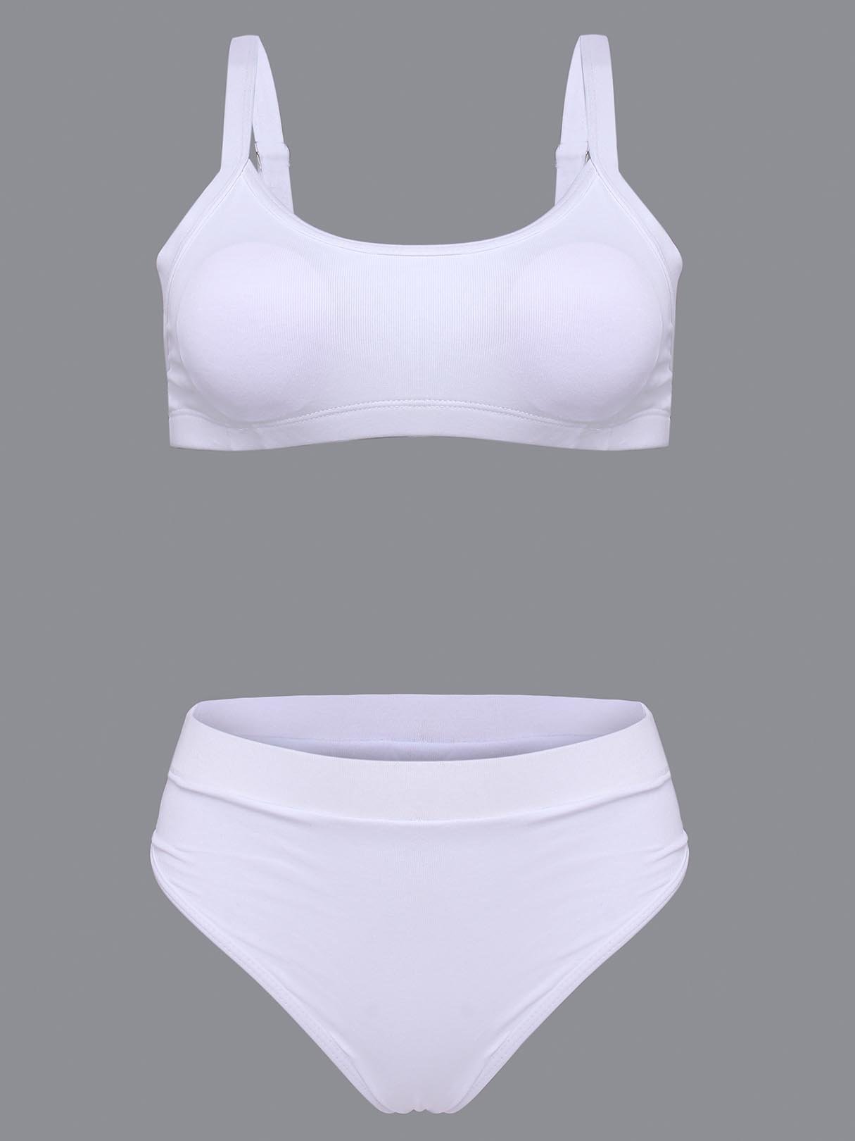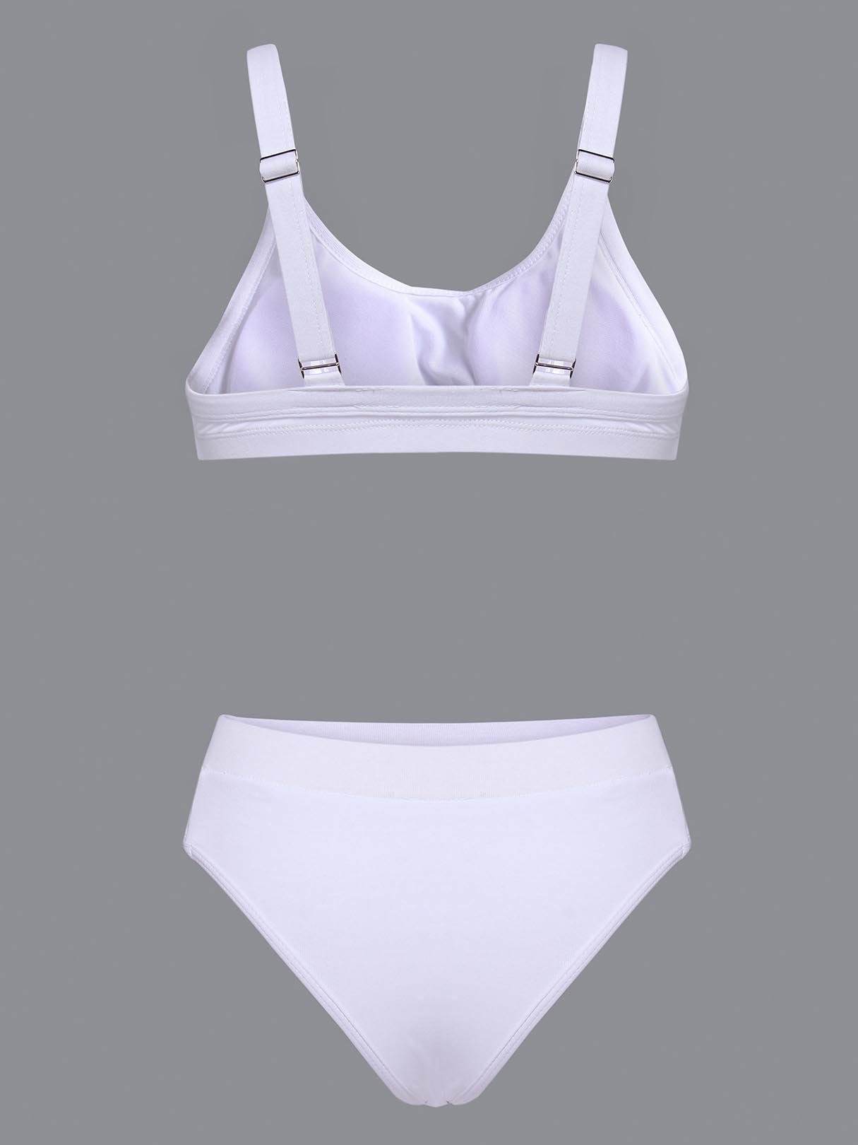 White Scoop Neck Sleeveless Backless High-Waisted Two Piece Bikinis