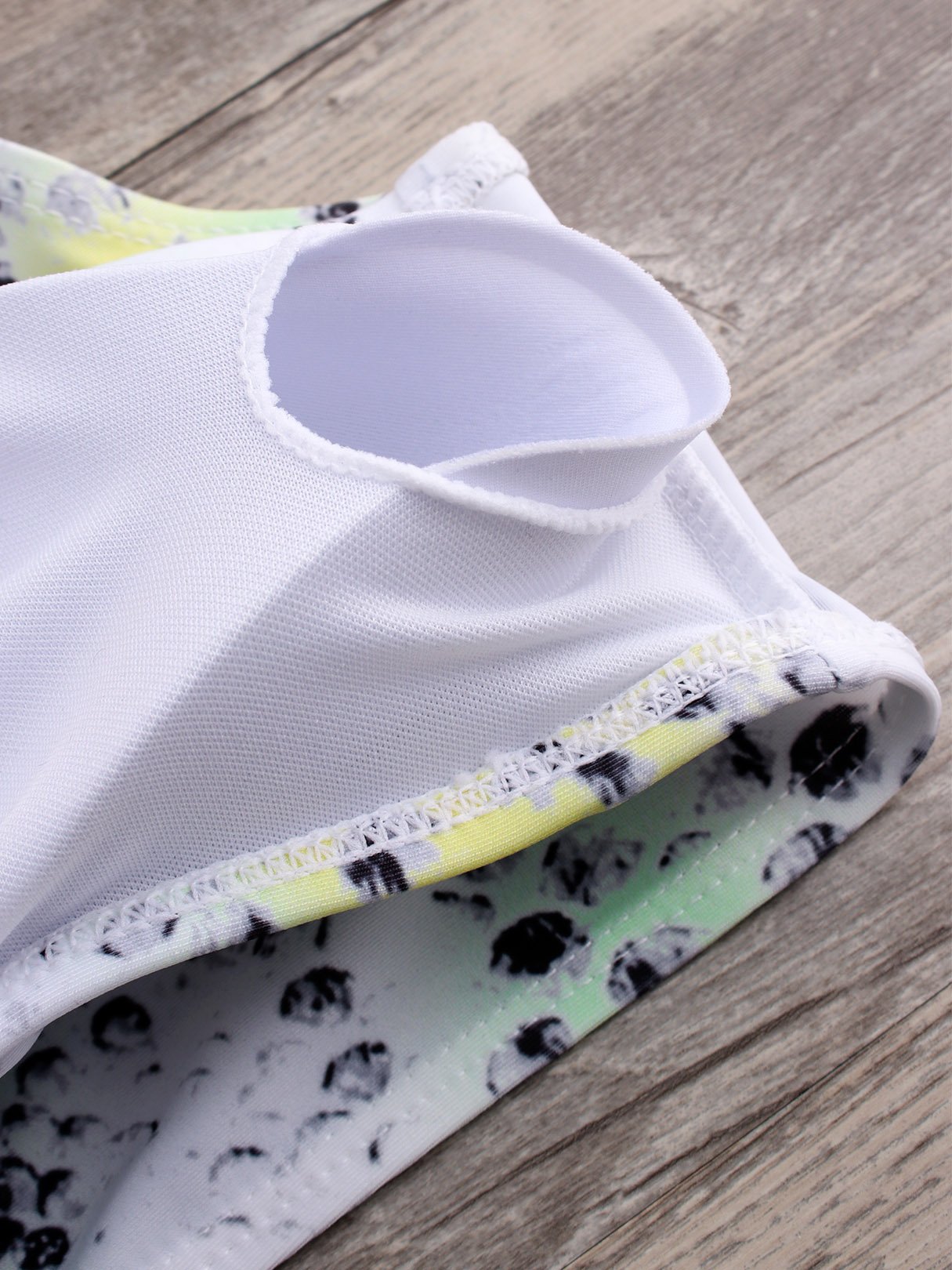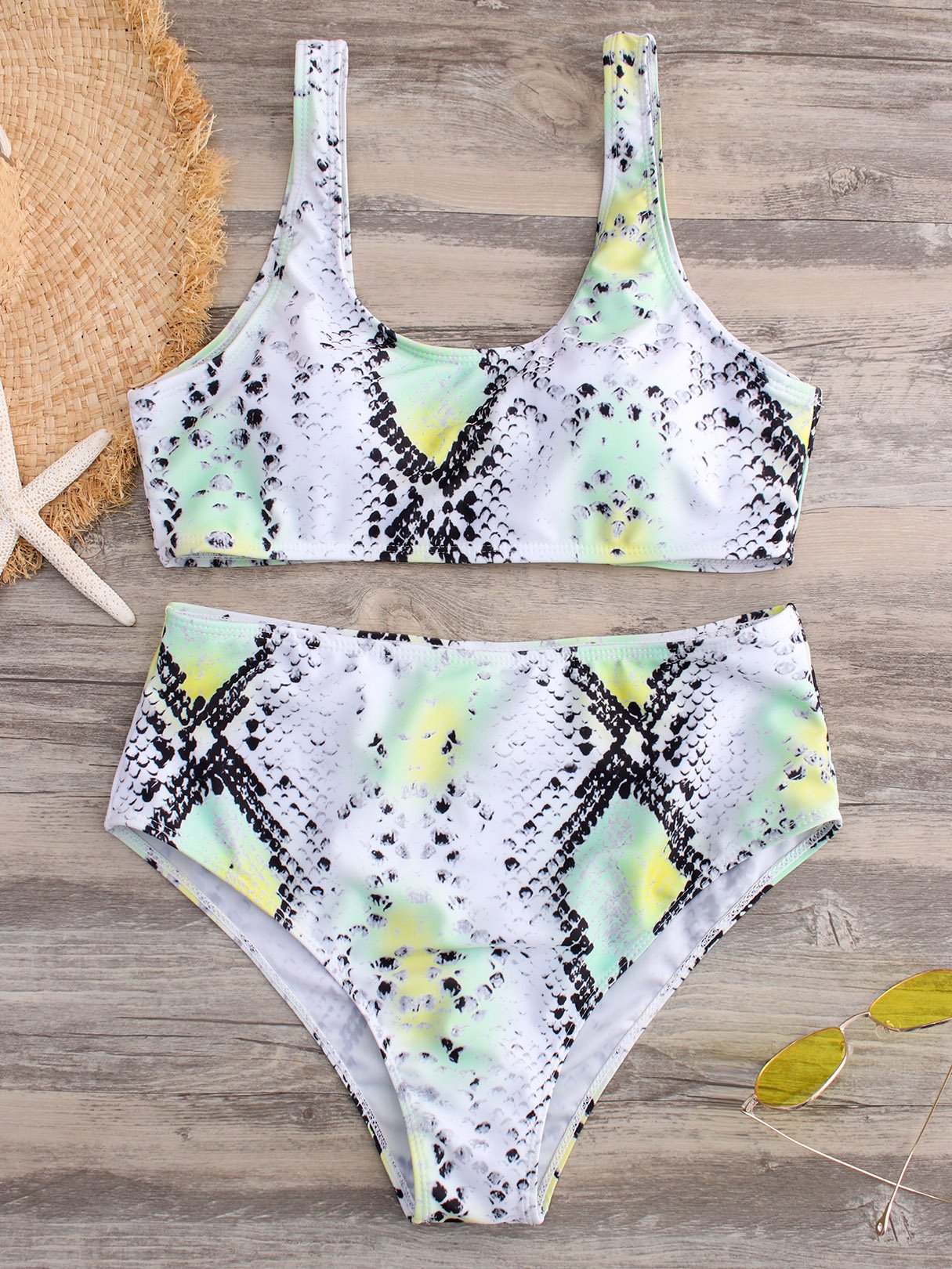 White Scoop Neck Sleeveless Snake High-Waisted Two Piece Bikinis