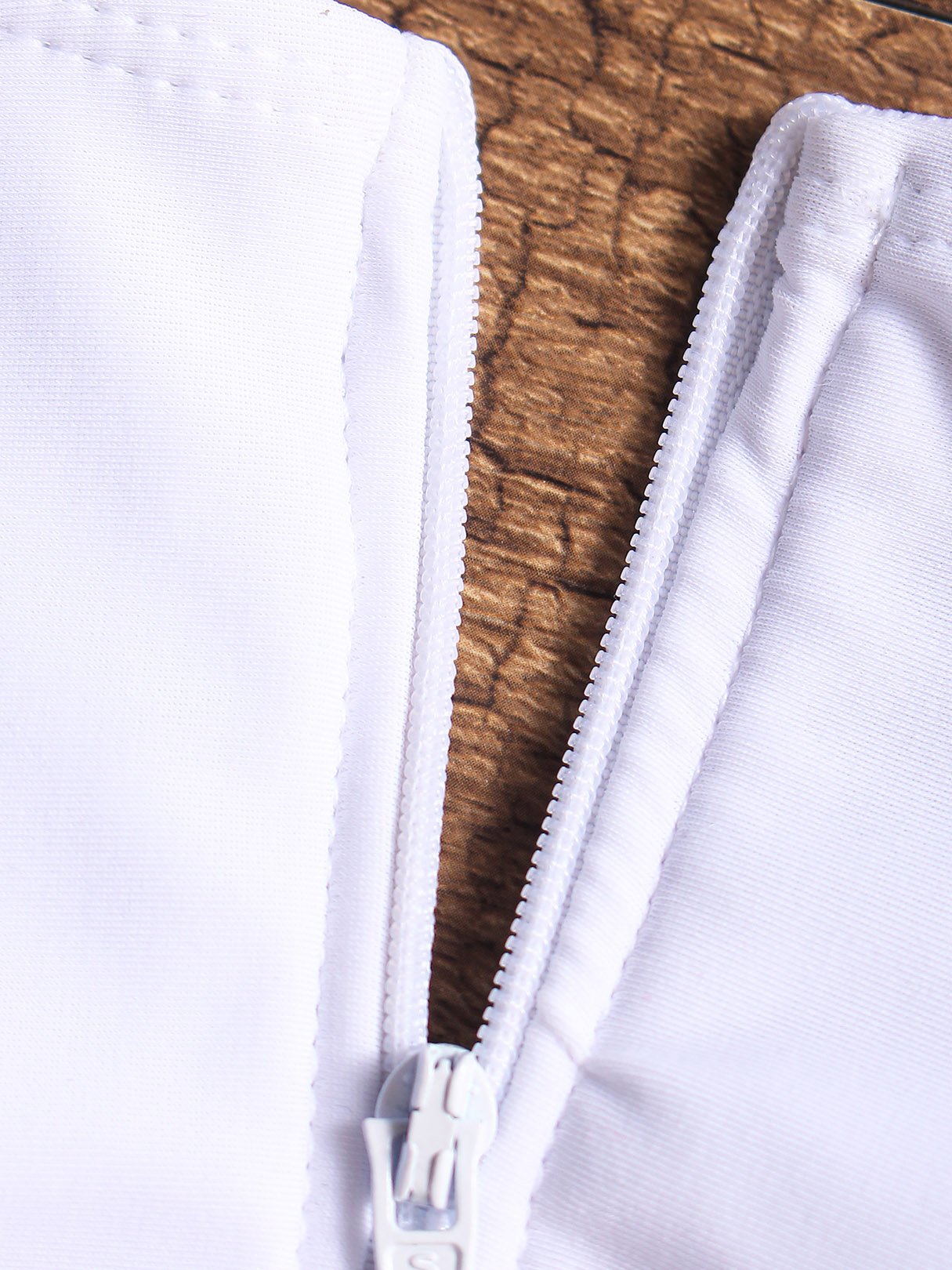 White Scoop Neck Sleeveless Zip Back Two Piece Bikinis